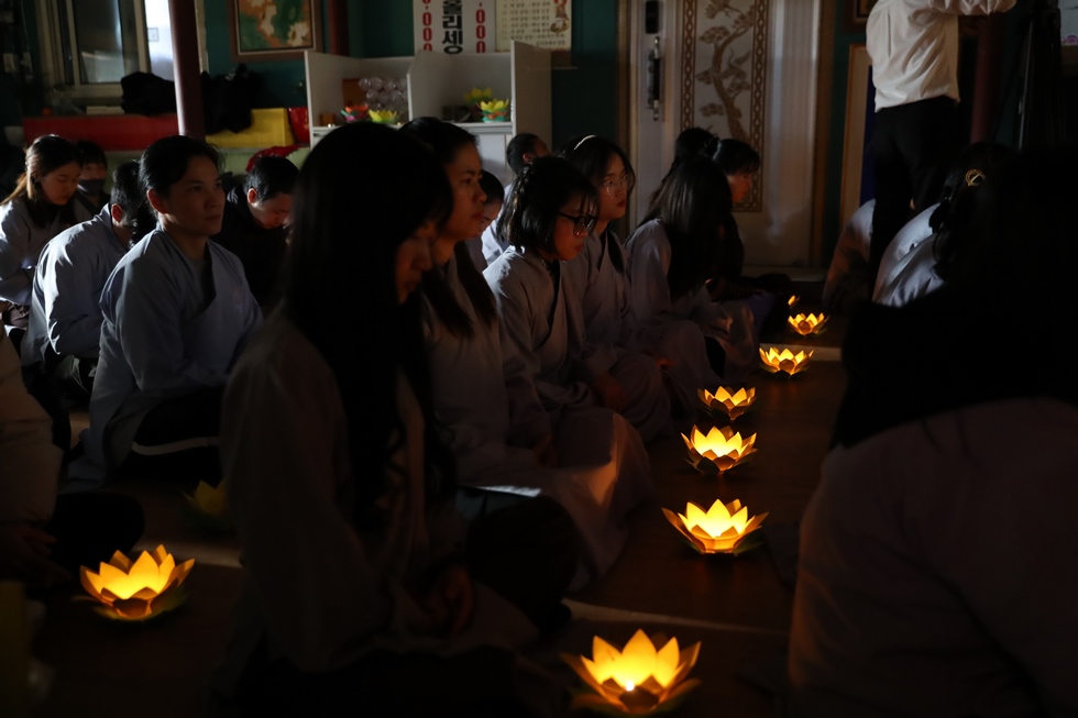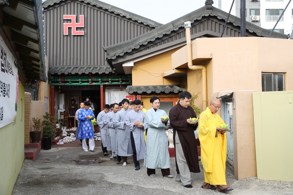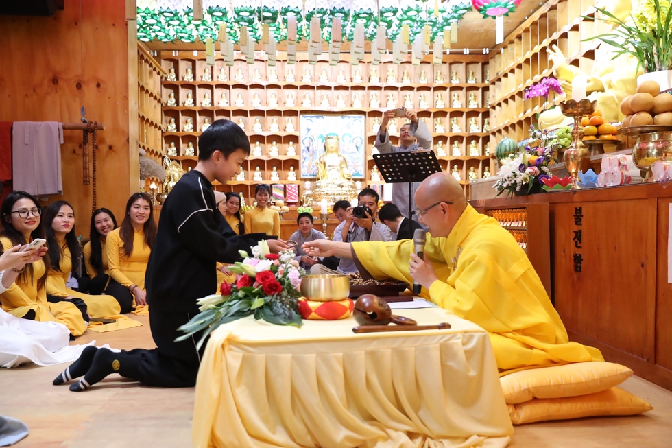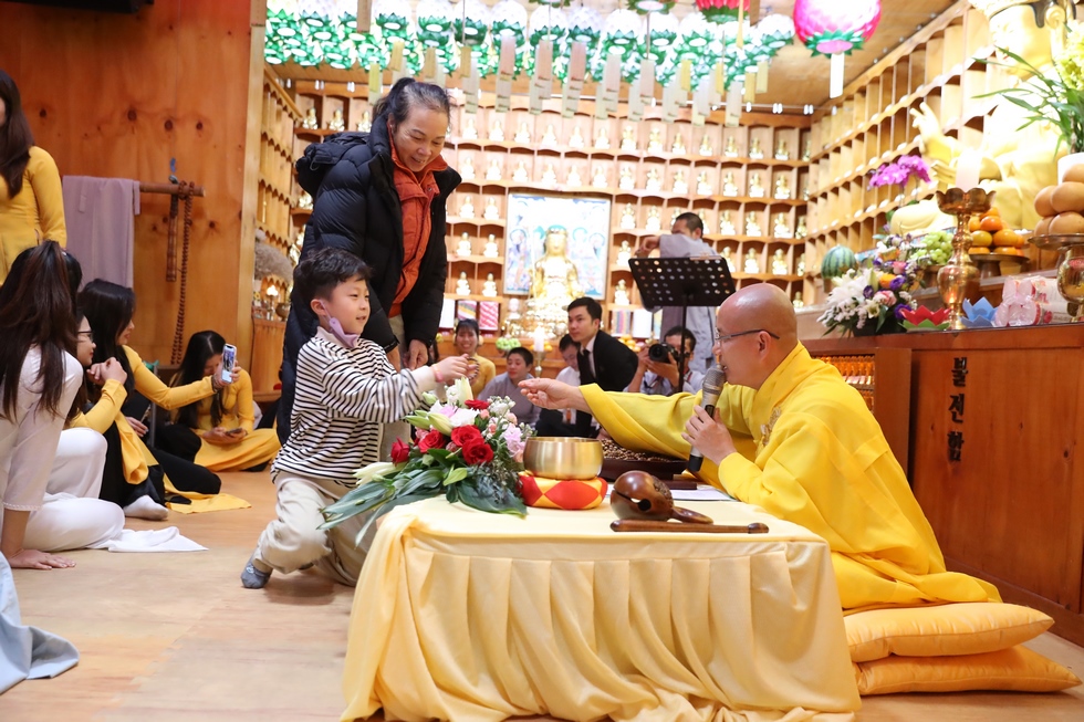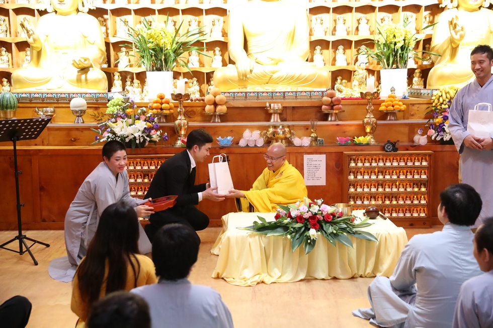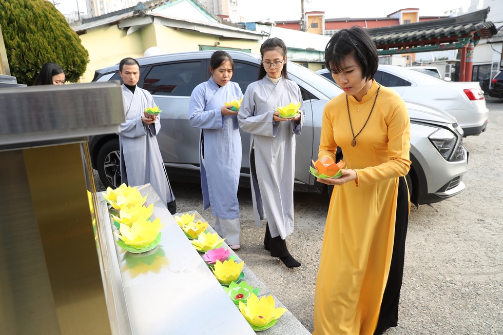 Tham dự có ĐĐ. Thích Thiện Hưng – Tổng điều phối đạo tràng – Trưởng Ban tổ chức – Trụ trì chùa Tam bảo – Việt Nam và đông đảo bà con Phật tử người Việt tại Hàn Quốc vân tập về chùa, làm lễ tưởng niệm tri ân, dâng đèn hoa đăng, tụng kinh, niện Phật, mừng ngày khánh đản Đức Phật A Di Đà. Sau lời tuyên bố lý do, giới thiệu thành phần tham dự. ĐĐ. Thích Thiện Hưng đã sơ lược về công hạnh và nguồn gốc ngày khánh vía của Đức Phật A Di Đà.