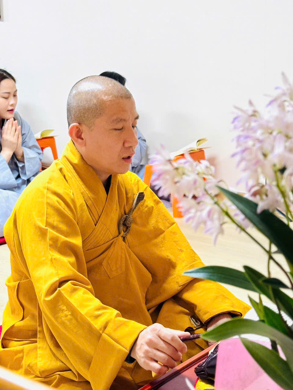 Tiếp đó, vào lúc 14 giờ 30 phút, toàn thể đạo tràng đồng thanh trì danh niệm Phật, chí tâm cầu nguyện quốc thái dân an. Tiếng niệm Phật vang vọng trong không gian tĩnh lặng như lời nguyện cầu thiết tha về một thế giới hòa bình, chúng sanh an lạc.