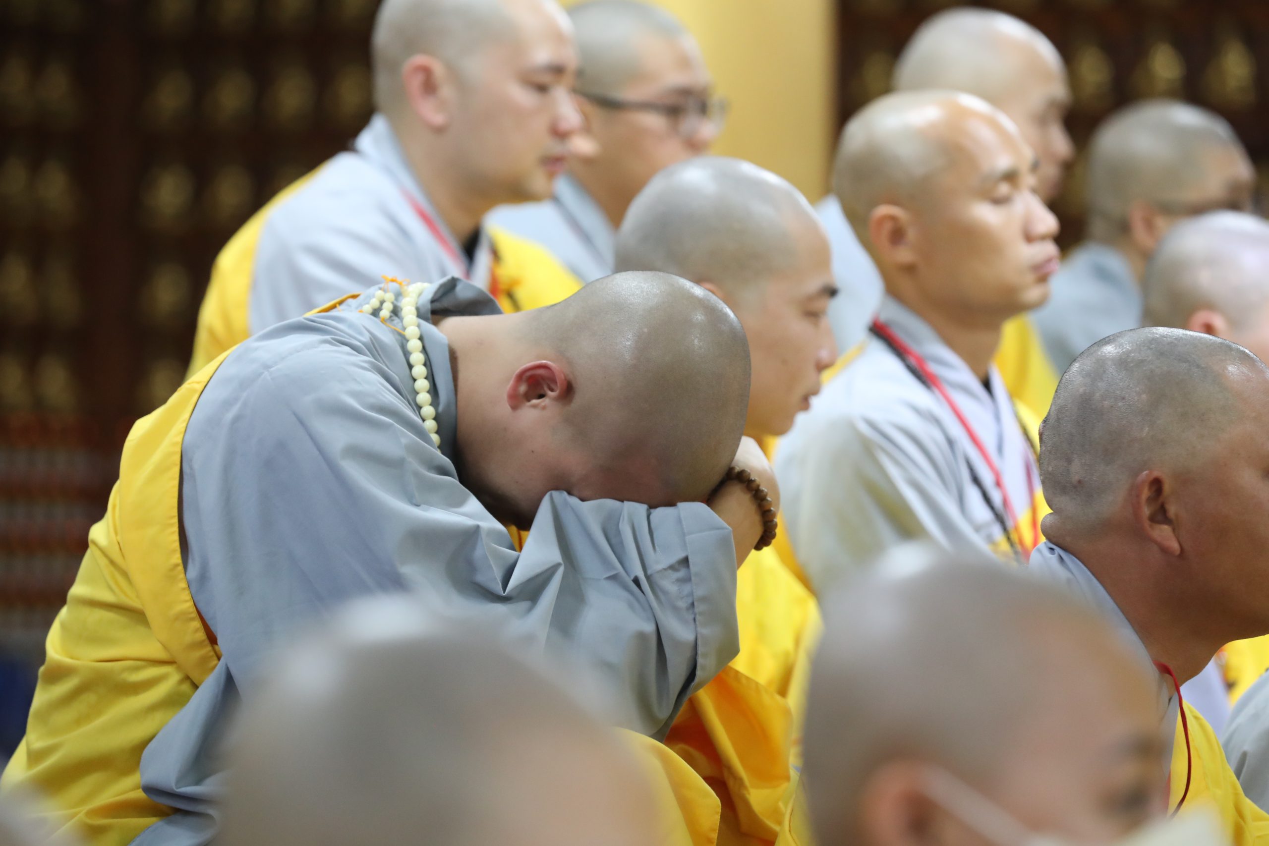 Các hành giả được xuất gia gieo duyên cũng xúc động không kìm được nước mắt khi nghĩ về công lao trời biển của mẹ cha.