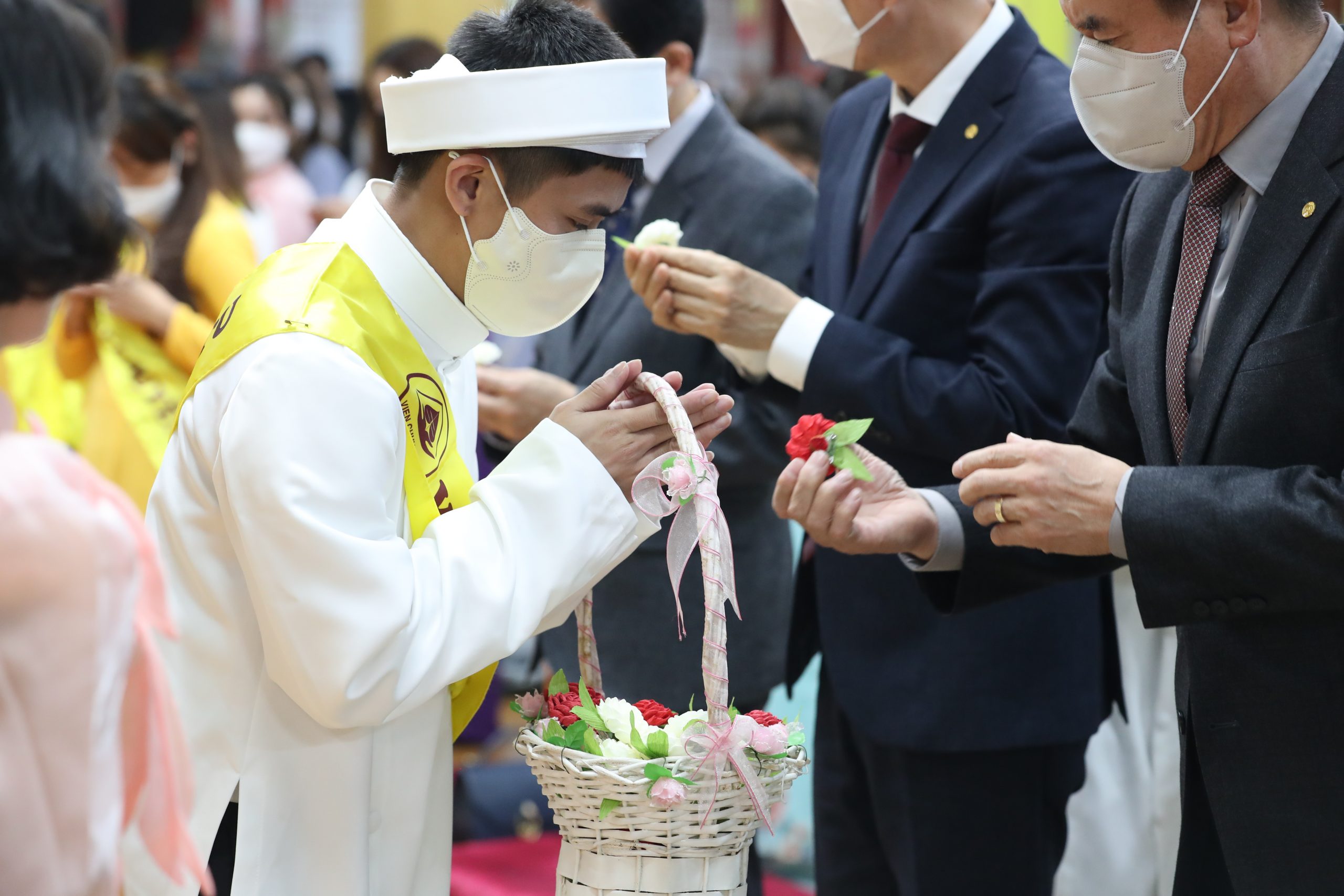 Tiếp tục buổi lễ, nghi thức “Bông hồng cài áo” đã diễn ra trong niềm xúc động của tất cả mọi người.