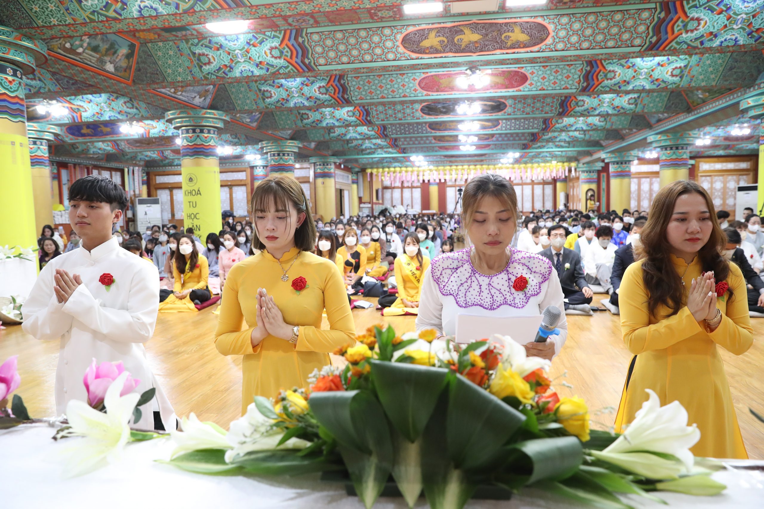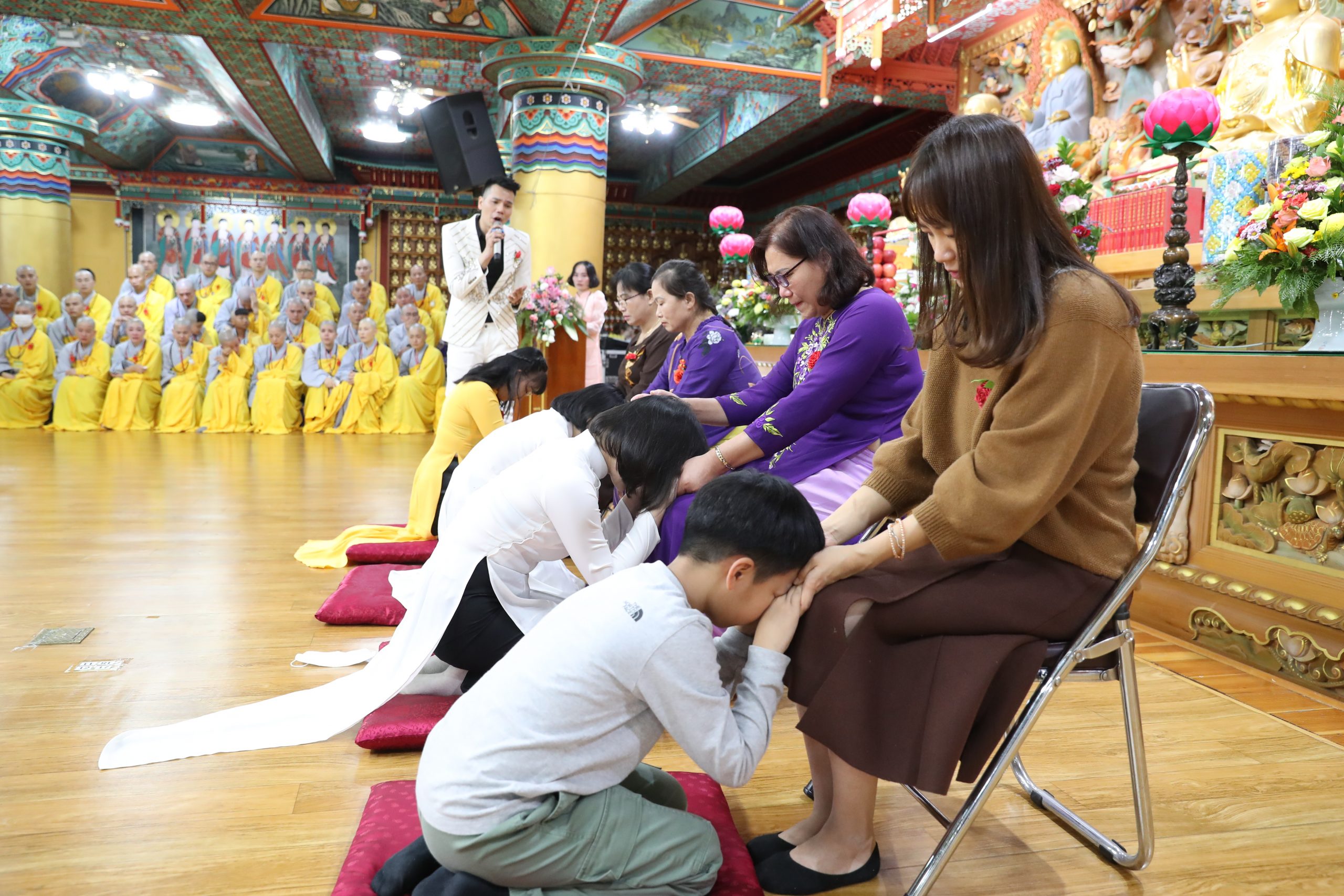 Sau lời phát biểu khai mạc, các Phật tử đối trước Tam Bảo chứng minh, thành tâm dâng lời phát nguyện thực hành lời Phật dạy hiếu kính với mẹ cha, cung kính và nhớ ơn Tam Bảo.