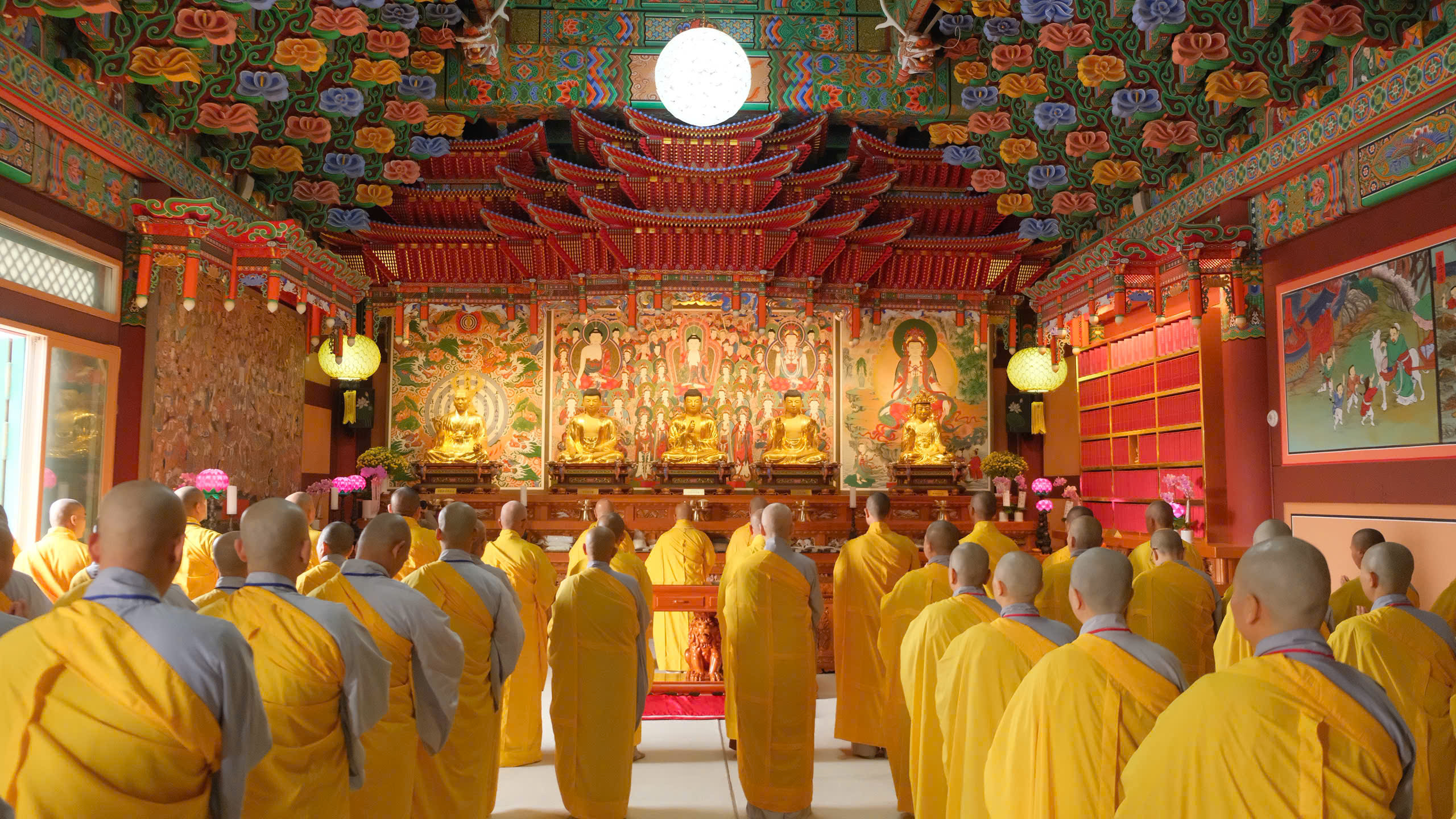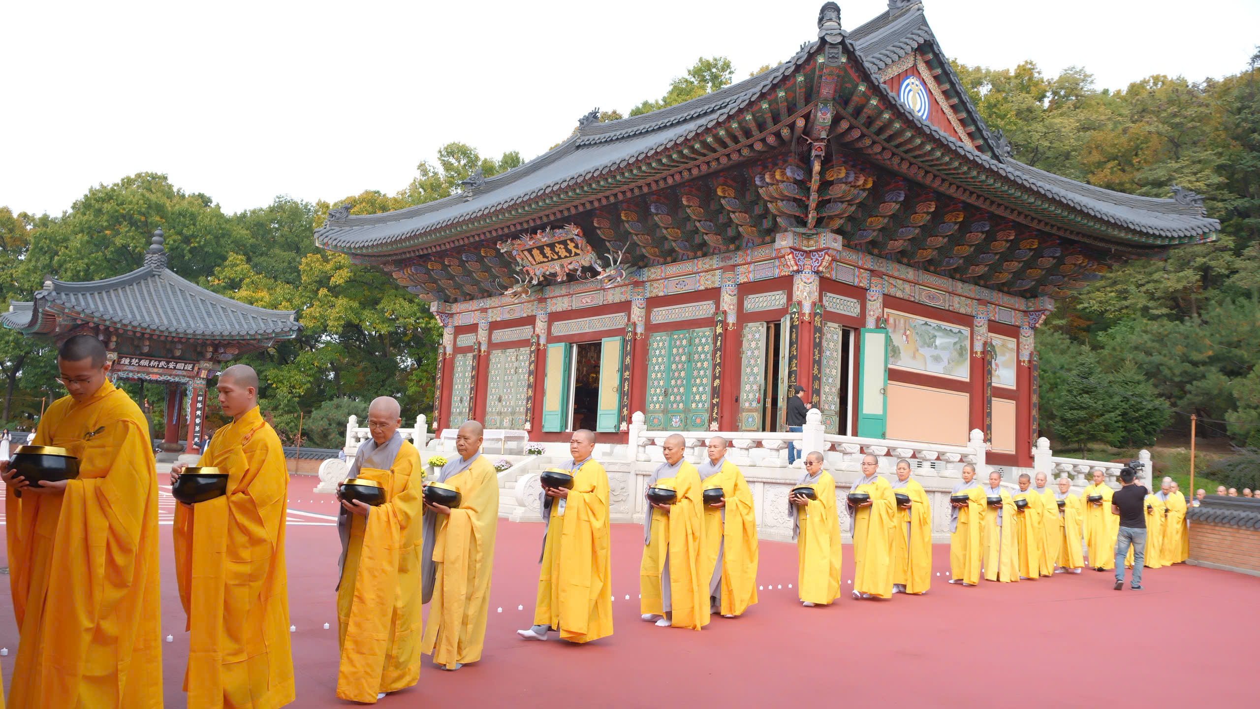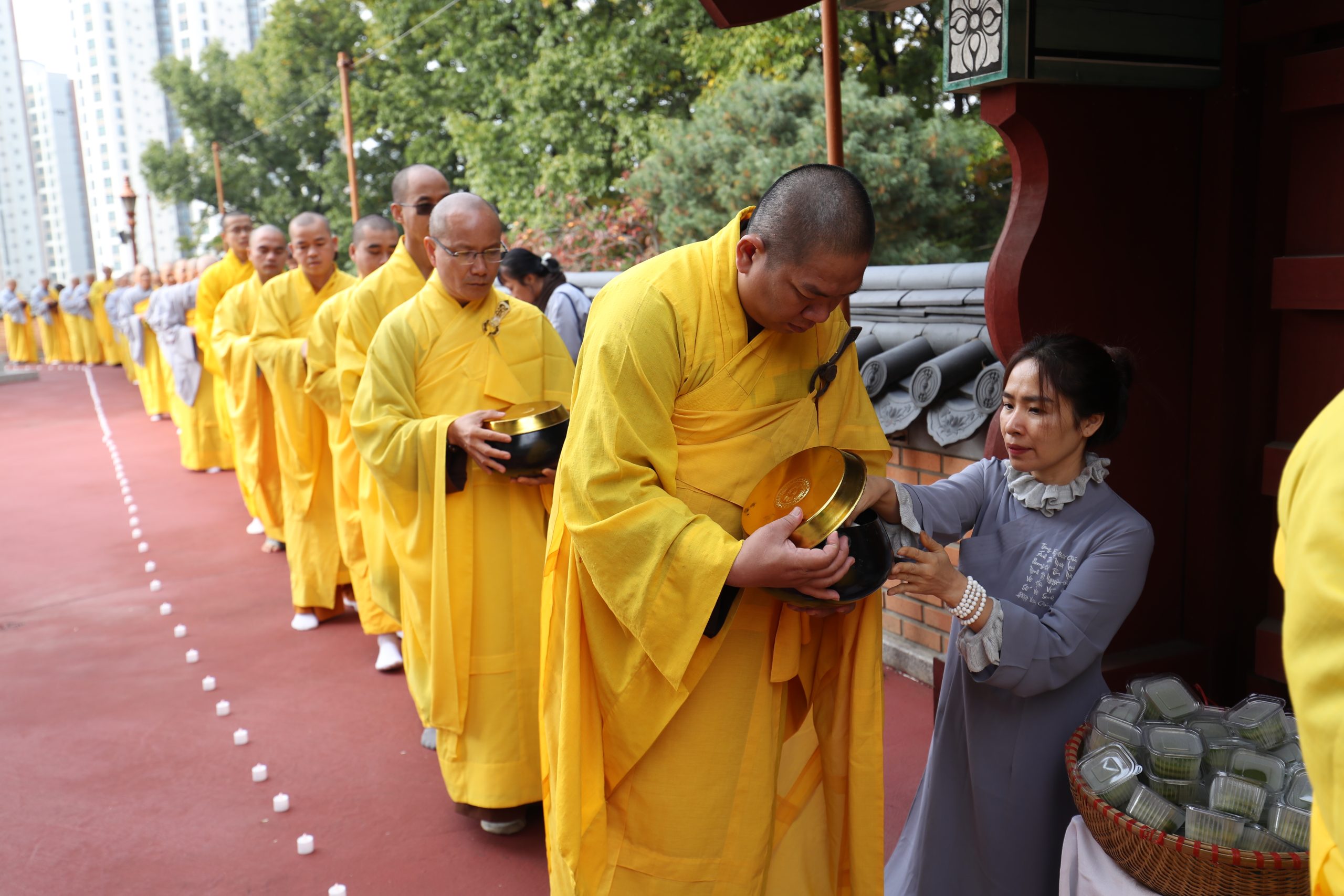 Ngày 08/11/2025, mùa thu xứ Hàn trong tiết trời se lạnh, nắng nhẹ rải vàng khắp khuôn viên chùa Minh Trang. Tiếng chuông sớm vang lên hòa cùng tiếng chim hót ríu rít như báo hiệu một ngày đặc biệt. Hôm nay, chư Tăng Ni và giới tử xuất gia gieo duyên trang nghiêm tái hiện lại hạnh khất thực, một nét đẹp truyền thống có từ thời Đức Phật, dù hơn 2.500 năm vẫn được gìn giữ như ngọn lửa thiêng bất diệt của Phật giáo.
