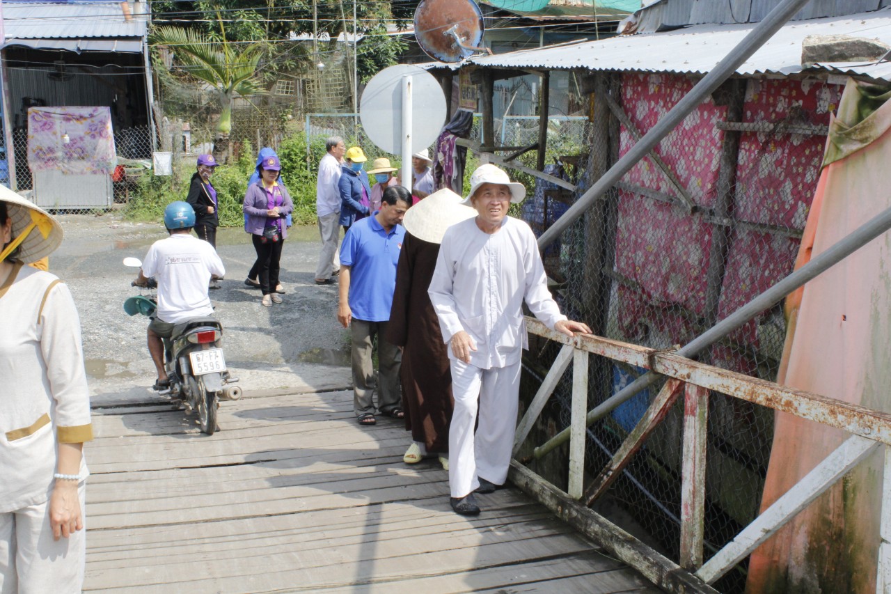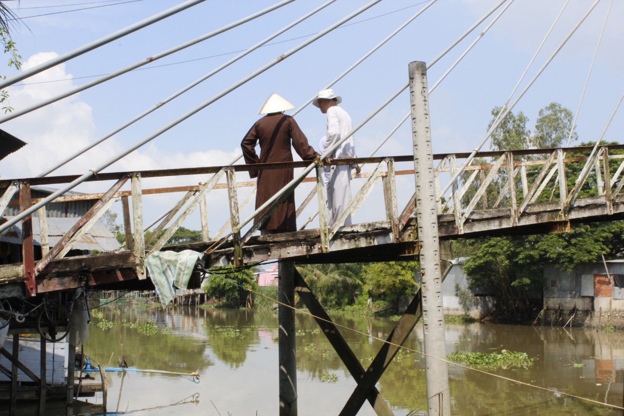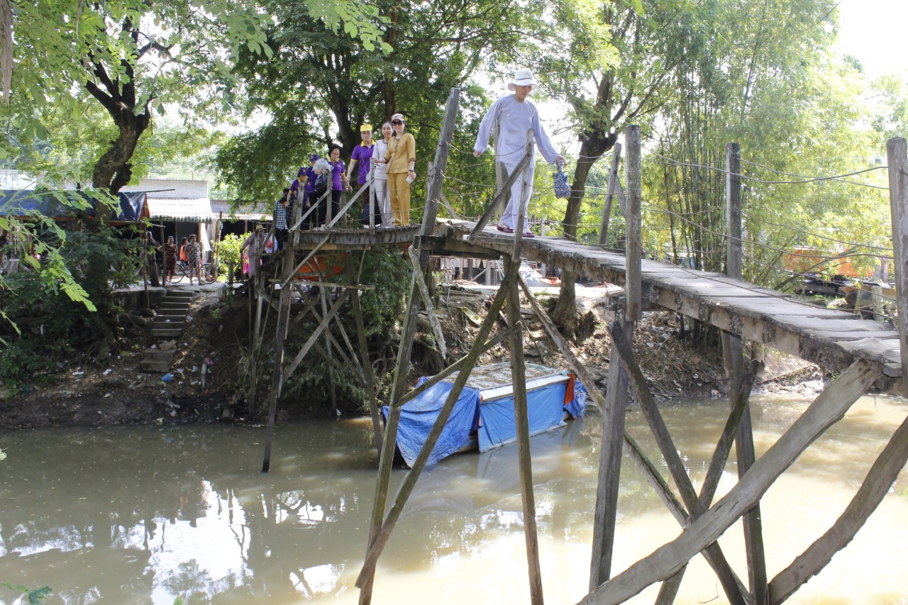 Trưa cùng ngày BTN Ánh Đạo đi khảo sát các cây cầu đã xuống cấp hoặc bị hư hỏng nặng không thể phục vụ được, nhằm trợ duyên xây dựng cầu nông thôn, giúp cho người dân nơi vùng quê thuận tiện trong việc di chuyển giao thông.