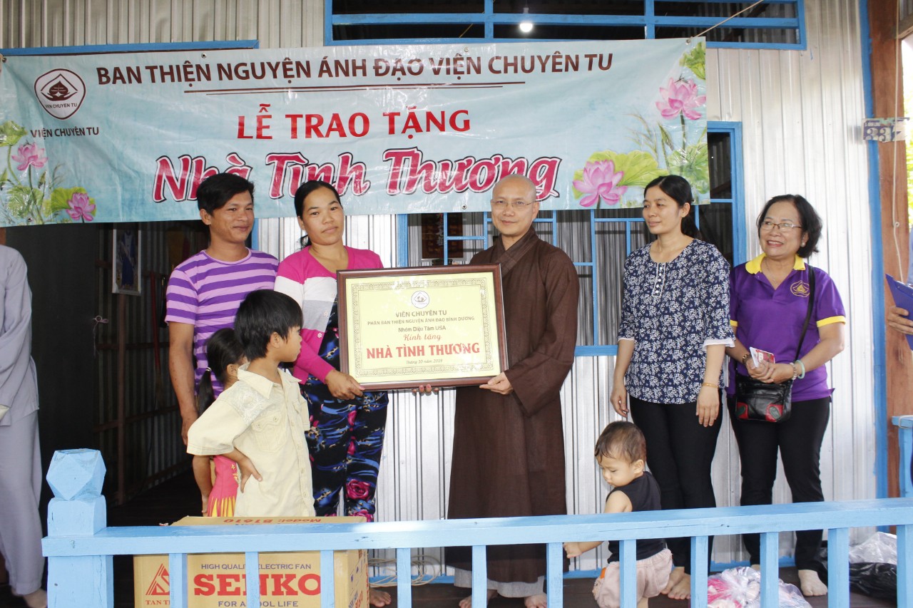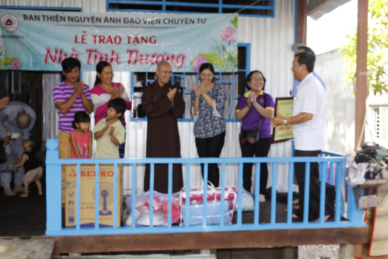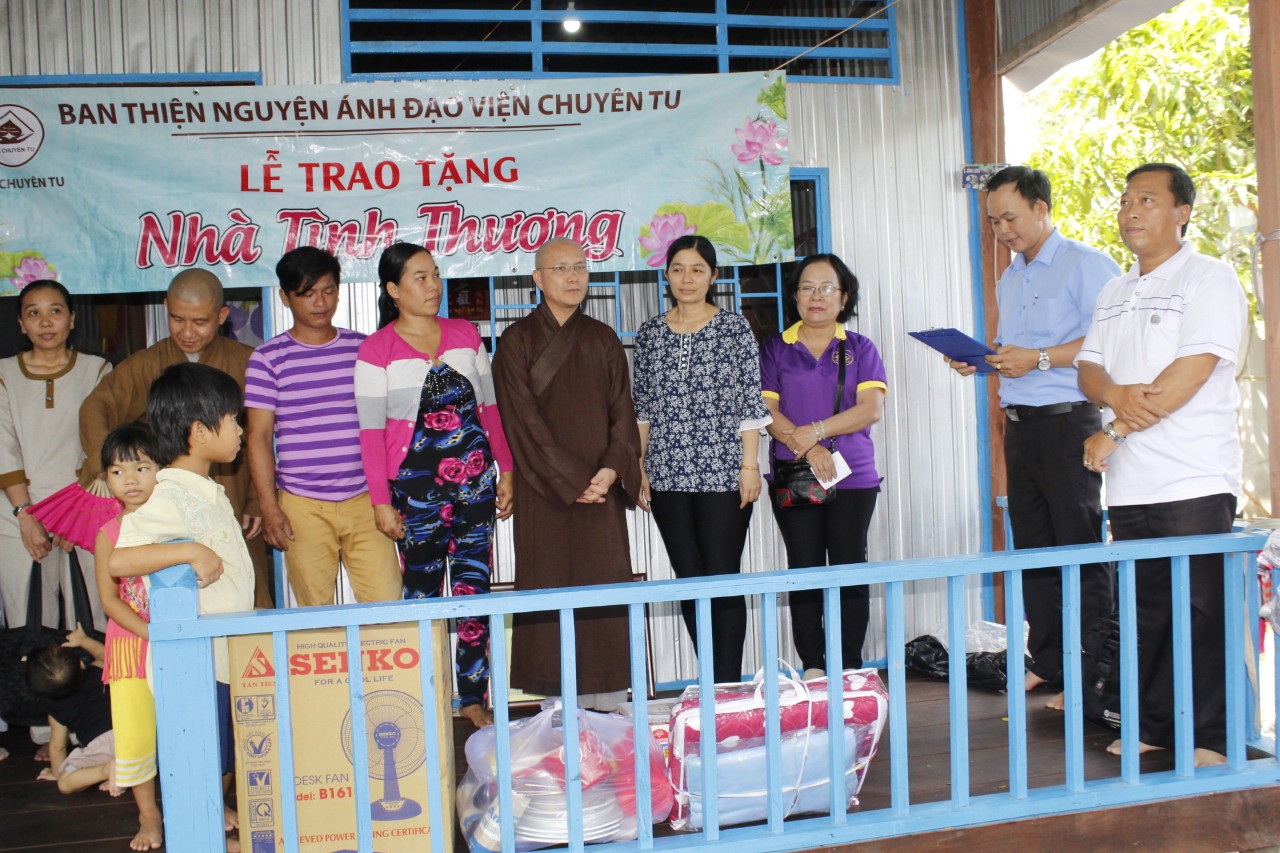 Sáng ngày 26/10/2019, BTN Ánh Đạo về tận An Giang, tại ấp Bình Chánh, huyện Châu Phú, chư tôn đức kết hợp cùng chính quyền địa phương, tổ chức buổi lễ trao tặng mái ấm cho cụ bà Nguyễn Thị Kén, sinh năm 1949, thân cò đơn côi, không người thân, đoàn tặng nhà, vật dụng, nồi cơm điện, quạt máy, tịnh tài …..