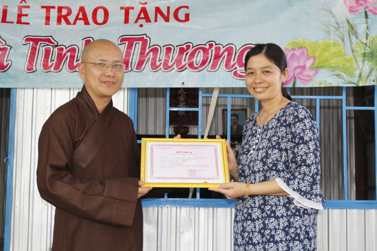Sau đó quay lại ấp Bình Thuận, xã Bình long, tại đây đoàn làm lễ tặng căn nhà cho gia đình em Đào Văn Nhường, sinh năm 1991, có hoàn cảnh khó khăn, một vợ 3 con nhỏ không có khả năng nuôi dưỡng các con.
