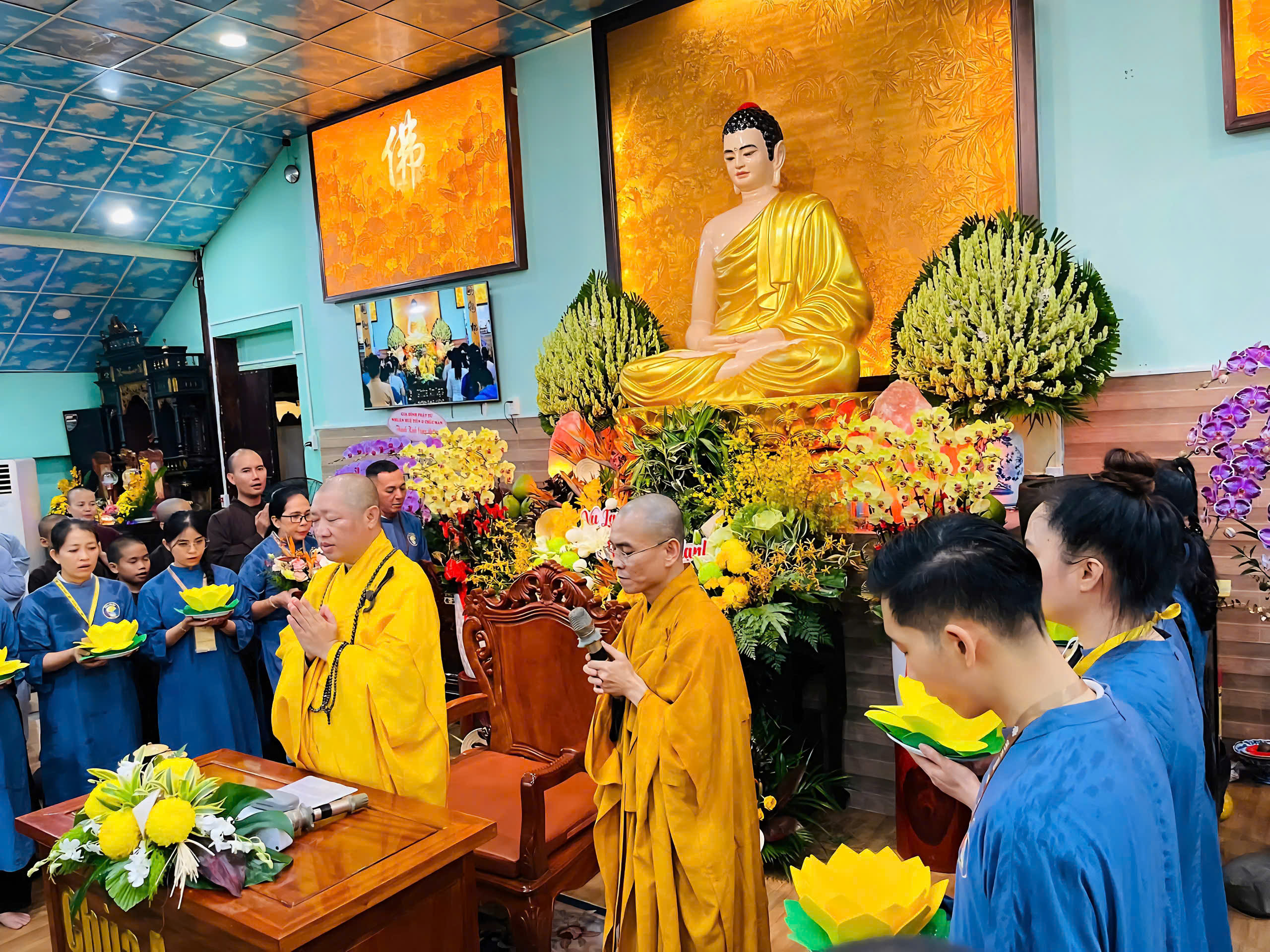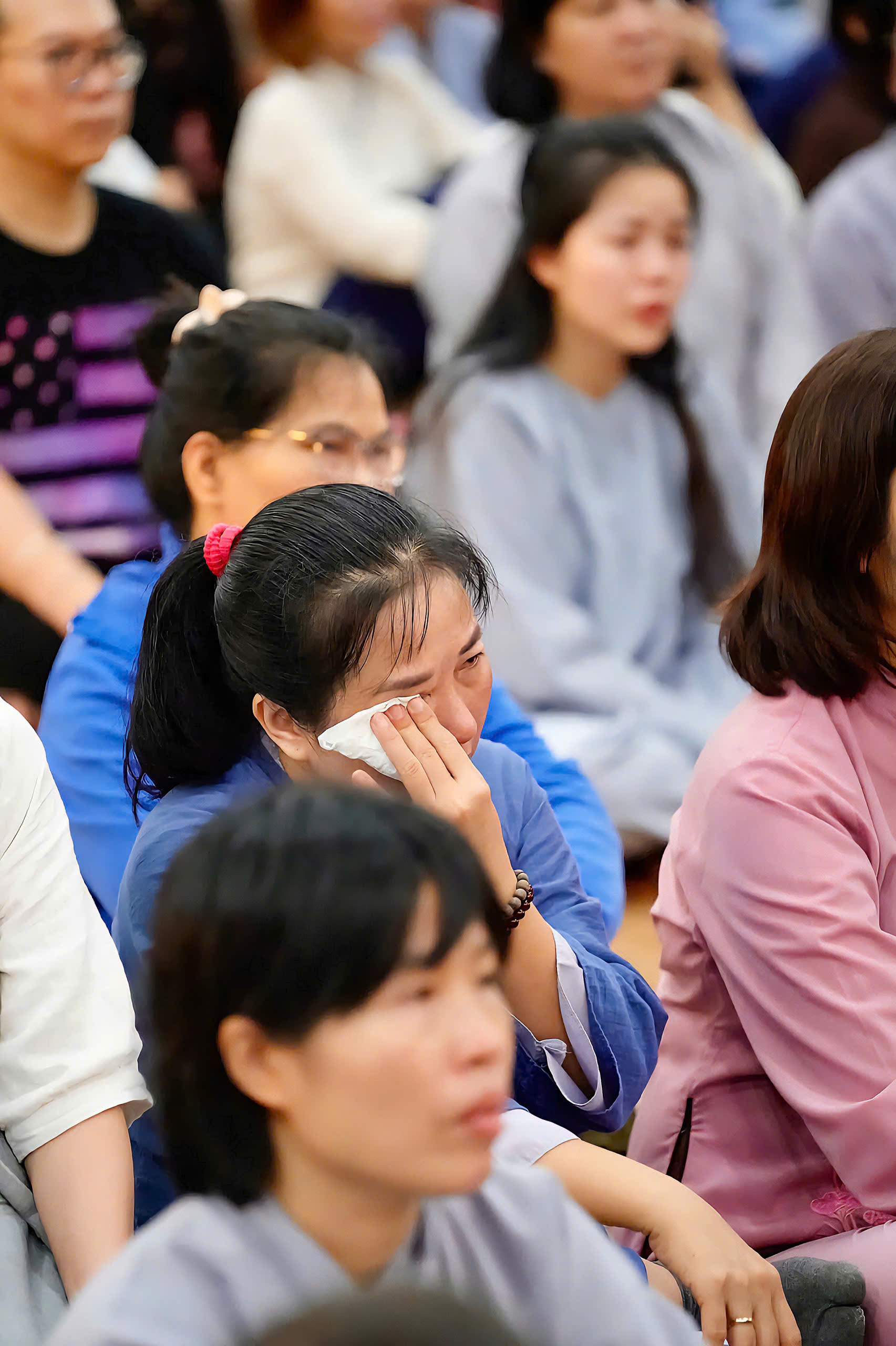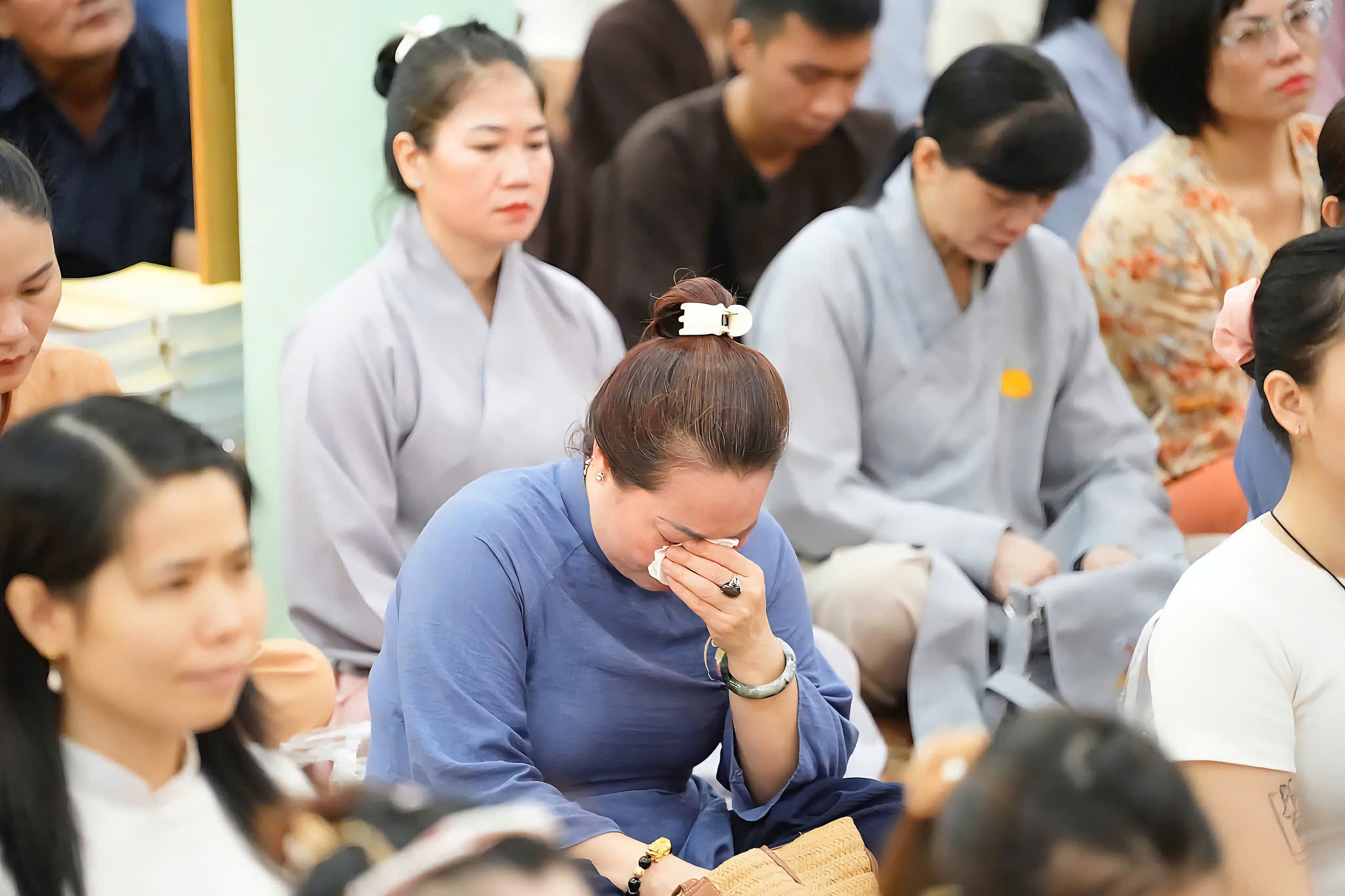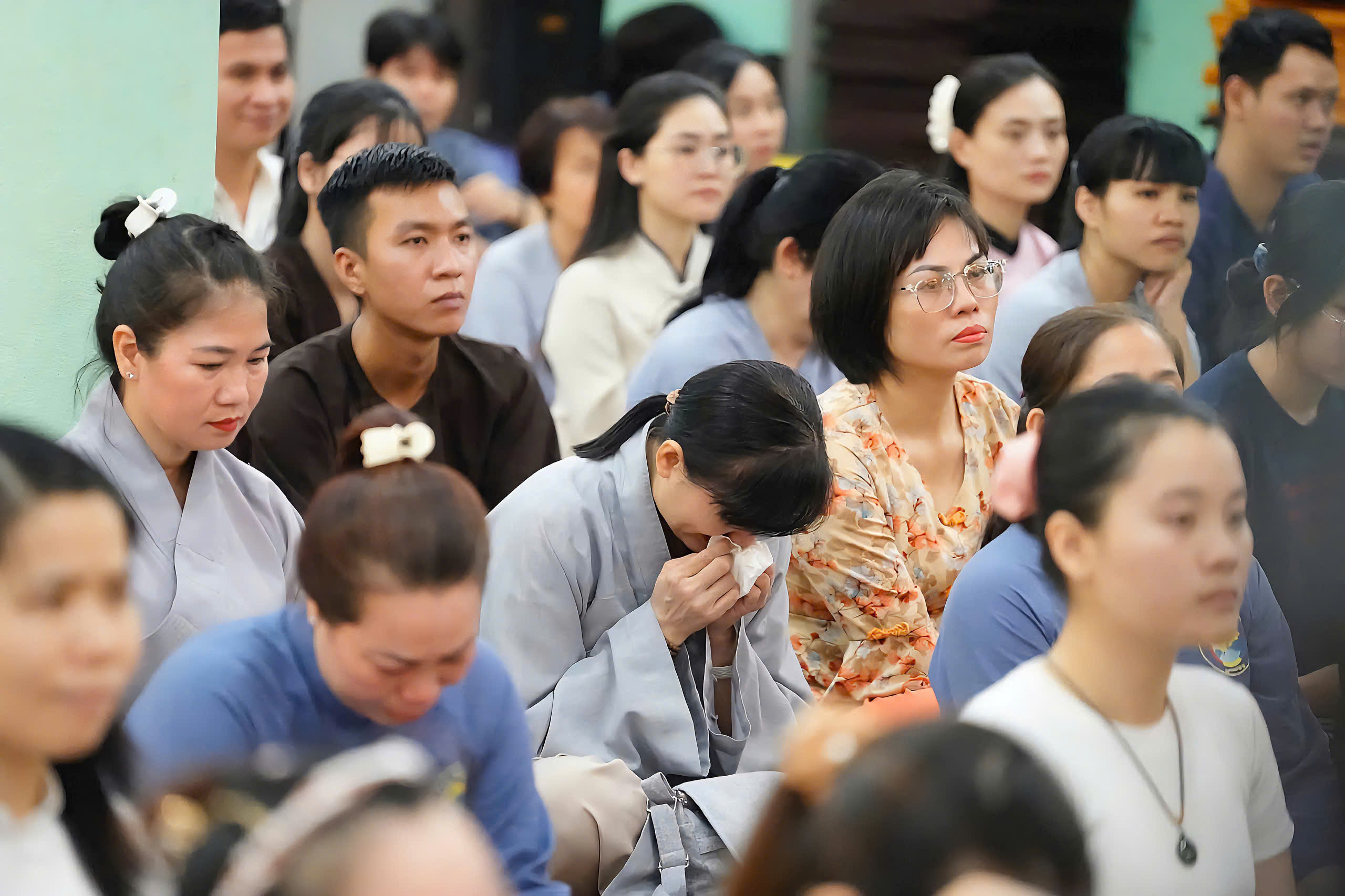 Dù những cơn mưa dầm dai dẳng không ngớt, hàng ngàn Phật tử vẫn đội mưa về chùa, lặng lẽ ngồi kín cả Chánh điện và hội trường phụ. Không ai bảo ai, nhưng ai cũng hiểu: đây không chỉ là một buổi giảng pháp, mà là một cuộc trở về: trở về với trái tim của mẹ cha, với đạo lý làm người, với cội nguồn yêu thương.