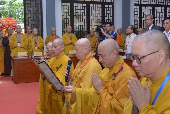 Hòa thượng Thích Lệ Trang, Trưởng ban Nghi lễ T.Ư cùng chư Hòa thượng, Thượng tọa đã cử hành nghi thức, cung tuyên chúc văn suy tôn; Trưởng lão Hòa thượng Thích Thiện Nhơn thay mặt chư Trưởng lão vừa được suy tôn tham gia Hội đồng Chứng minh, ba lần niệm danh hiệu Đức Phật A Di Đà và hồi đáp hoan hỷ tiếp nhận.