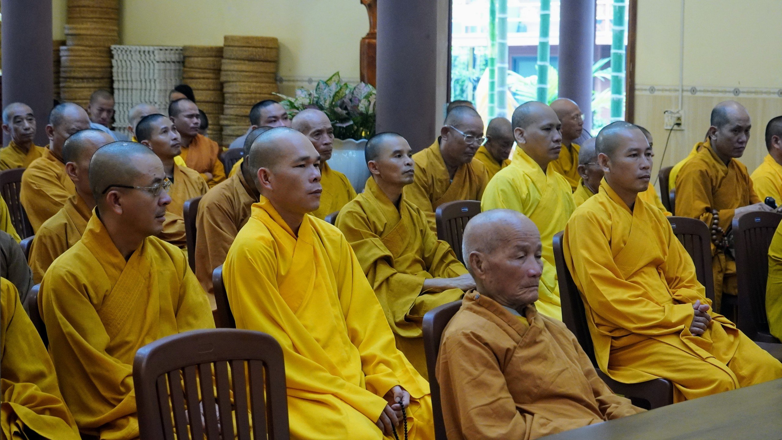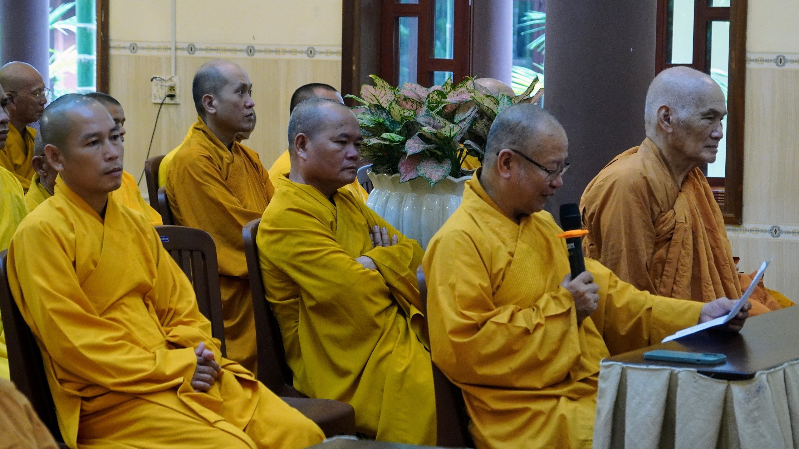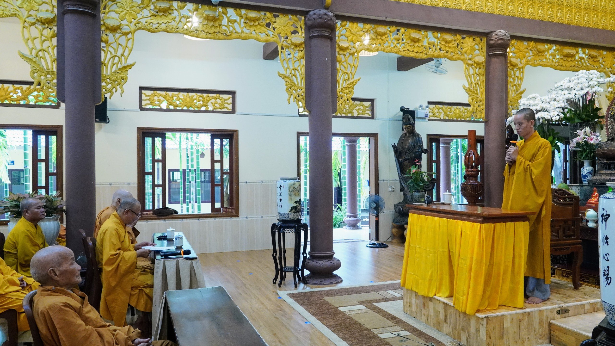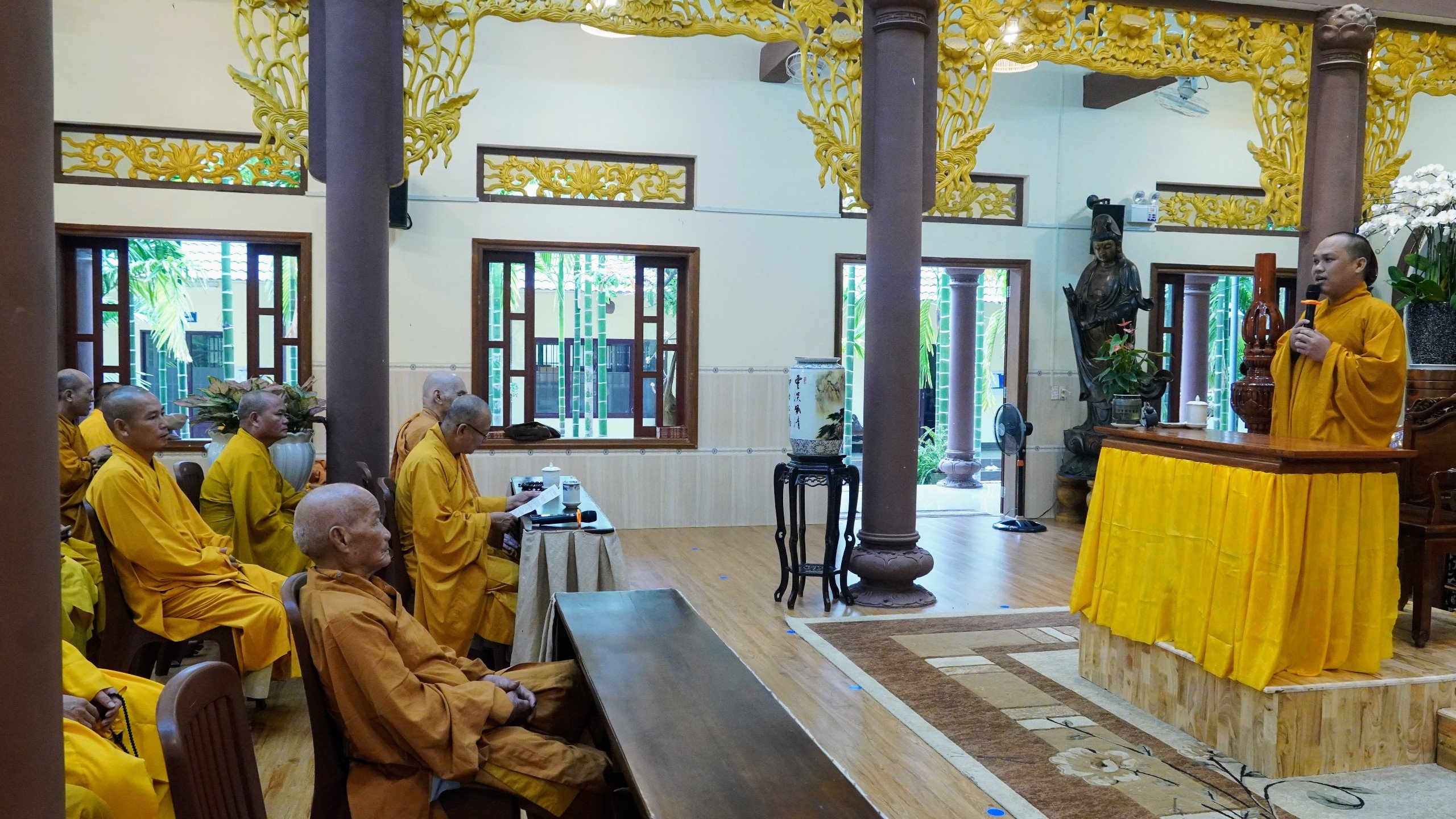 Mở đầu tiết học diễn giảng sáng hôm nay, Hòa thượng Chứng minh Hạ trường đã chia sẻ đôi điều động viên giúp hành giả vững lòng và tự tin hơn khi bước lên bục giảng để thực tập diễn thuyết. Ngồi dưới hàng ghế chứng minh, Thượng tọa giáo thọ cũng đã lắng nghe và có những lời khích lệ, góp ý xây dựng giúp chư hành giả an cư từng bước hoàn thiện về hình thức và nội dung thuyết giảng của mình.