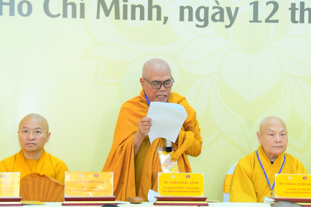 Trong lời phát biểu khai mạc Hội thảo, HT.Thích Giác Toàn đã khái lược tổng quan về nền văn học Phật giáo Việt Nam qua các thời kỳ. Đồng thời nêu lên ý nghĩa và tầm ảnh hưởng của Văn học Phật giáo đối với nền Văn học Dân tộc.