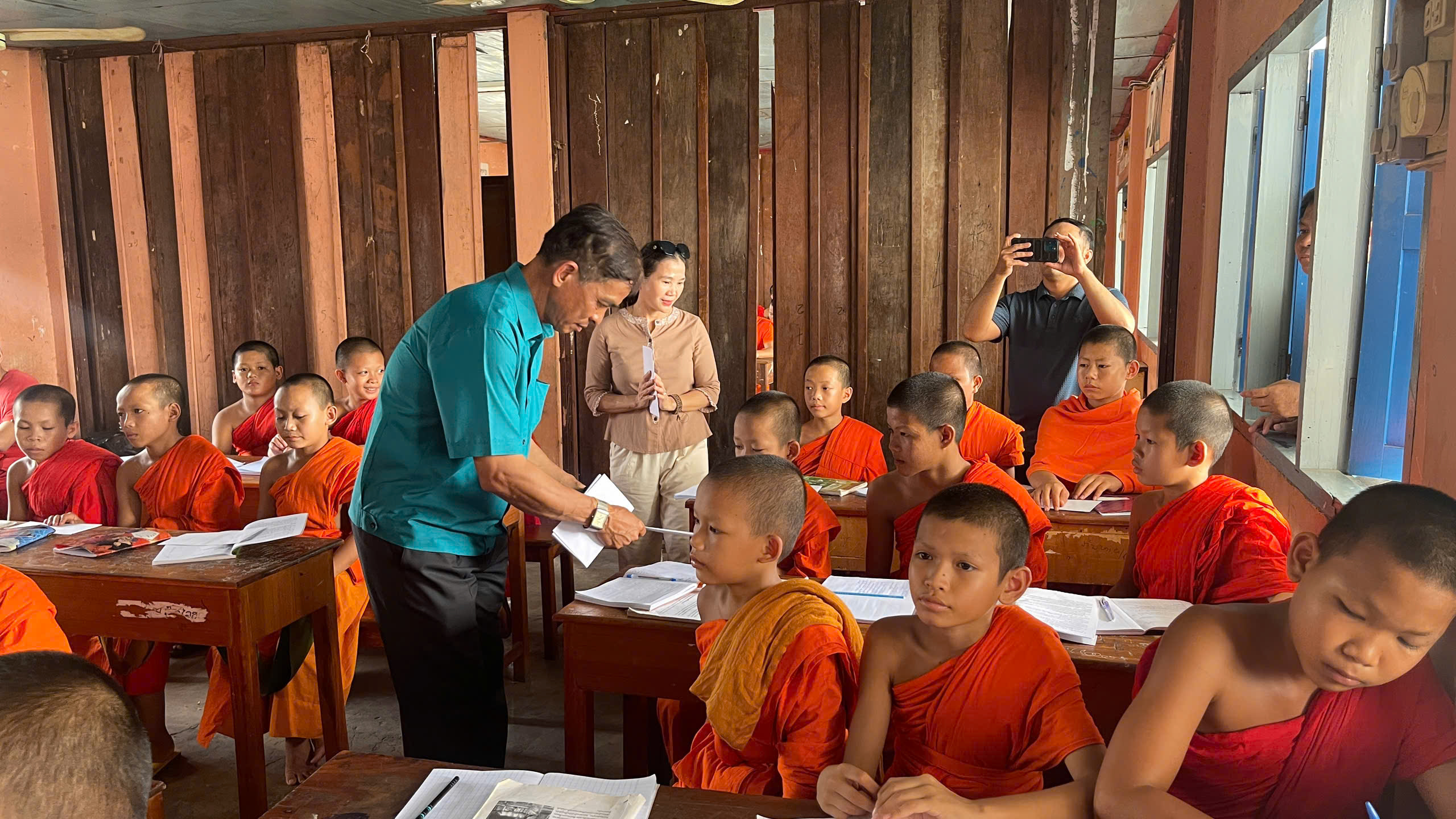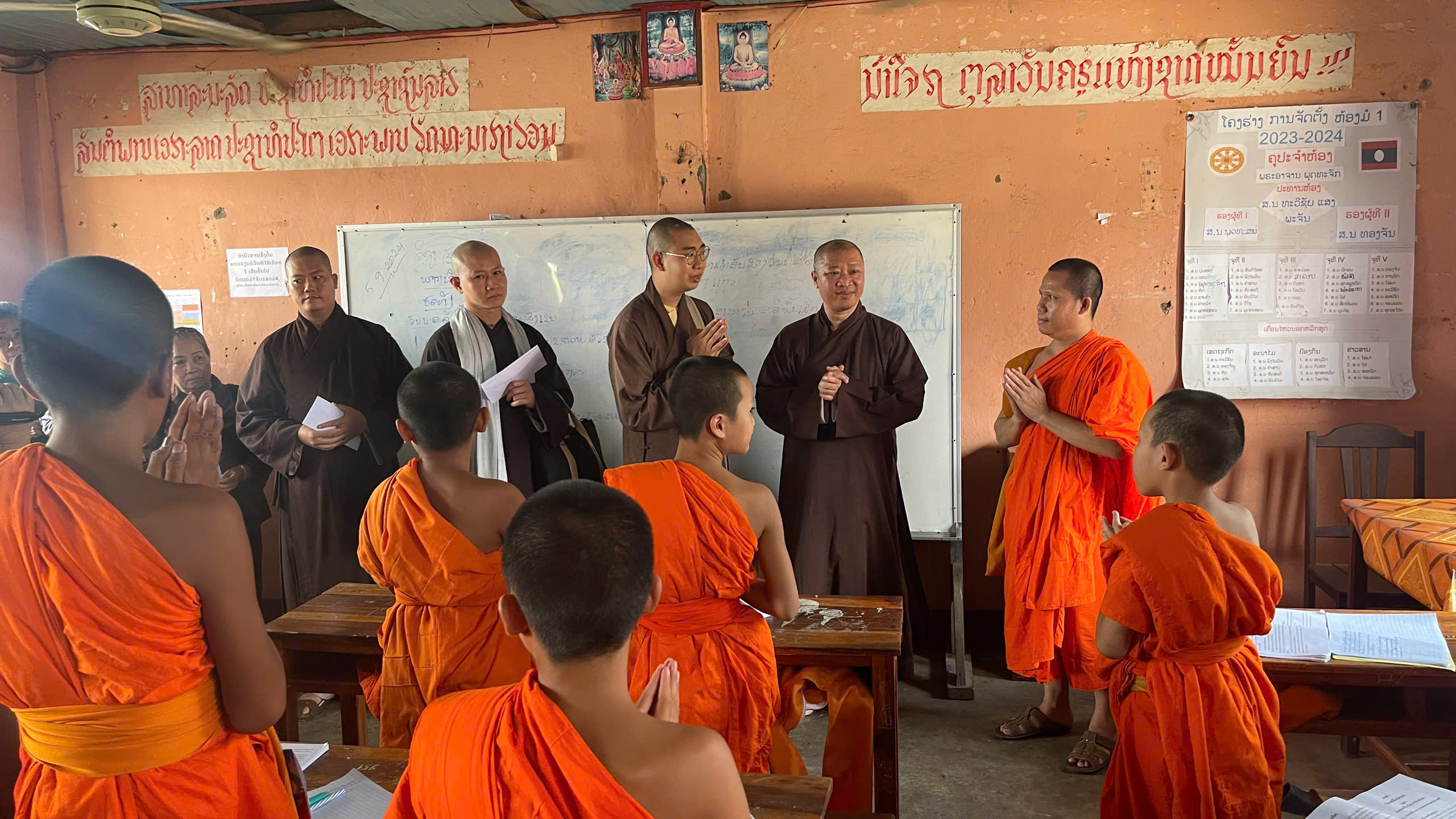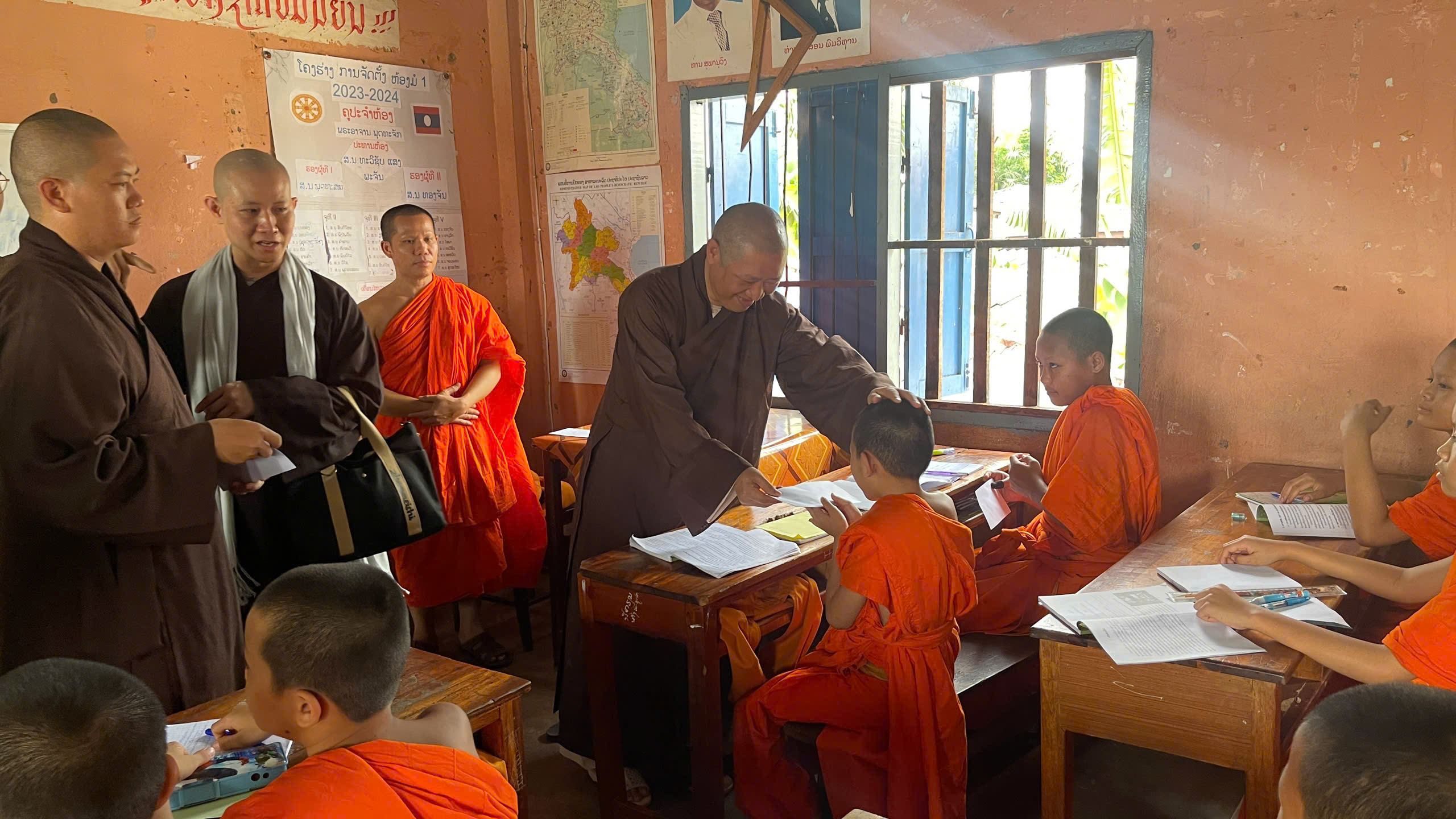 Các chú tiểu phải học 02 chương trình gồm thế học và Phật học theo quy định của Bộ Giáo dục – Đào tạo CHDCND Lào. Và đây cũng là mái trường đầy ắp những kỷ niệm thân thương mà Thầy Thiện Quân (Đệ tử Viện Chuyên Tu) đã từng theo học khi còn làm điệu. Về thăm lại mái trường xưa khiến lòng Thầy Quân dạt dào bao nỗi niềm xúc cảm. Hơn thế nữa, việc phát tâm này hỗ trợ phần nào cho các hoạt động của Trường; qua đó gắn kết tình linh sơn pháp lữ, sự hộ trì Tăng bảo trong đời sống tu học chốn thiền môn, và đọng lại nét đẹp tình người giữa hai quốc gia Việt Nam – Lào.