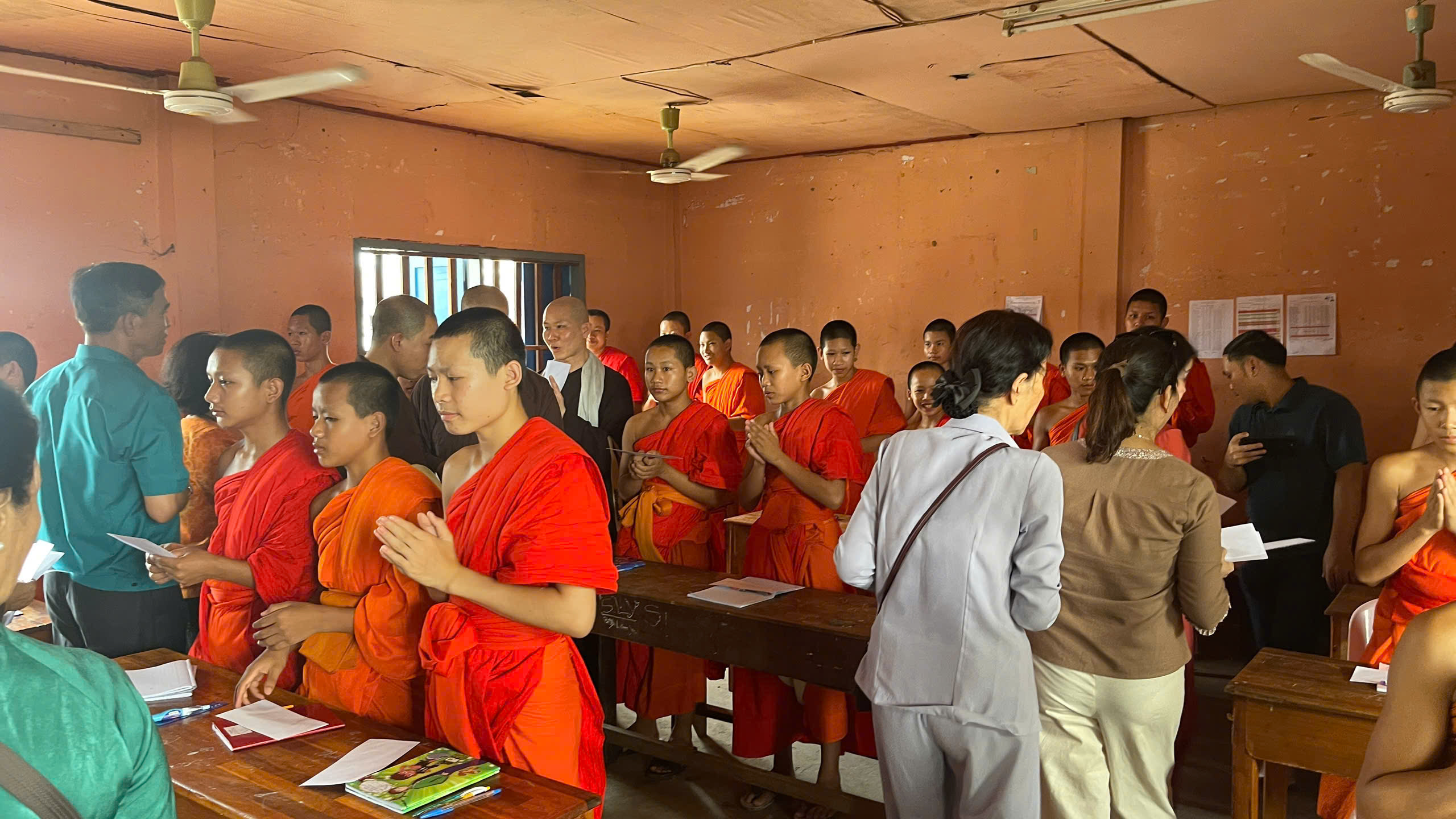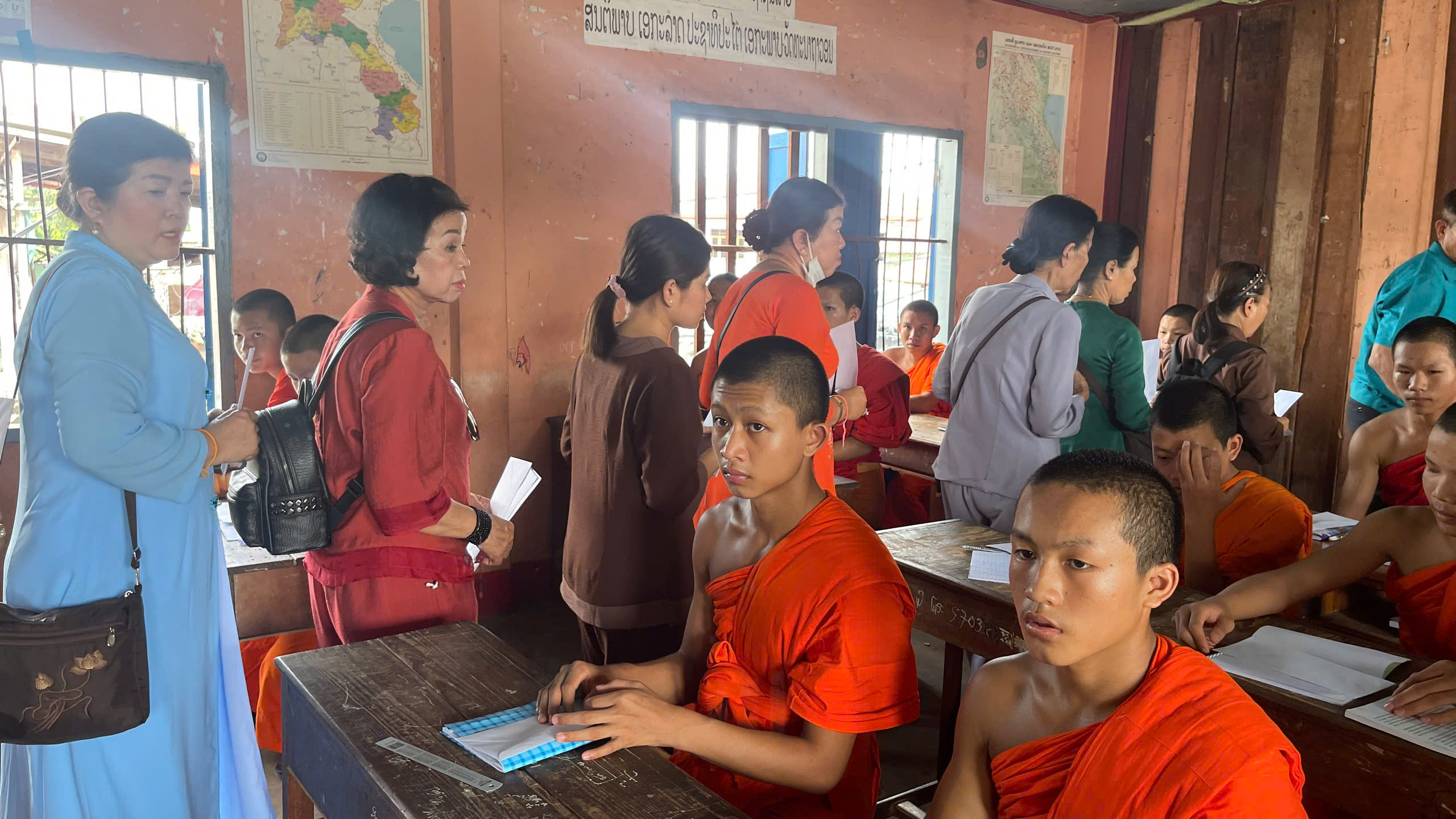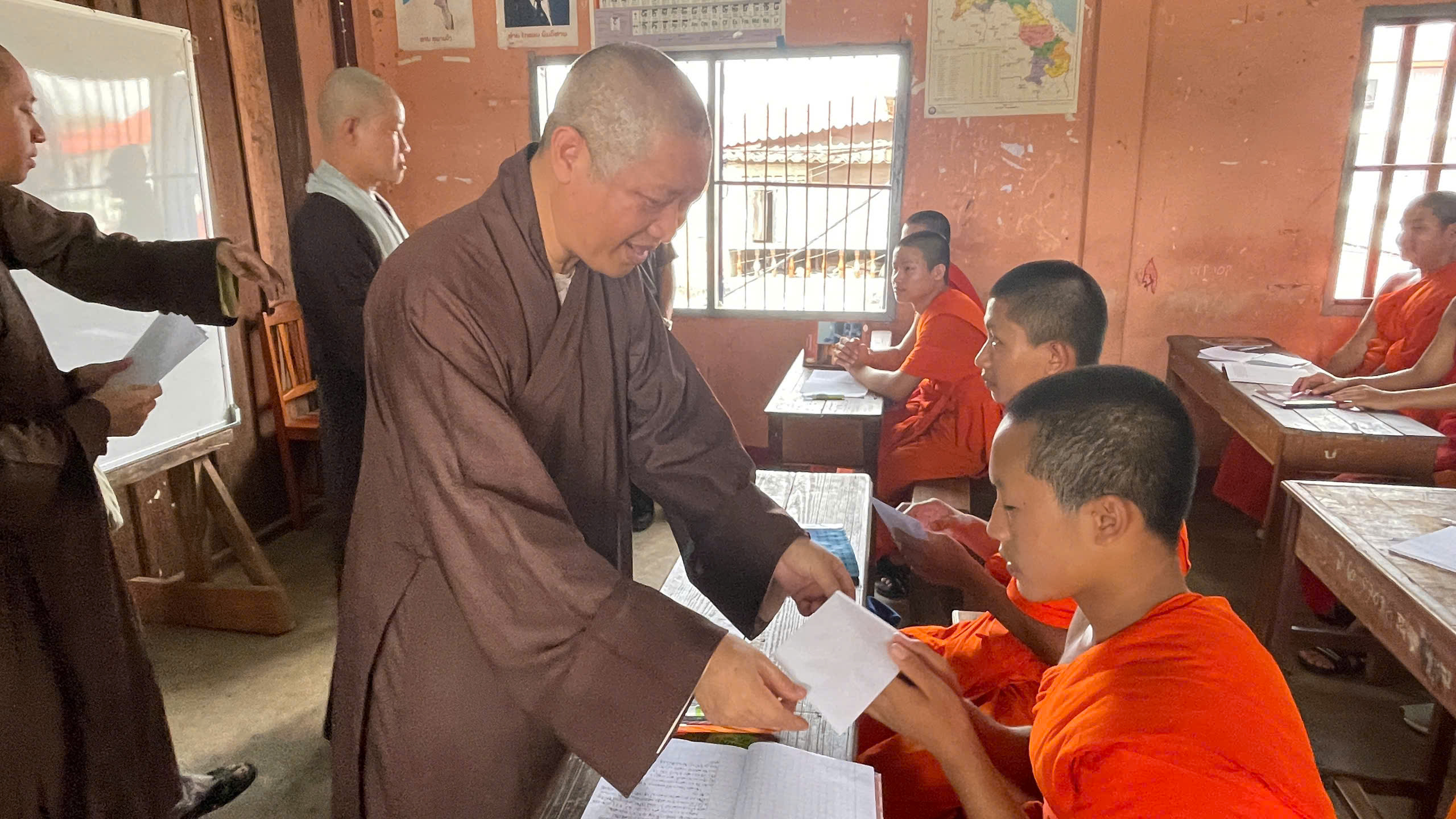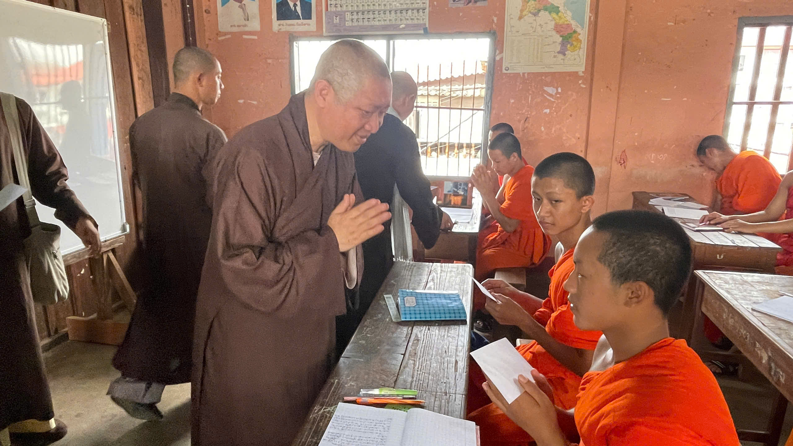 Các chú tiểu phải học 02 chương trình gồm thế học và Phật học theo quy định của Bộ Giáo dục – Đào tạo CHDCND Lào. Và đây cũng là mái trường đầy ắp những kỷ niệm thân thương mà Thầy Thiện Quân (Đệ tử Viện Chuyên Tu) đã từng theo học khi còn làm điệu. Về thăm lại mái trường xưa khiến lòng Thầy Quân dạt dào bao nỗi niềm xúc cảm. Hơn thế nữa, việc phát tâm này hỗ trợ phần nào cho các hoạt động của Trường; qua đó gắn kết tình linh sơn pháp lữ, sự hộ trì Tăng bảo trong đời sống tu học chốn thiền môn, và đọng lại nét đẹp tình người giữa hai quốc gia Việt Nam – Lào.