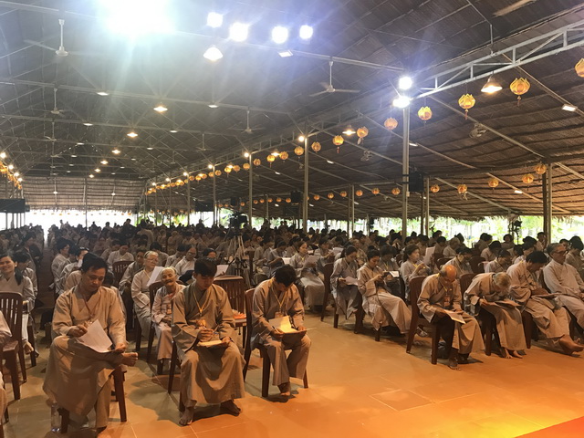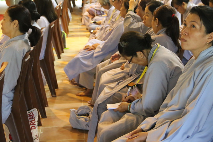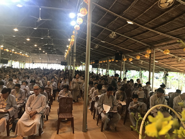 Sau khi làm bài trắc nghiệm giáo lý, chư hành giả được thính pháp do TT . Thích Thiện Thuận trụ trì Viện Chuyên Tu thuyết giảng qua chủ đề: “Lòng người”.