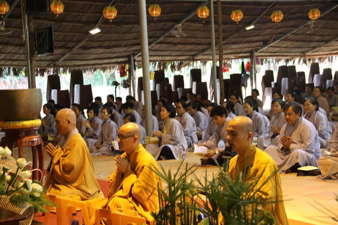 Đầu giờ chiều lúc 13:30 đại chúng lắng nghe kinh Đại bát Niết bàn, sau đó là thời pháp đàm do ĐĐ. Thích Thiện Hưng, ĐĐ. Thích Thiện Đức, ĐĐ. Thích Thiện Long, ĐĐ. Thích Thiện Trụ chủ trì. Nhằm giúp chư hành giả có thêm cơ hội học hiểu giáo lý và tháo gỡ những vướng mắc trong cuộc sống, Quý thầy đã chia sẻ chủ đề: “Đức hạnh người Phật tử”. Nội dung dựa theo lời Phật dạy, hướng người Phật tử tu tập thực hành để trở thành người Phật tử chân chánh đạo hạnh. Thời pháp đàm còn đón nhận những câu hỏi từ các hành giả và được quý thầy giải đáp rõ ràng chi tiết.