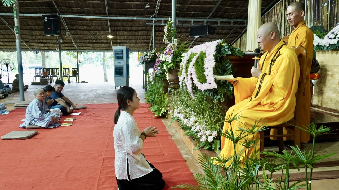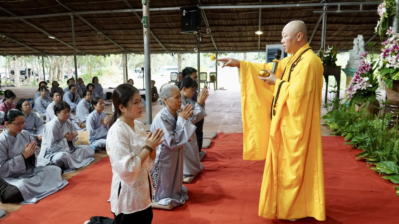 Vào thời khóa buổi chiều, sau lễ truyền trao Tam quy Ngũ giới là phần vấn đáp Phật pháp. Nhị vị giảng sư đã dành thời gian 30 phút để trả lời những thắc mắc về giáo lý trong cuộc sống tu tập của chư hành giả.