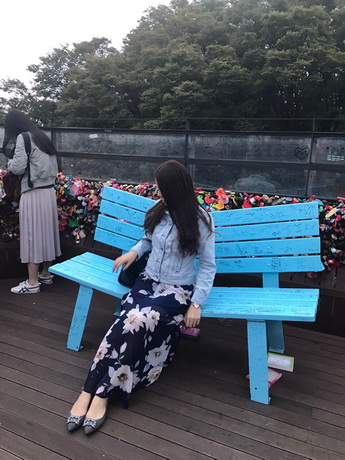 Đặc biệt, xung quanh hàng rào khóa tình tình yêu là những chiếc ghế “lạ” được thiết kế như bị gãy ở giữa mang một câu chuyện dễ thương về tình yêu đôi lứa khi chú gấu Namsan ngồi giữa làm cho chiếc ghế bị gãy ở giữa và điều này làm cho đôi trẻ vô tình đổ dồn về giữa ghế như thể được gần nhau hơn.