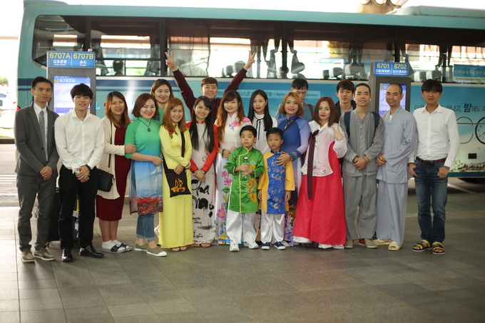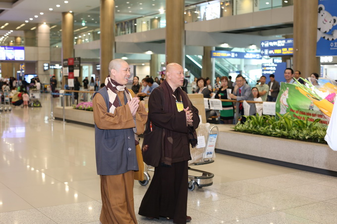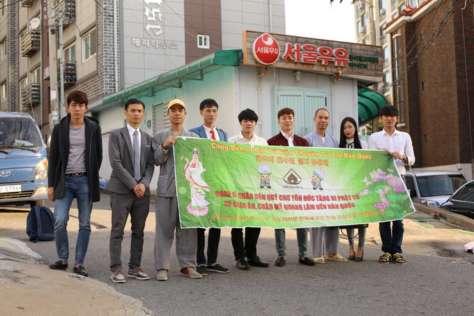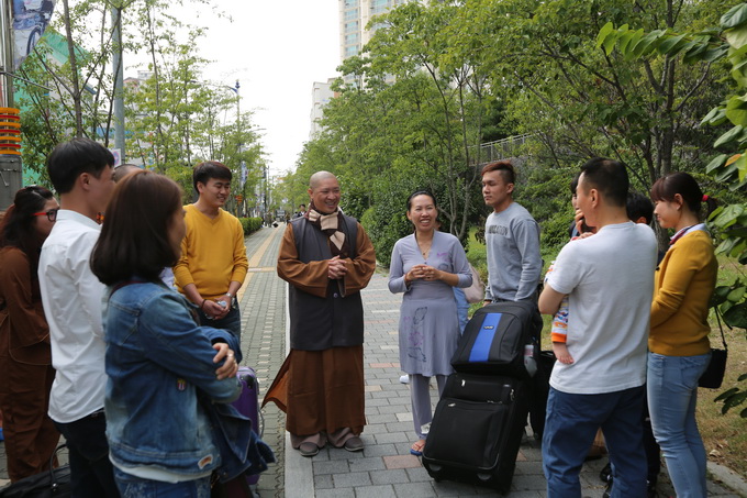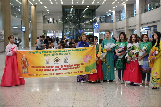 Chúng tôi mới ấm người khi thấy những khuôn mặt thân thương cùng những dòng chữ Việt trên tấm băng- rôn nơi đất lạ: Hoan hỷ chào đón quý chư tôn đức Tăng Ni và Phật tử từ Viện Chuyên Tu quang lâm đến Hàn Quốc.