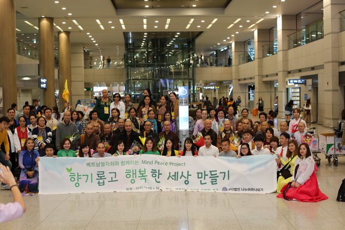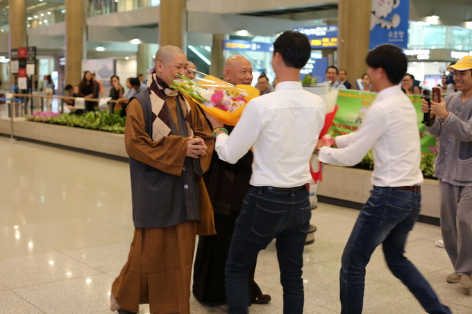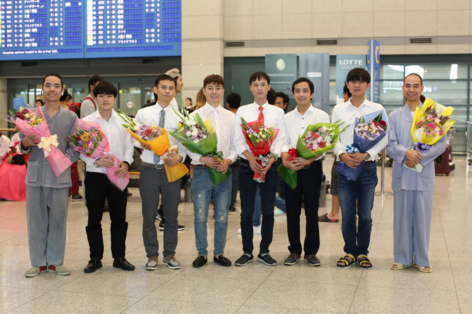 Cái lạnh của mùa thu đặc trưng của vùng đông Bắc Á đã len lén vào người. Vừa làm thủ tục nhập cảnh xong, chúng tôi di chuyển về hướng sảnh sân bay để về khách sạn. Đón chúng tôi là Cộng đồng Phật tử Viện Chuyên Tu Việt Nam đã mang những lẵng hoa tươi thắm như đã chờ sẵn từ rất lâu. Mặc dù, vào tết trung thu, cũng như các cô dâu Hàn Quốc, các cô dâu Việt Nam tại đây cũng phải ở nhà chồng hai ngày để cúng ông bà. Truyền thống này gần như bắt buộc. Chúng tôi cứ ngỡ các em bận gia duyên nên việc cung đón chư tôn đức và đoàn sẽ ít nhiều sẽ bị ảnh hưởng.