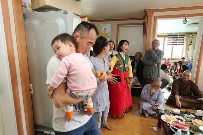Sau bữa cơm ấm áp tình đạo, gia đình Phật tử Diệu Bình tri ân chư tôn đức Tăng Ni và quý Phật tử trong đoàn đã đáp lại lời kiền thỉnh đã về tư gia thọ nhận bữa trưa trong nước mắt và xin phát tâm sẽ dâng cúng cho đoàn vào những lần tiếp theo khi đoàn đến Seoul hoằng pháp.