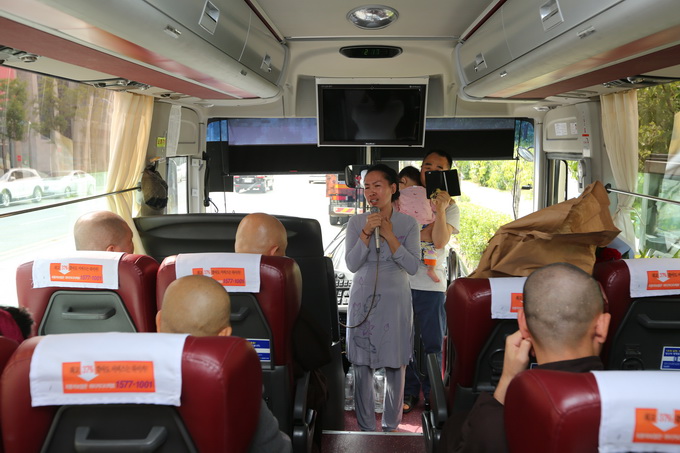 Trên đường đi, Thượng tọa Thiện Thuận tranh thủ giới thiệu đoàn, trong đó có một vị pháp lữ đồng hành cùng mình suốt 25 năm qua trên con đường hoằng pháp và tu học trong khoảng thời gian khá dài như trên, đó là Thượng Tọa Hạnh Bảo. Qua đây, Thượng tọa Hạnh Bảo cũng bày tỏ rất nhiều tâm tình đối với Thượng trưởng đoàn và chia sẻ cùng đại chúng một câu chuyện vô cùng ý nghĩa với những người làm công tác hoằng pháp, dấn thân các Phật sự:
