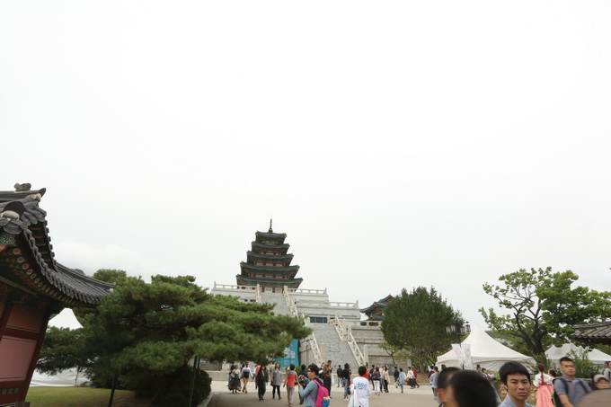 Khi chúng tôi đến Phúc cảnh cung đã là 3 giờ 30, khu di tích nổi bậc với các bộ Hanbok truyền thống của du khách như làm bật lên không gian triều chính hơn sáu mươi năm về trước.