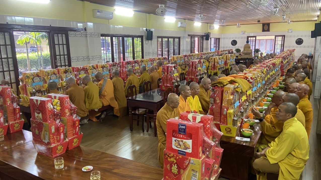 Được Tăng sai, Đại đức Thích Thiện Hoá đọc 250 giới Tỳ-kheo trong Tỳ-kheo Giới kinh và 58 giới trong kinh Phạm võng Bồ tát giới. Tiếp sau lễ Bố tát, Thượng toạ Thích Thiện Thuận và Chư Tăng Viện Chuyên Tu phát tâm cúng dường quà Tết và tịnh tài đến Chư Tôn đức với tổng kinh phí là 170 triệu đồng.