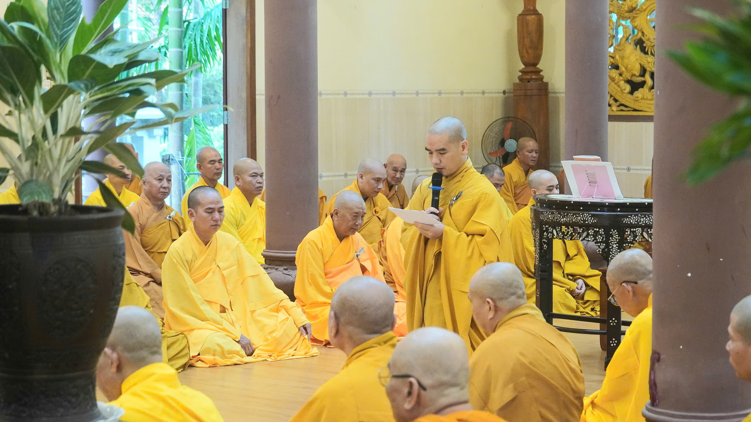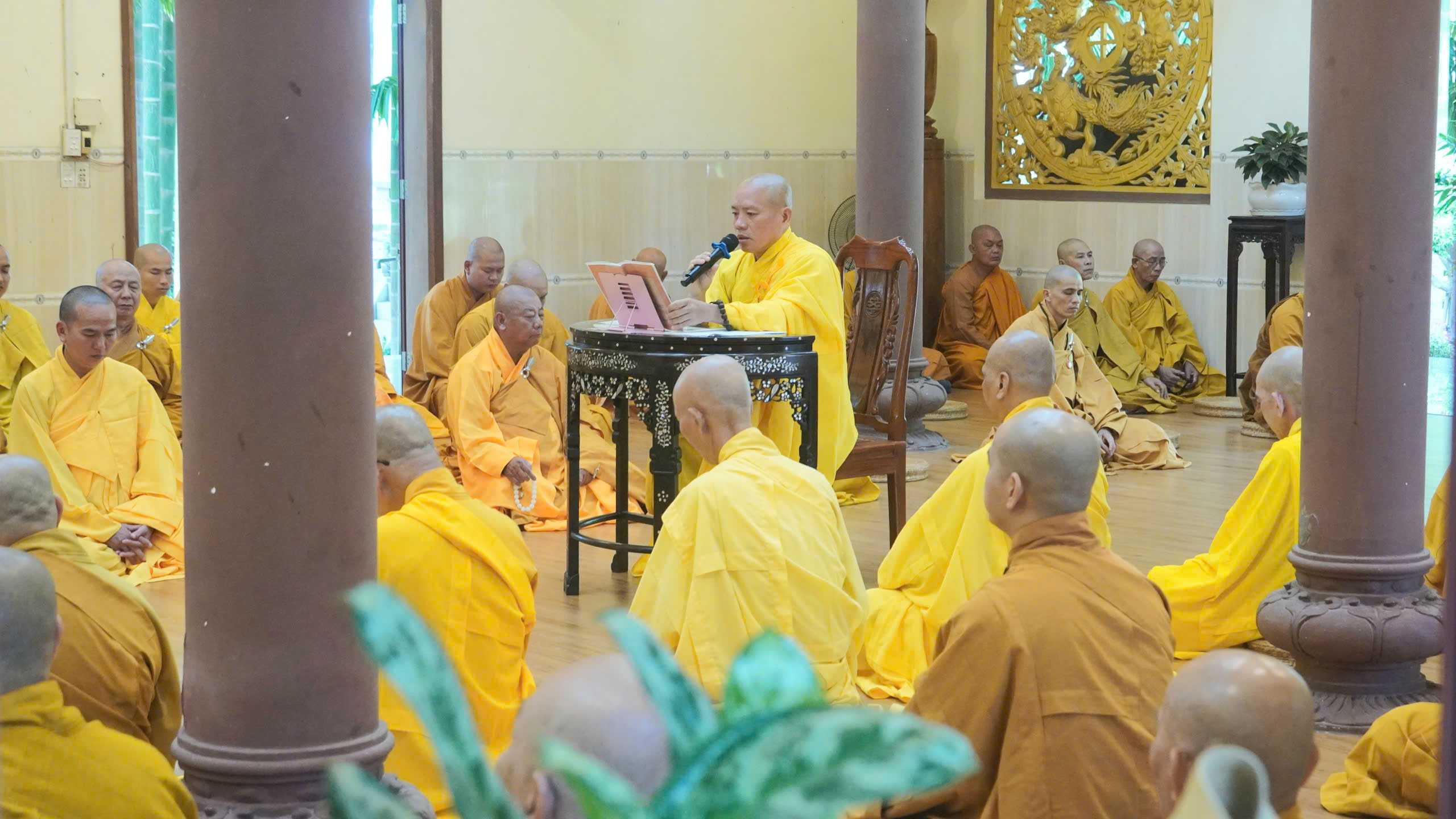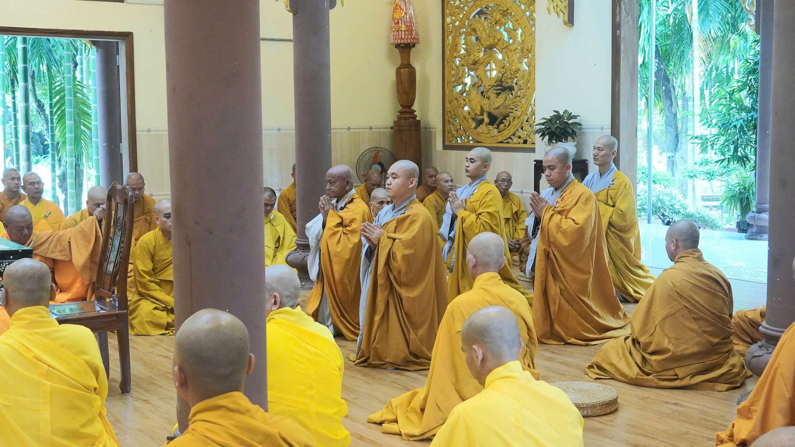 Sáng ngày 09/08/2025 (nhằm ngày 15 tháng 6 (nhuận) năm Ất Tỵ), chư Tôn Hòa thượng Ban chứng minh, chư Thượng tọa Ban chức sự hạ trường cùng chư Tôn thiền đức hành giả an cư đã câu hội về trường hạ chùa Vạn Thiện để tham dự kỳ “Yết ma thuyết giới – Bố tát” lần thứ 4, mùa an cư kiết hạ (PL.2569 – DL.2025).