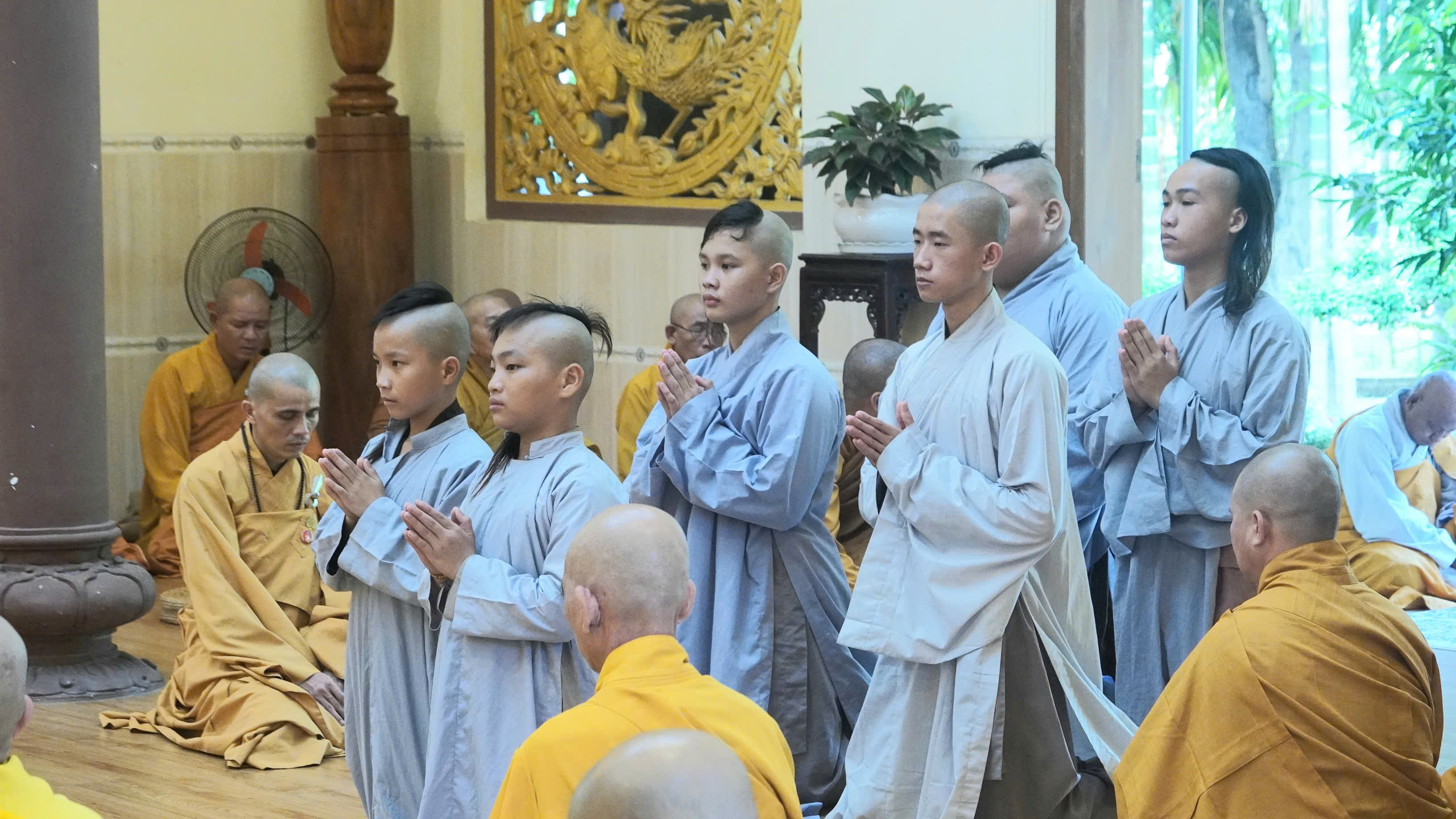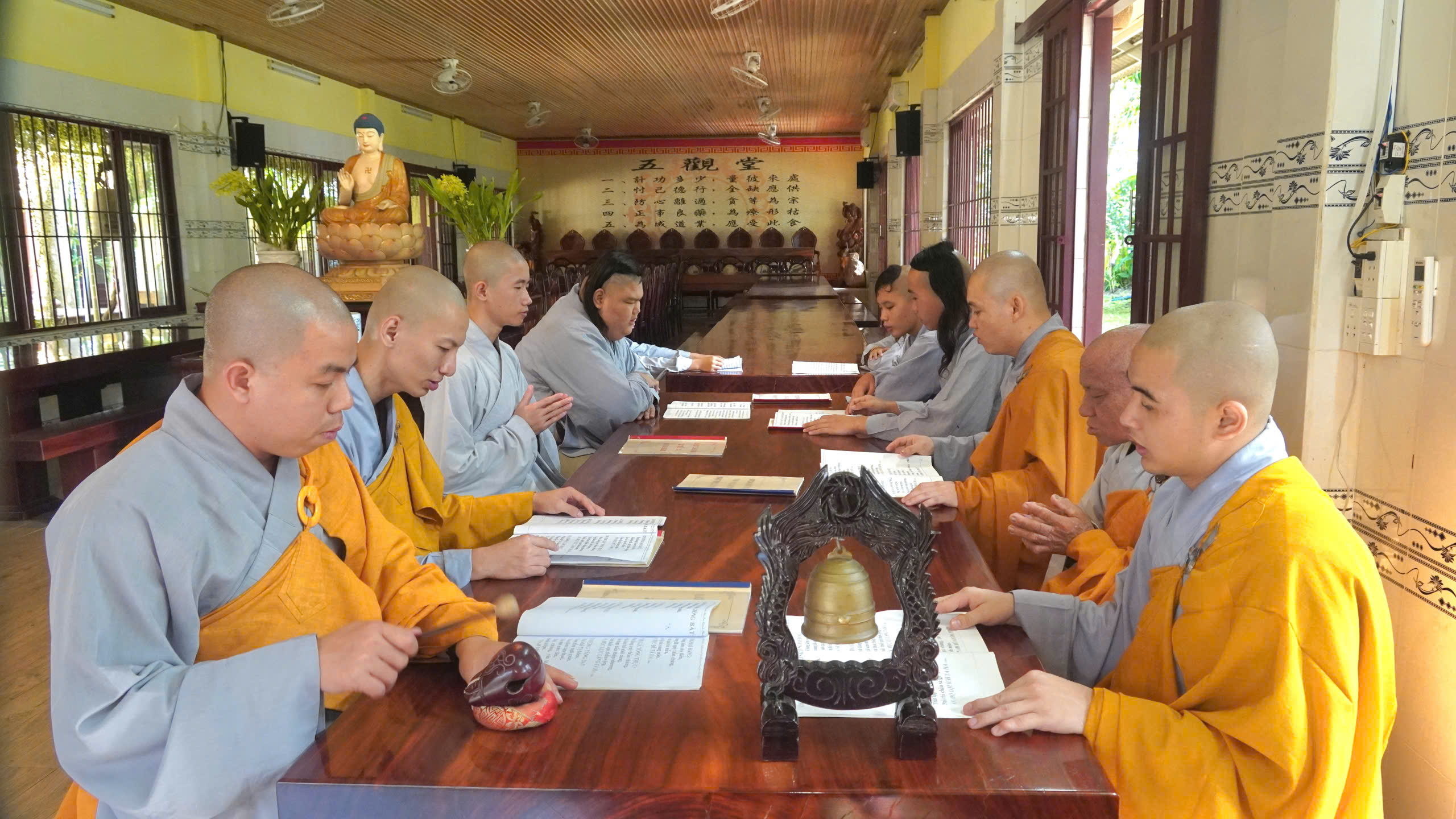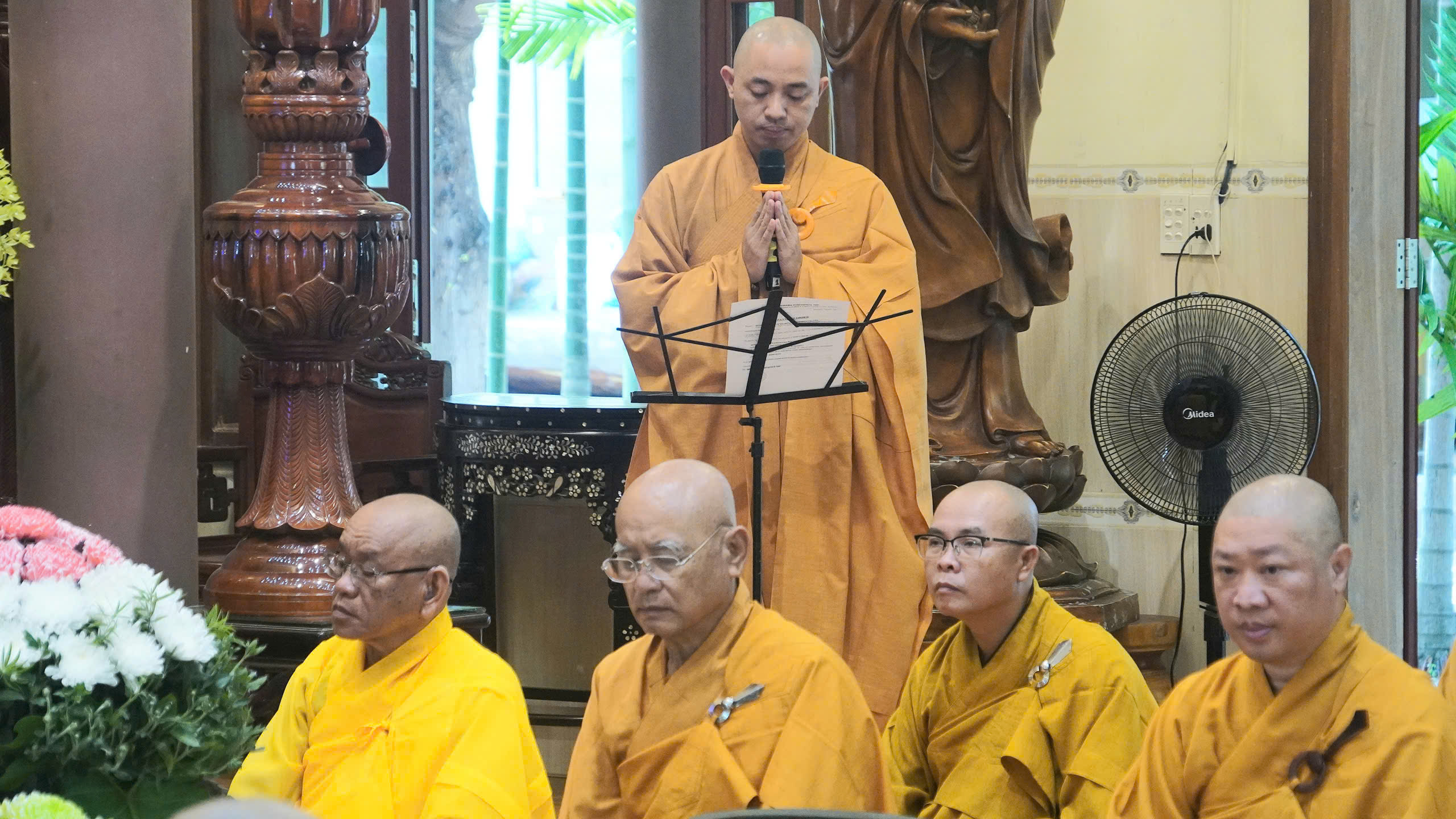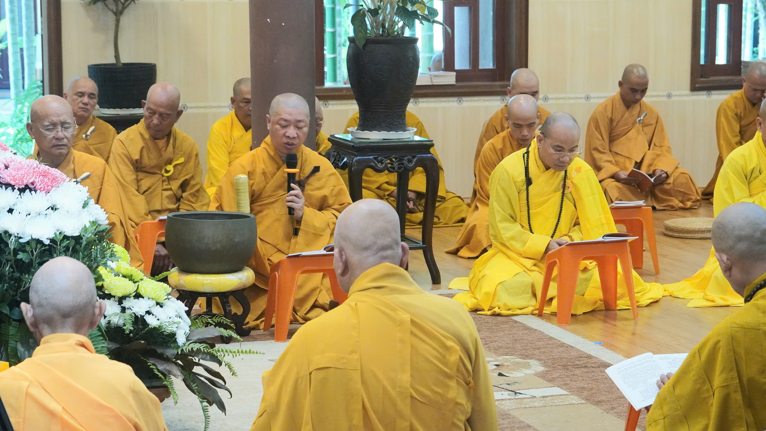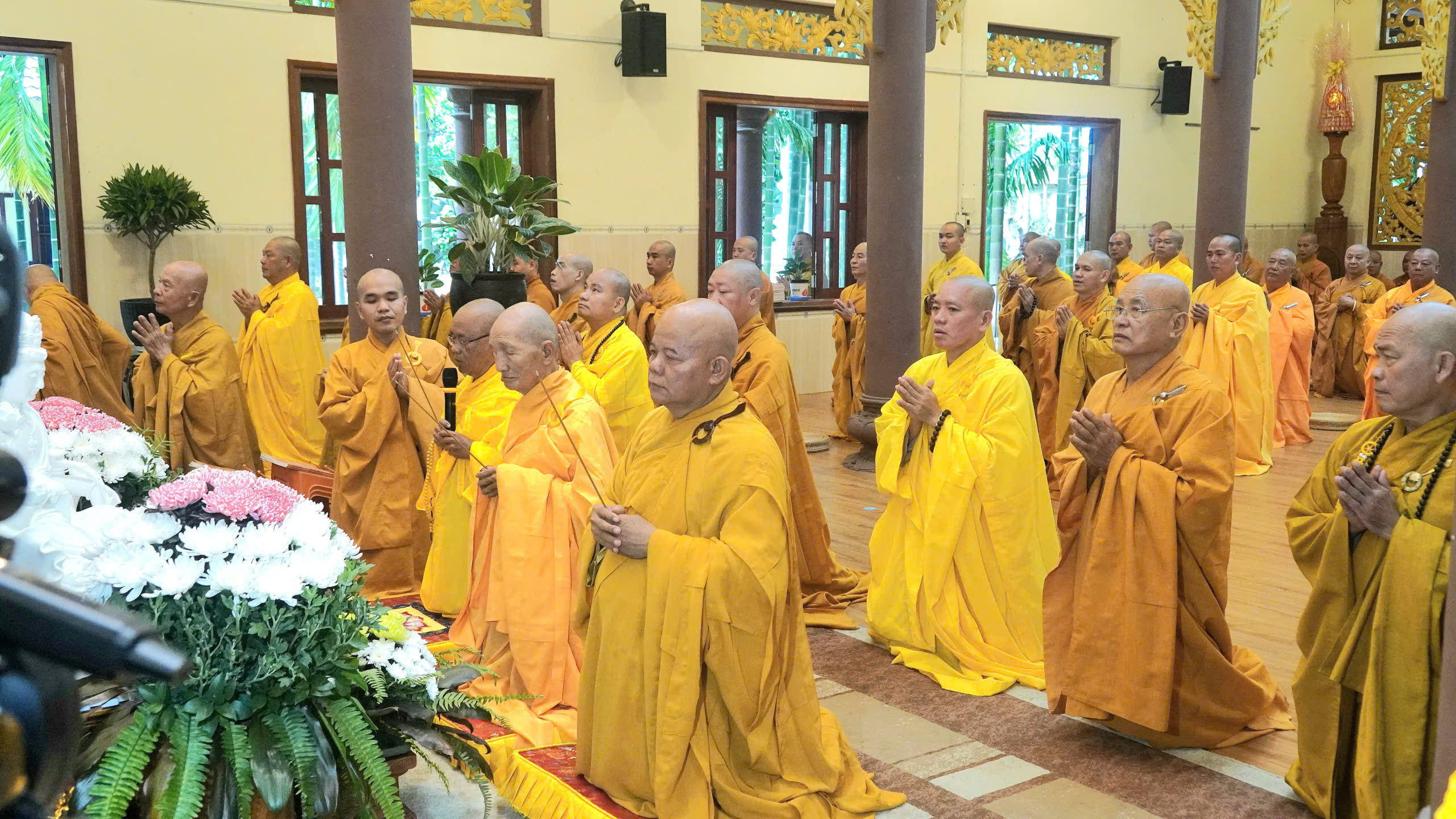 Cung đối trước Tam Bảo trang nghiêm, thanh tịnh, chư Tôn Hòa thượng, chư Thượng tọa đã niêm hương bạch Phật, nguyện cầu được sự mật thùy gia hộ của chư Phật, chư vị Bồ Tát cho Phật pháp mãi trường tồn, giới luật được trùng tuyên, chư hành giả đều an lạc, tinh tấn, đạo quả sớm viên thành. Sau đó, chư Tôn Thiền đức nhất tâm trì tụng thần chú đại bi.