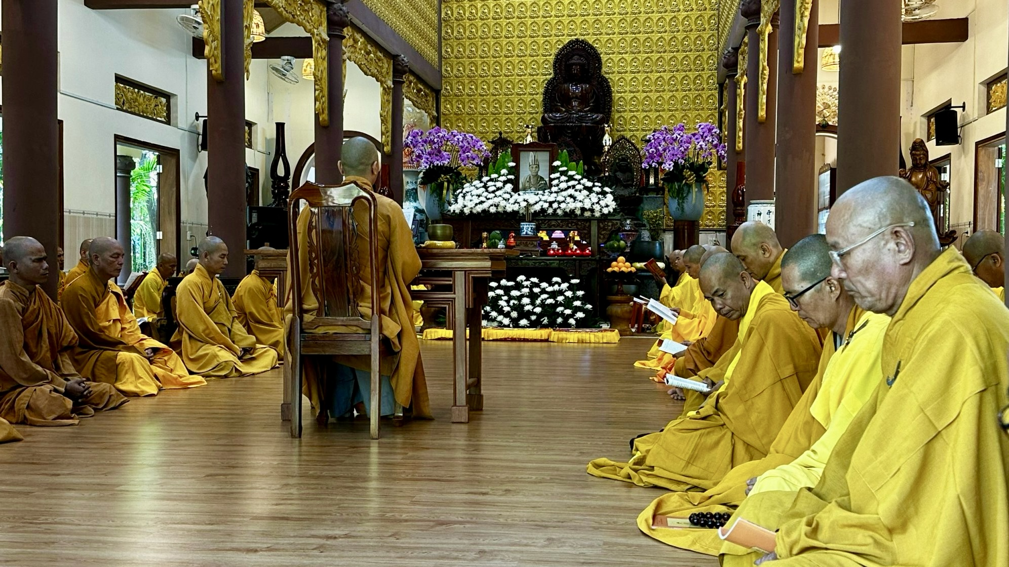 Sáng nay, ngày 12/12 (30/11 Quý Mão), chư Tăng tại khu vực núi Thị Vải trang nghiêm làm lễ Bố tát định kỳ và tưởng niệm cố Đại lão Hoà thượng Khai sơn chùa Vạn Thiện thượng Đồng hạ Huy.