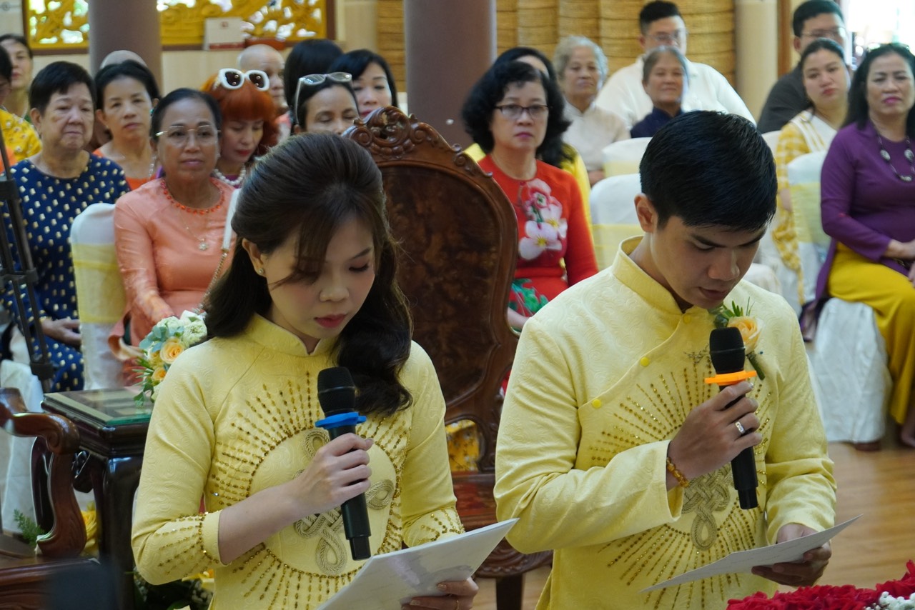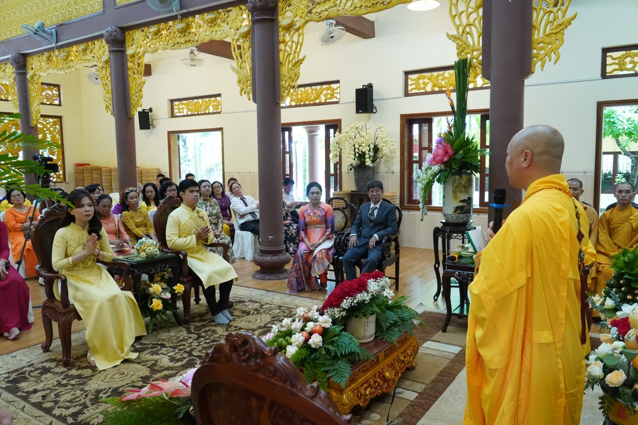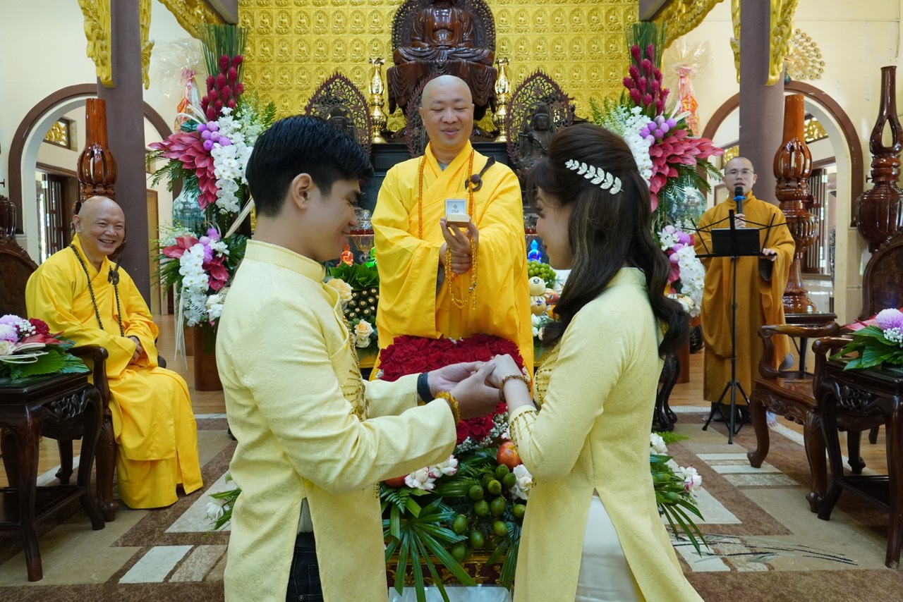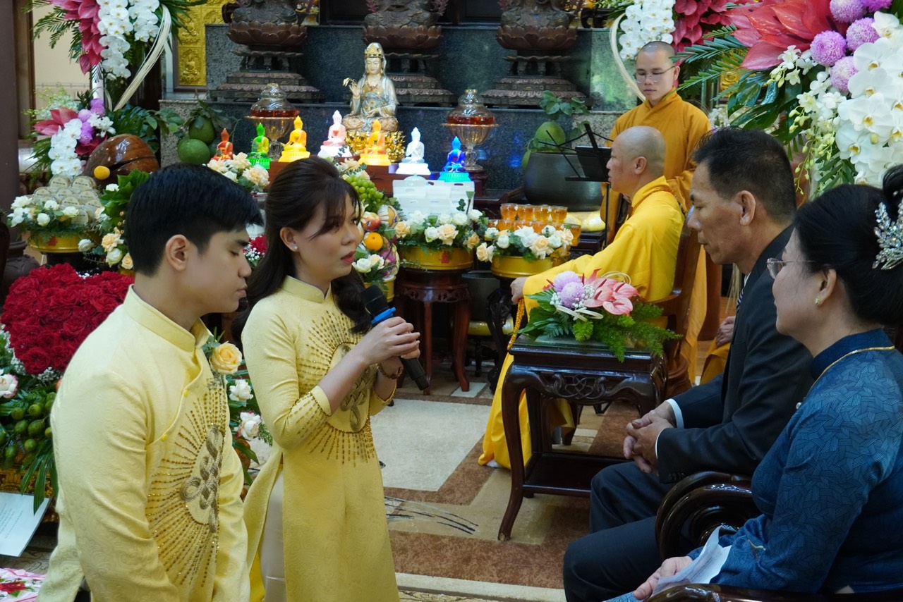 Lễ Hằng thuận tại chùa Vạn Thiện diễn ra trong hai giờ đồng hồ, dưới sự dẫn dắt và chỉ dạy của Thượng toạ Trụ trì, sự chứng minh của chư Tăng. Đầu tiên, quý chư Tôn đức bạch Phật khai kinh trì tụng thần chú Đại Bi cầu nguyện cho đôi Tân lang Tân nương thành thân hạnh phúc trọn vẹn, kế đến là TT. Thích Thiện Thuận chỉ dạy những trách nhiệm và lối sống theo đạo lý qua bài kinh Người Áo Trắng. Tiếp theo là nói về ý nghĩa của chiếc nhẫn, biểu tượng của tình yêu chung thuỷ sắc son do TT. Thích Hạnh Bảo giảng giải. Sau đó, cô dâu và chú rễ thực hiện nghi thức lễ tạ thâm ân của cha mẹ trong ngày trọng đại và cùng phát nguyện trước Tam Bảo rằng sẽ nguyện bên nhau trọng đời qua 10 lời phát nguyện.