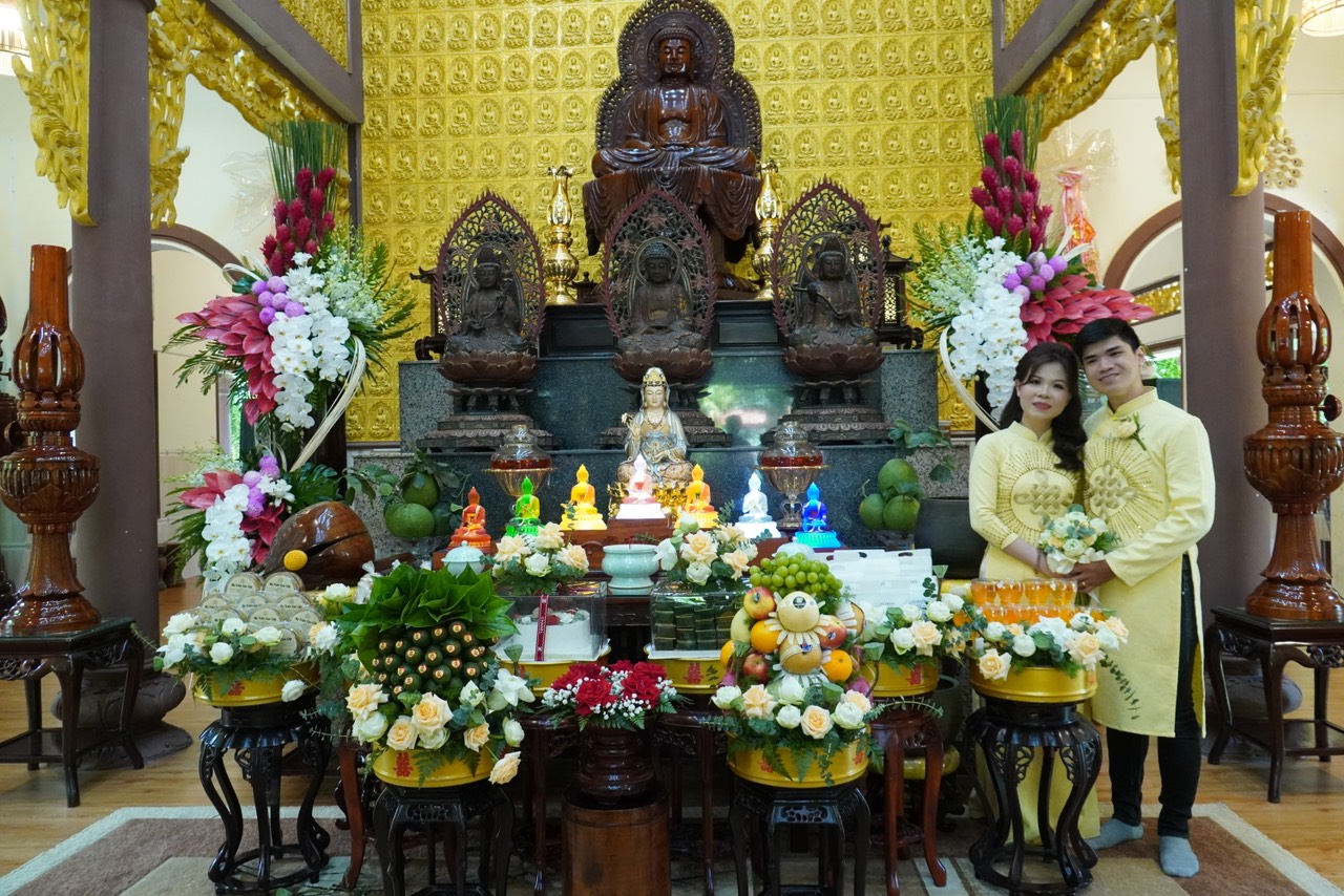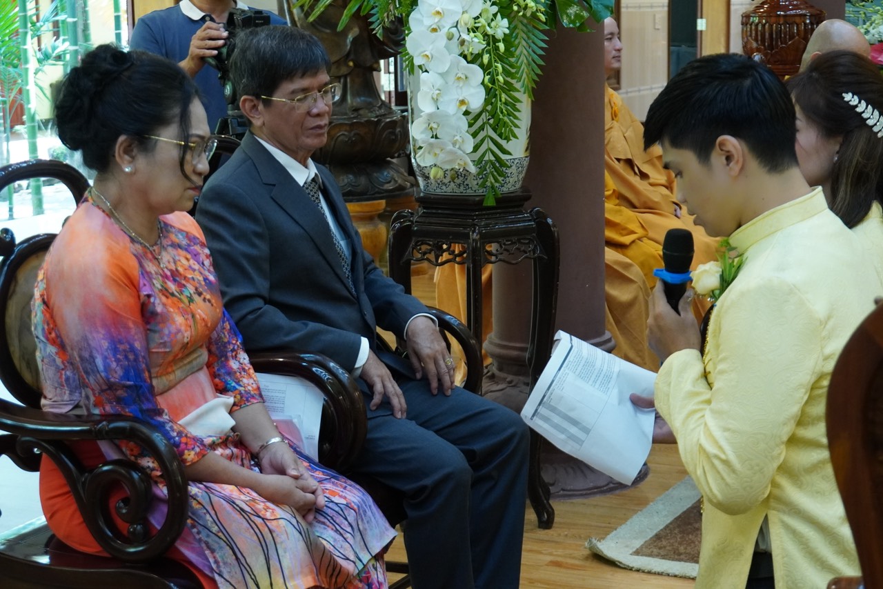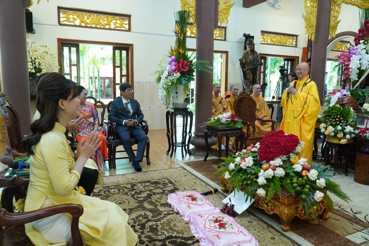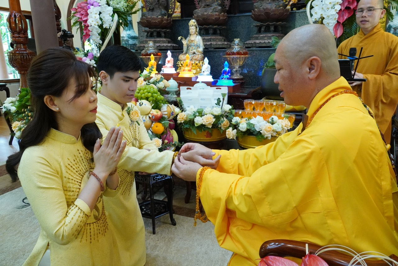 Lễ Hằng thuận tại chùa Vạn Thiện diễn ra trong hai giờ đồng hồ, dưới sự dẫn dắt và chỉ dạy của Thượng toạ Trụ trì, sự chứng minh của chư Tăng. Đầu tiên, quý chư Tôn đức bạch Phật khai kinh trì tụng thần chú Đại Bi cầu nguyện cho đôi Tân lang Tân nương thành thân hạnh phúc trọn vẹn, kế đến là TT. Thích Thiện Thuận chỉ dạy những trách nhiệm và lối sống theo đạo lý qua bài kinh Người Áo Trắng. Tiếp theo là nói về ý nghĩa của chiếc nhẫn, biểu tượng của tình yêu chung thuỷ sắc son do TT. Thích Hạnh Bảo giảng giải. Sau đó, cô dâu và chú rễ thực hiện nghi thức lễ tạ thâm ân của cha mẹ trong ngày trọng đại và cùng phát nguyện trước Tam Bảo rằng sẽ nguyện bên nhau trọng đời qua 10 lời phát nguyện.