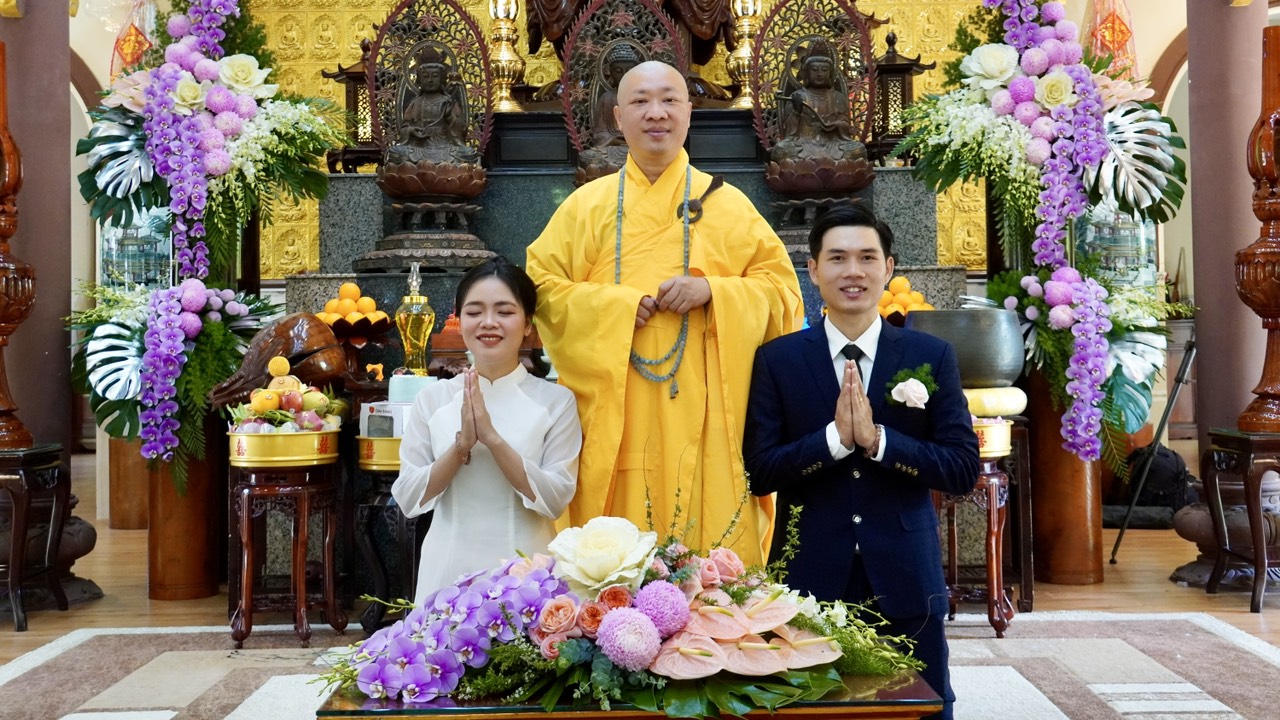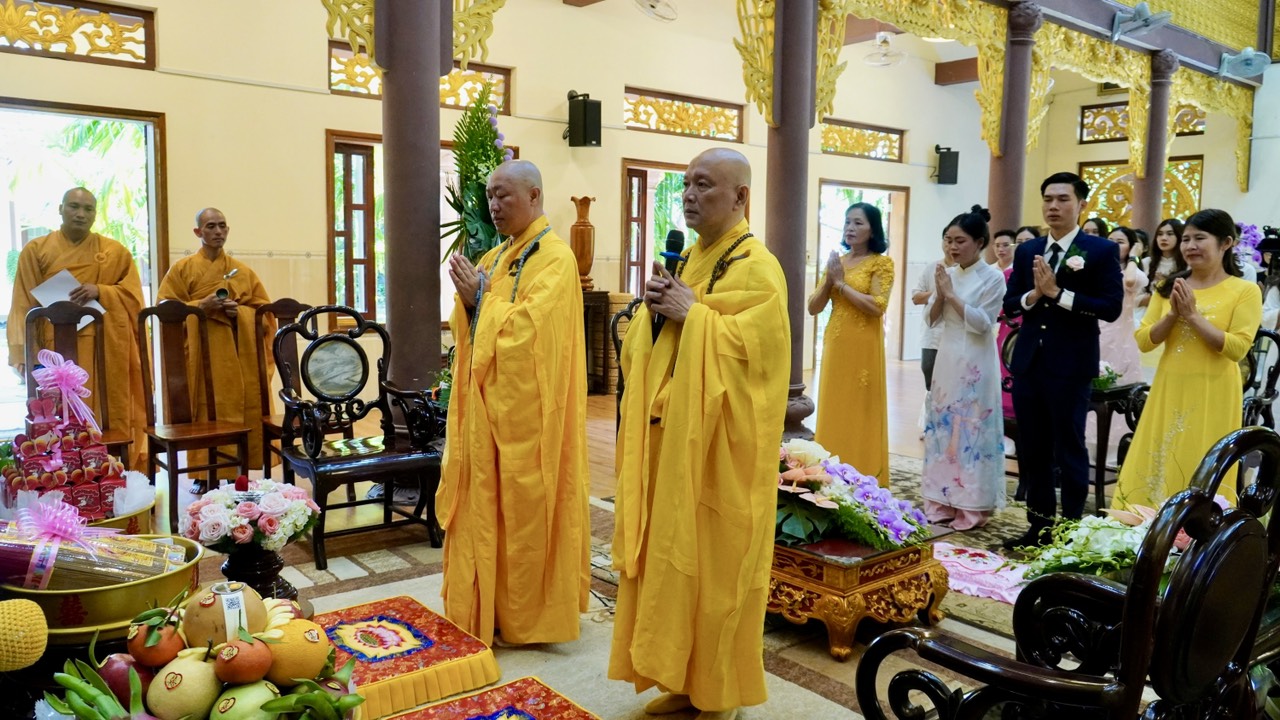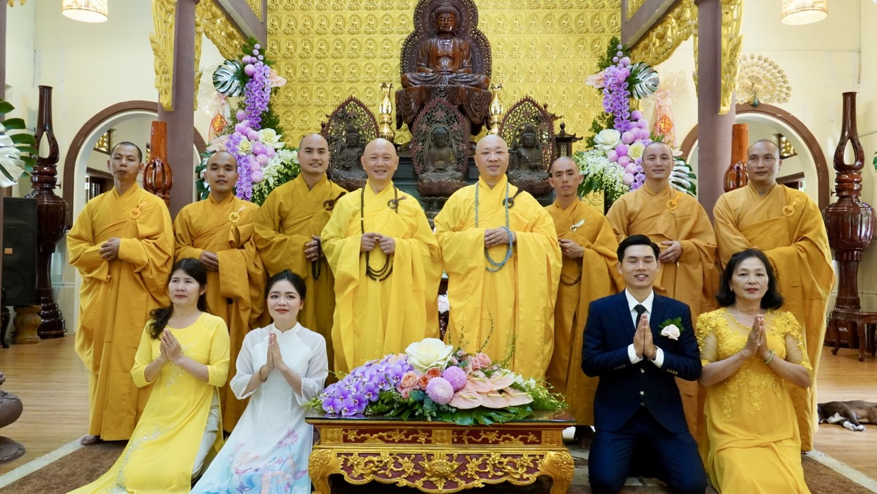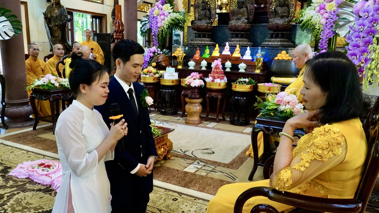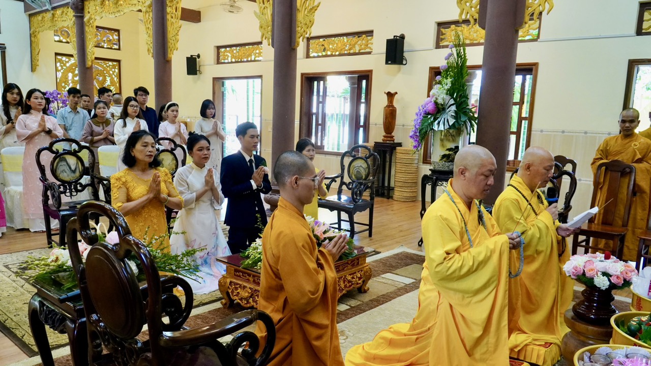 Buổi lễ diễn ra trang nghiêm và long trọng dưới sự chứng minh của Thượng toạ Trụ trì Thích Thiện Thuận, Thượng toạ Thích Hạnh Bảo Trụ trì chùa Liên Tâm, Phần Lan cùng chư Tăng tại Bổn tự. Ngoài ra, có sự chứng tri của quan viên hai họ, bạn bè thân hữu của tân lang và tân nương.