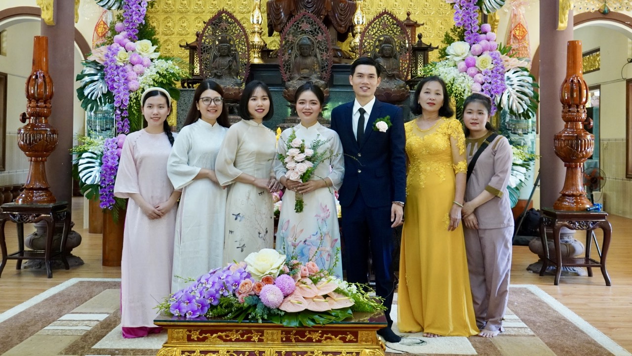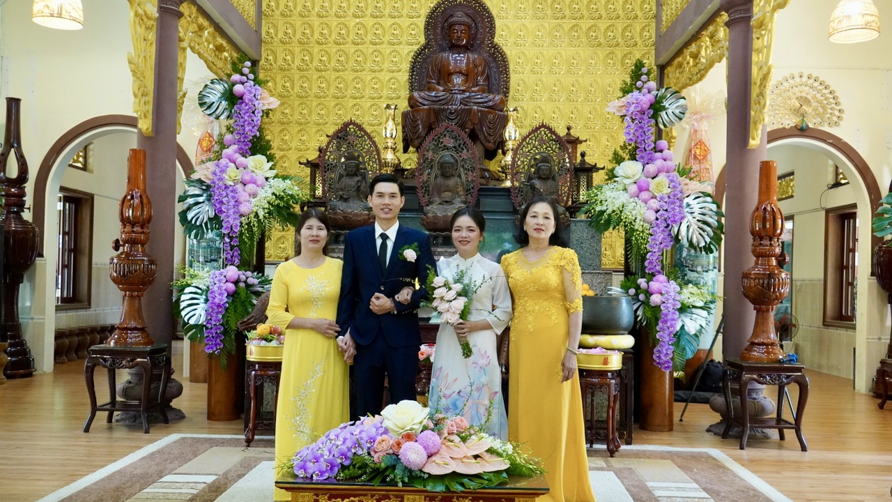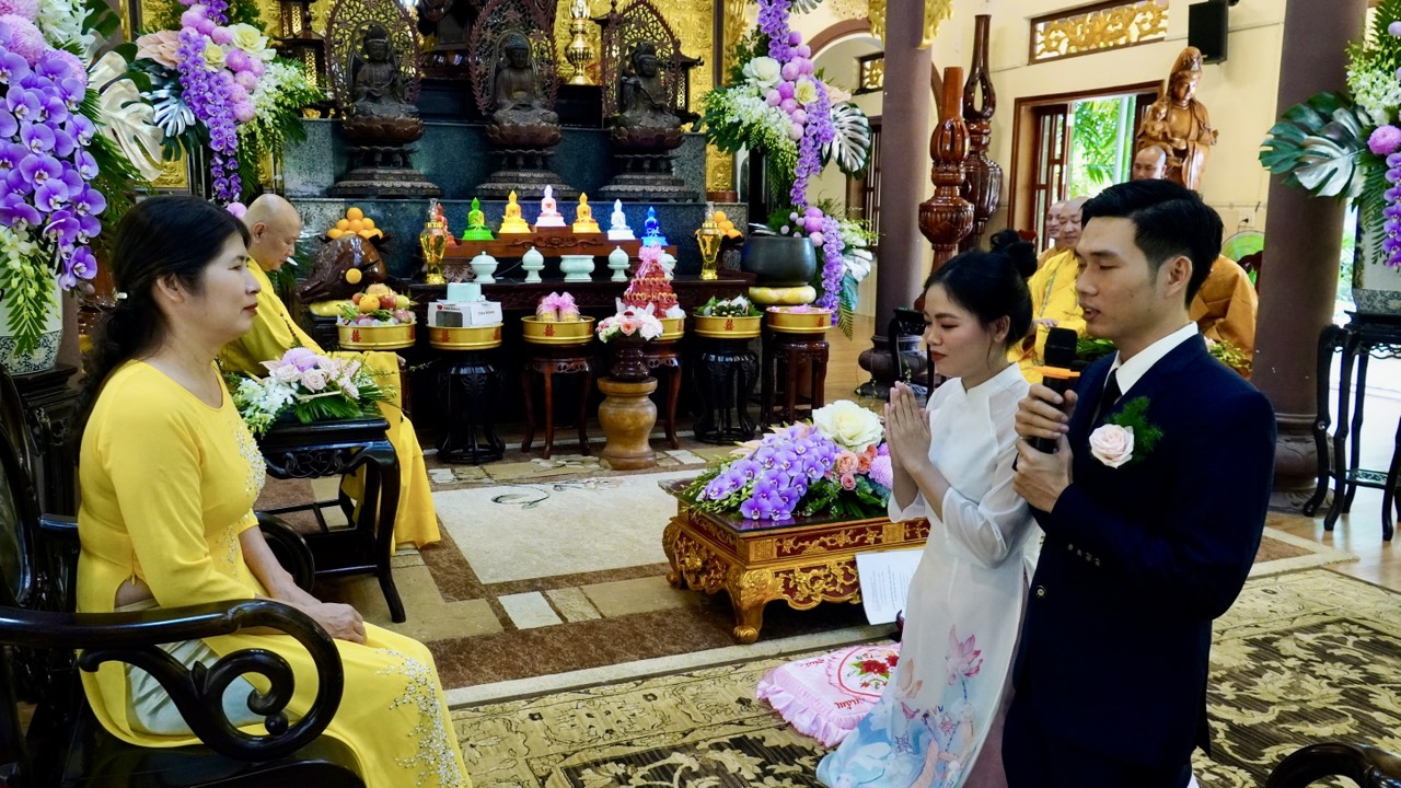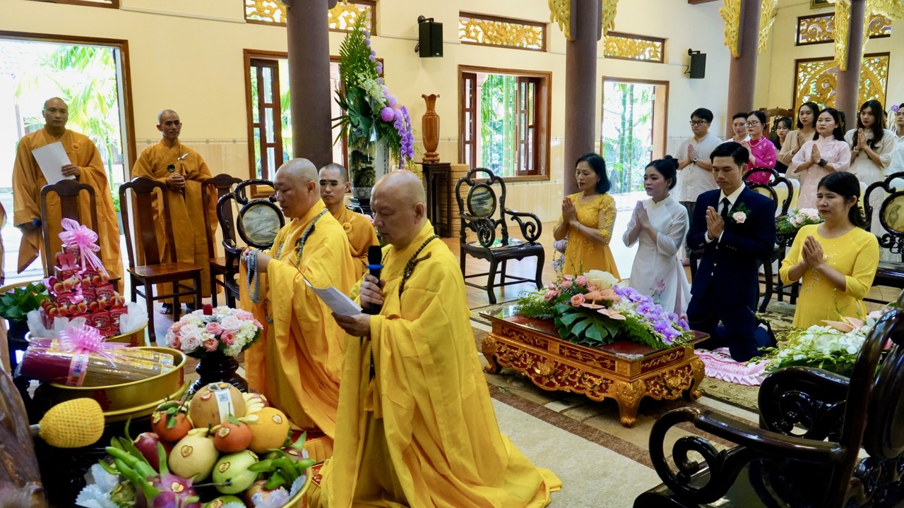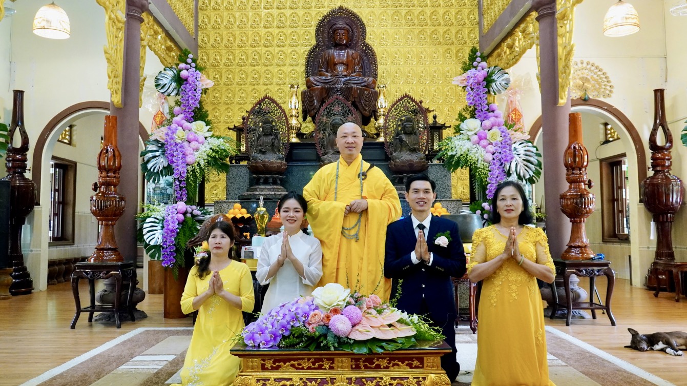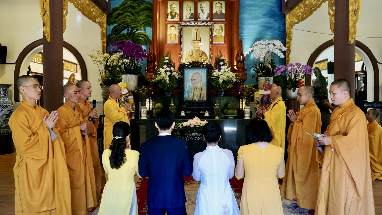 Buổi lễ diễn ra trang nghiêm và long trọng dưới sự chứng minh của Thượng toạ Trụ trì Thích Thiện Thuận, Thượng toạ Thích Hạnh Bảo Trụ trì chùa Liên Tâm, Phần Lan cùng chư Tăng tại Bổn tự. Ngoài ra, có sự chứng tri của quan viên hai họ, bạn bè thân hữu của tân lang và tân nương.