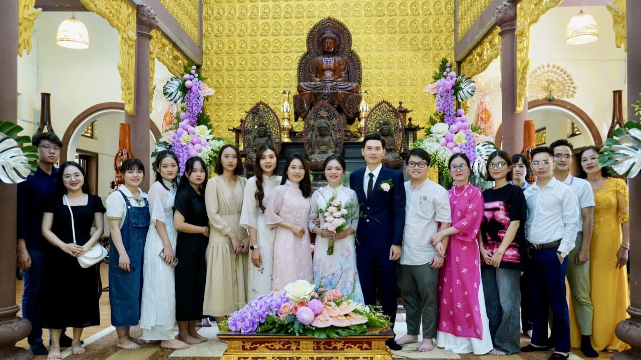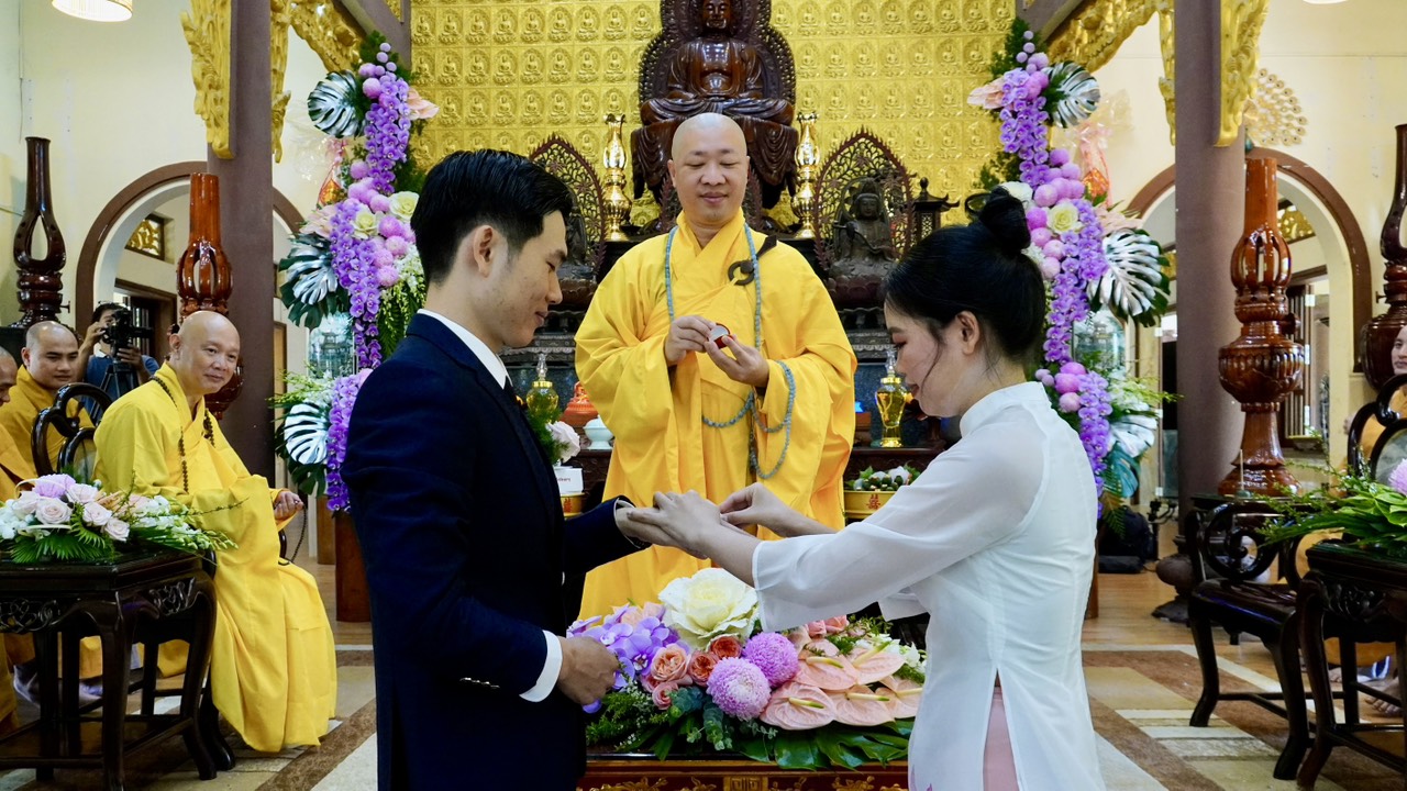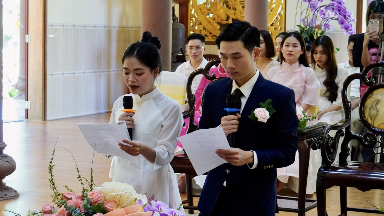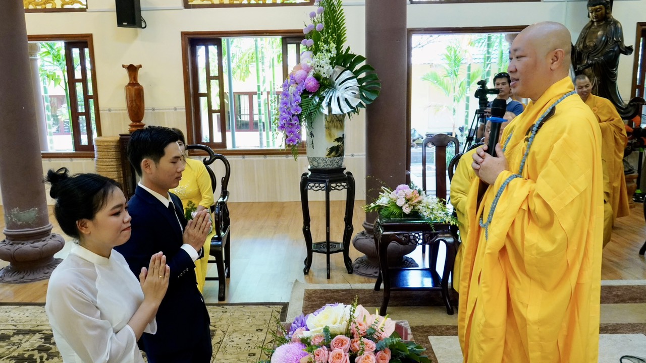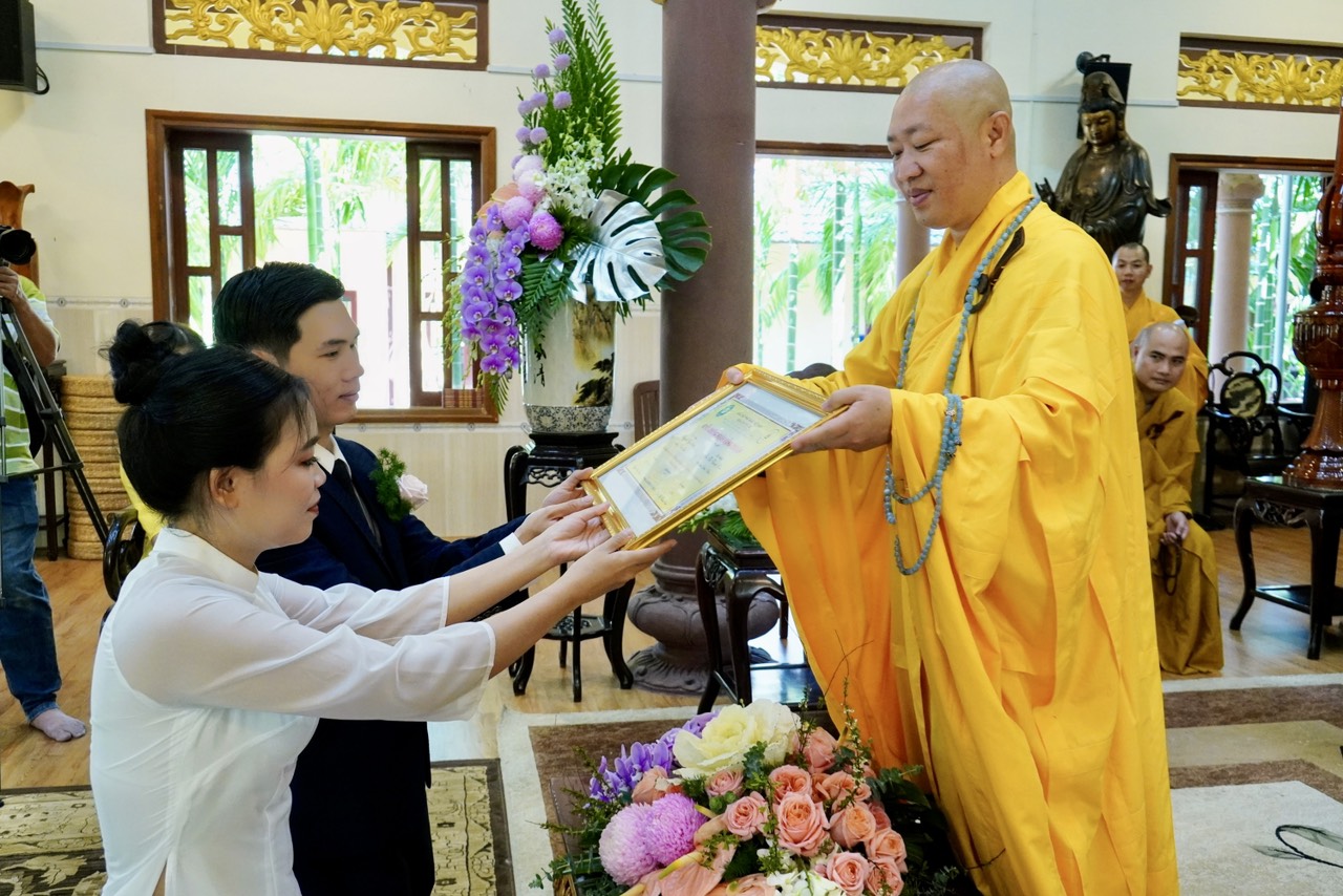 Buổi lễ diễn ra trang nghiêm và long trọng dưới sự chứng minh của Thượng toạ Trụ trì Thích Thiện Thuận, Thượng toạ Thích Hạnh Bảo Trụ trì chùa Liên Tâm, Phần Lan cùng chư Tăng tại Bổn tự. Ngoài ra, có sự chứng tri của quan viên hai họ, bạn bè thân hữu của tân lang và tân nương.