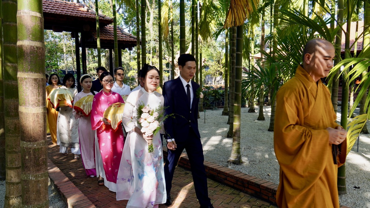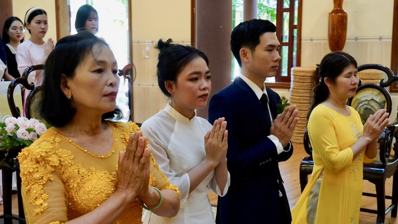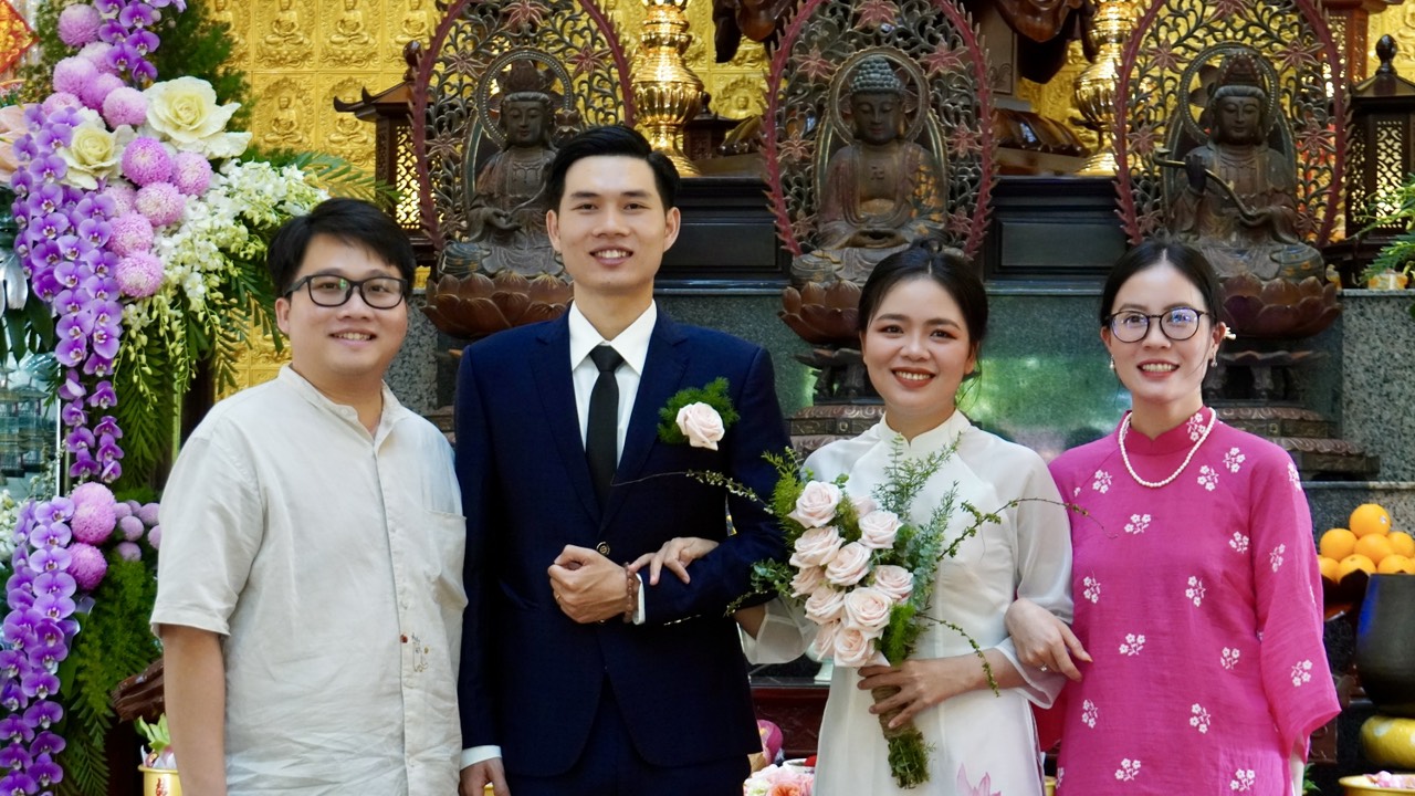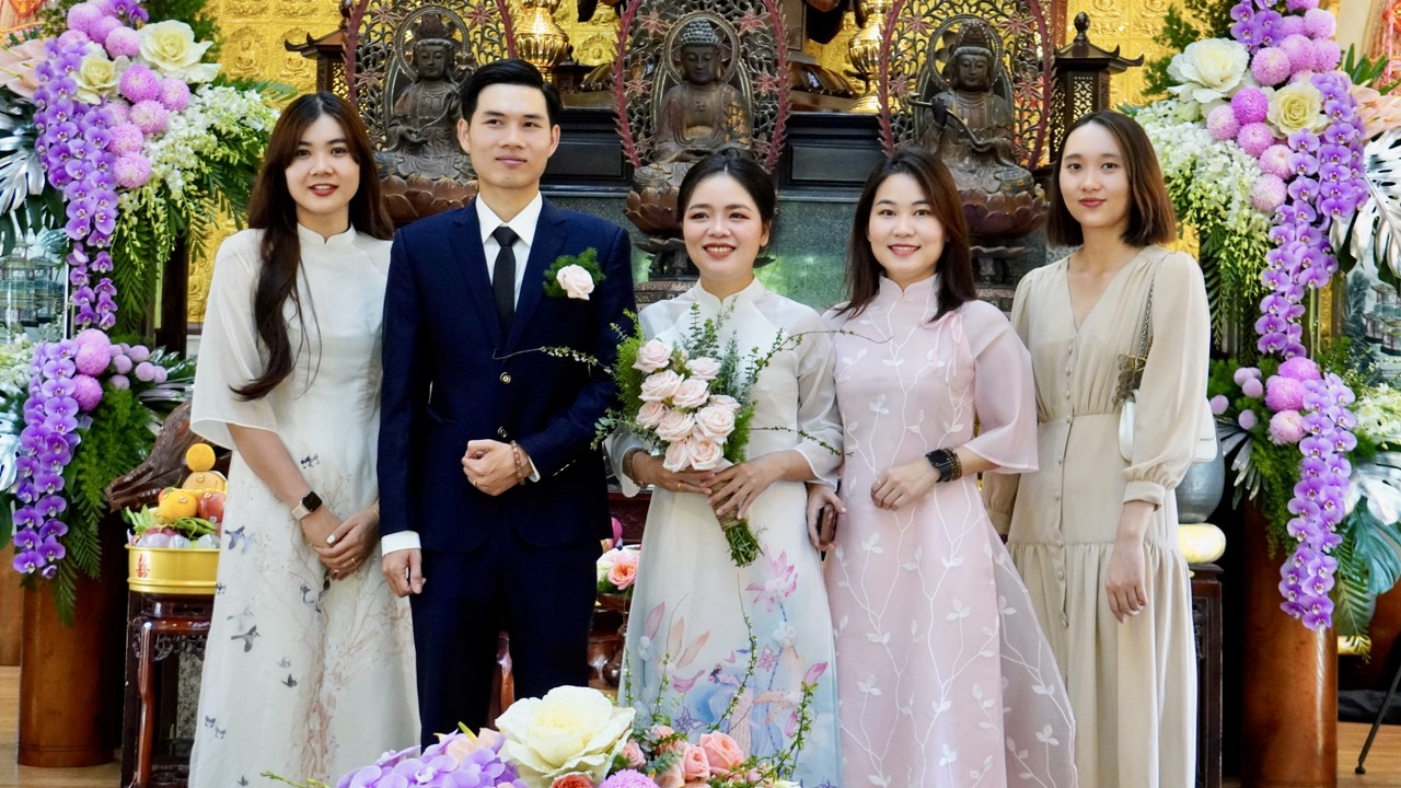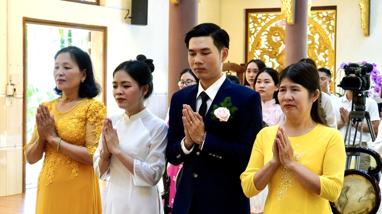 Buổi lễ diễn ra trang nghiêm và long trọng dưới sự chứng minh của Thượng toạ Trụ trì Thích Thiện Thuận, Thượng toạ Thích Hạnh Bảo Trụ trì chùa Liên Tâm, Phần Lan cùng chư Tăng tại Bổn tự. Ngoài ra, có sự chứng tri của quan viên hai họ, bạn bè thân hữu của tân lang và tân nương.