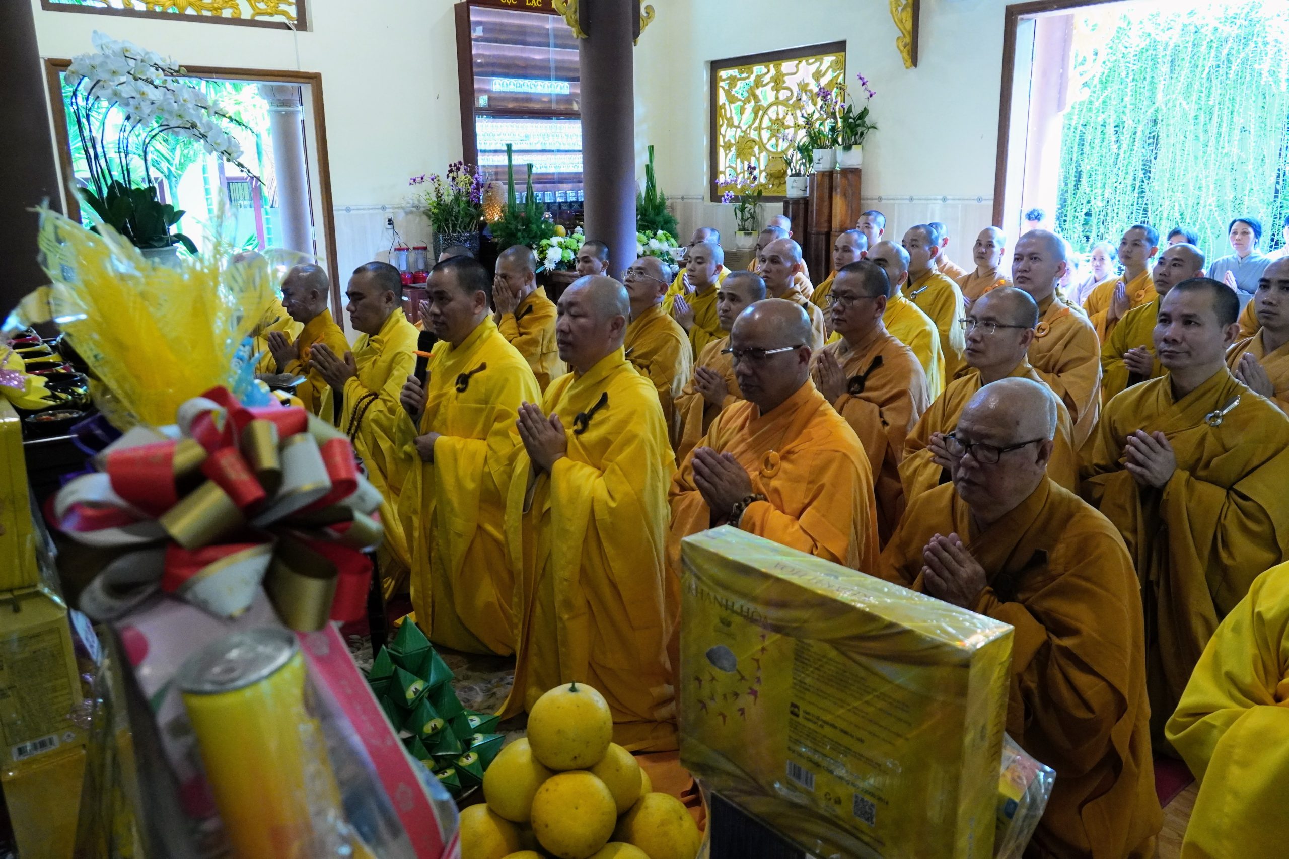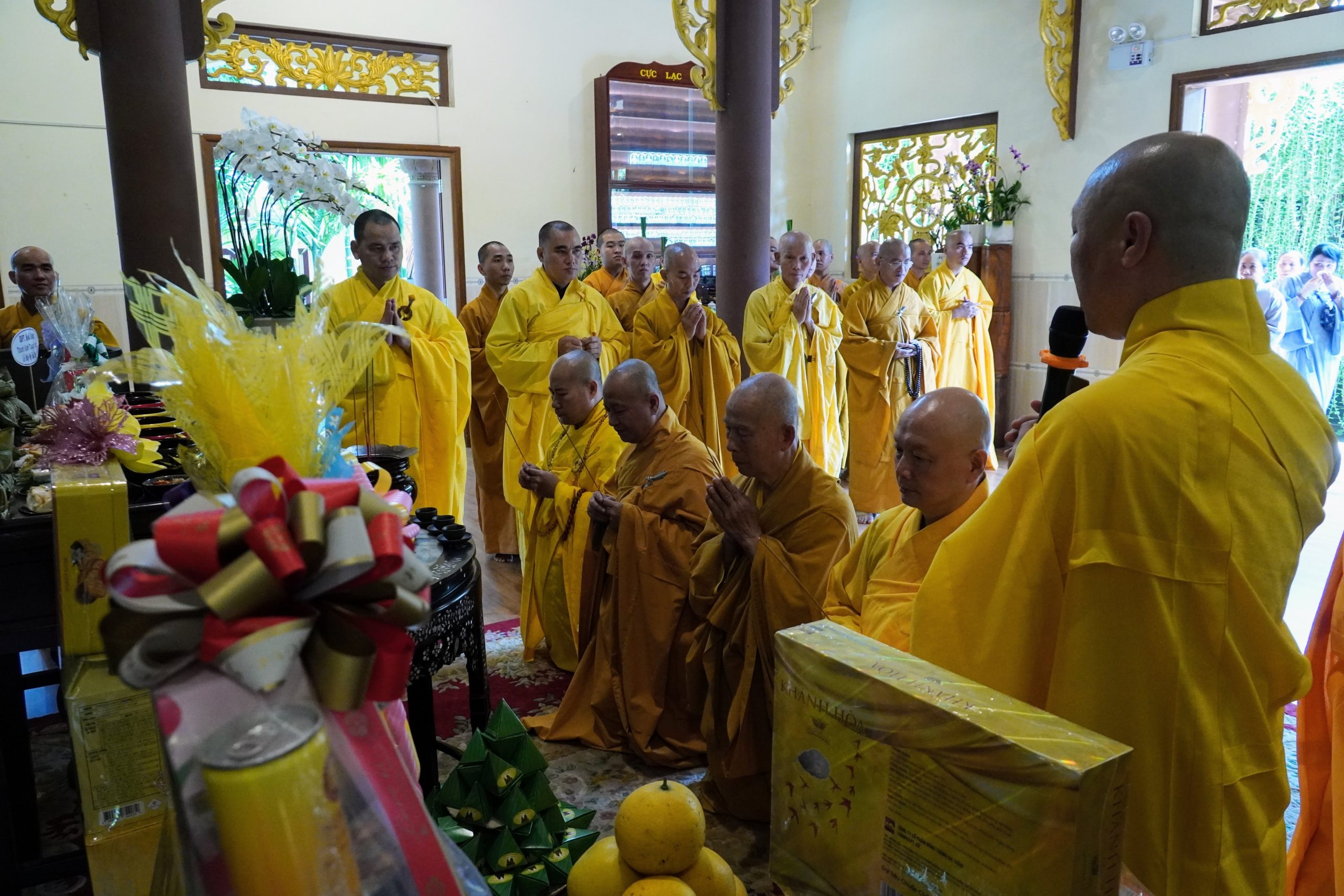 Sáng ngày 18/1, toàn thể chúng đệ tử, đệ tôn câu hội chánh điện tụng kinh, hồi hướng công đức đến Giác linh Tôn sư cao đăng thượng phẩm. Kế đến, chúng đệ tử đã cung tiến Giác linh tại Tổ đường. Buổi lễ mang đậm chất thiền vị đơn giản ấm áp tình Thầy trò, pháp lữ.