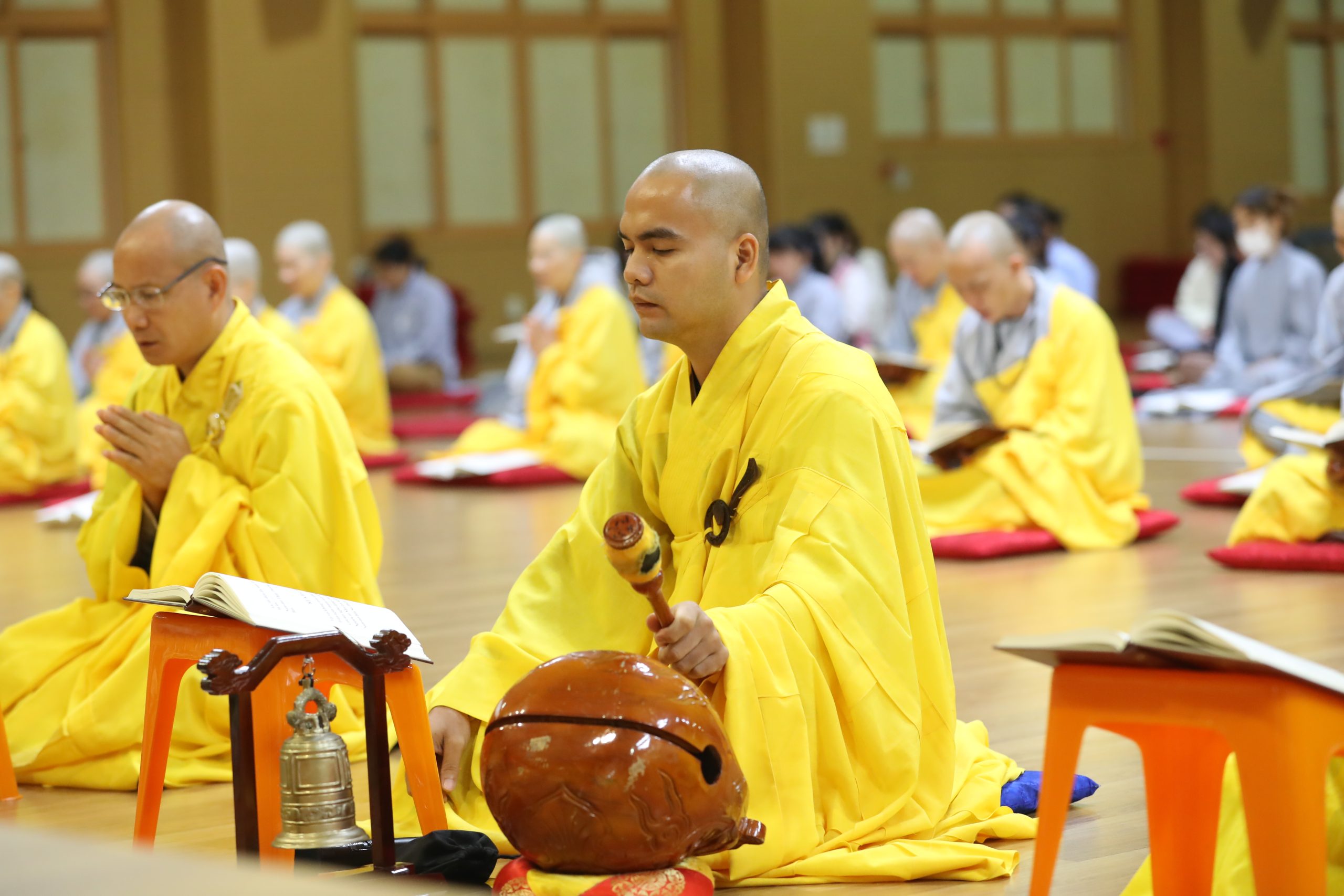 Trong chuỗi sự kiện khóa tu, sáng ngày 28/10/2023 lúc 4 giờ 30 thức chúng, 4 giờ 45 khóa lễ tĩnh tọa trong vòng 15 phút, 5 giờ 00 đại chúng thực hiện nghi thức Sám hối Hồng danh và lạy Thù ân.