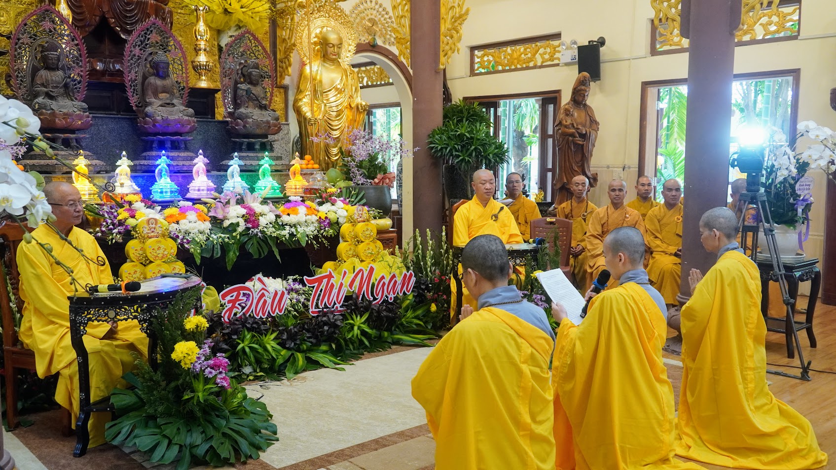 …Chúng con thành kính tri ân Sư phụ đã tổ chức Khóa tu này cho chúng con được tìm về sự an lạc, giải thoát, cho chúng con thực hiện được tâm nguyện của cả một đời. Chúng con thành kính tri ân Chư Tôn đức, quý Thầy trong Ban Giáo thọ sư đã hướng dẫn chúng con trong quá trình tu tập. Chúng con thành kính tri ân công đức quý Thầy/cô Ban Quản Giới tử đã chỉ dạy cho chúng con từng điều nhỏ nhặt, luôn nhắc nhở chúng con phải giữ oai nghi tế hạnh, luôn là người thức khuya, dậy sớm để lo cho chúng con. Chúng con thành kính tri ân Ban Trai soạn, Ban Hành đường, Ban phục vụ nước uống đã cho chúng con những bữa ăn đầy dinh dưỡng, những cốc nước đầy ân tình. Chúng con không quên tri ân Ban Phim ảnh đã không quản ngại ngày đêm để cho chúng con những thước phim và hình ảnh đẹp nhất. Ngưỡng nguyện Hồng ân Tam bảo gia hộ cho Sư phụ được sức khỏe, bình an, luôn là bóng đại thụ cho chúng con trở về nương tựa sau bao sóng gió cuộc đời.”