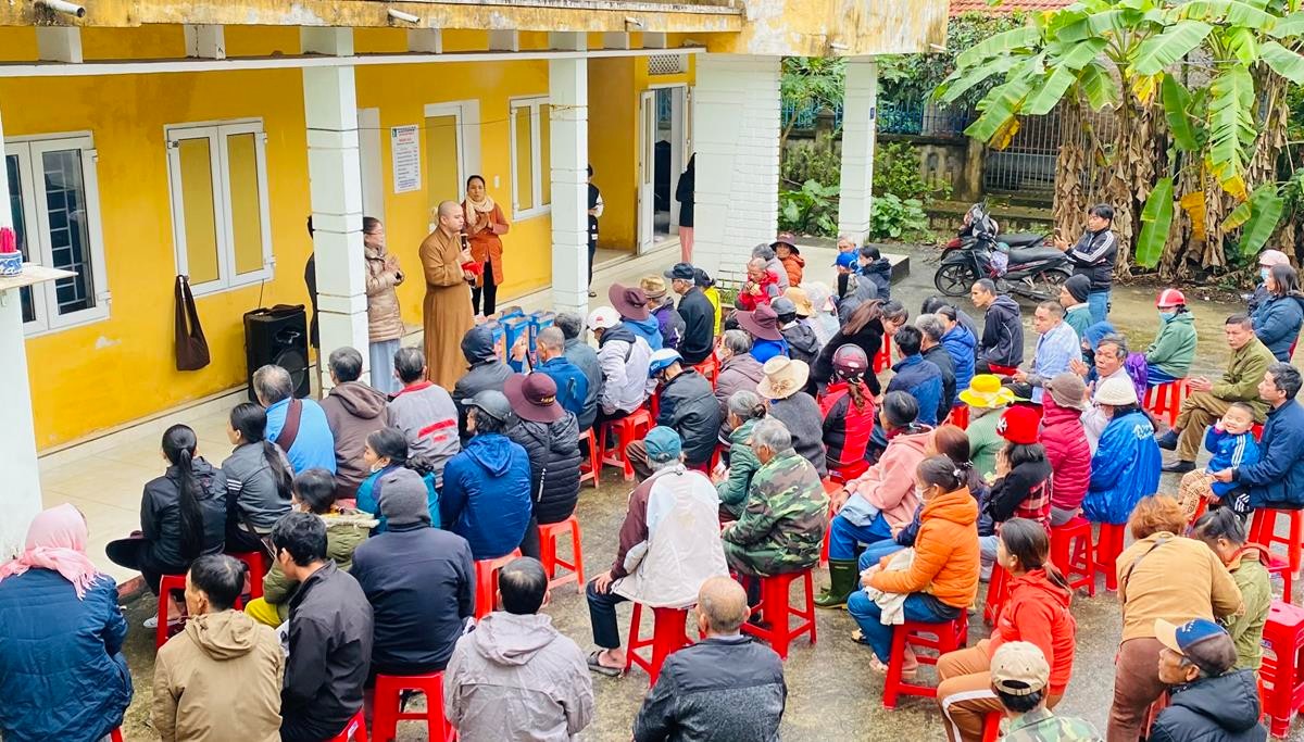 Tại các điểm trao quà, Đại đức Thích Thiền Như – Chánh thư ký Ban Hoằng pháp Tỉnh, Phó Thường trực Ban Điều hành chương trình Phật học Ứng dụng, Chủ nhiệm lớp Tuệ Trung đã phát biểu thăm hỏi động viên và chúc Tết đến bà con nhân dân, cũng như gửi gắm niềm tin yêu của lớp Tuệ Trung luôn dành tình cảm sâu sắc đến những hoàn cảnh khó khăn trong cuộc sống, nhằm san sẻ tình yêu thương, động viên, khích lệ tinh thần để mọi người đươc đón một mùa Xuân an vui và đầm ấm hơn.