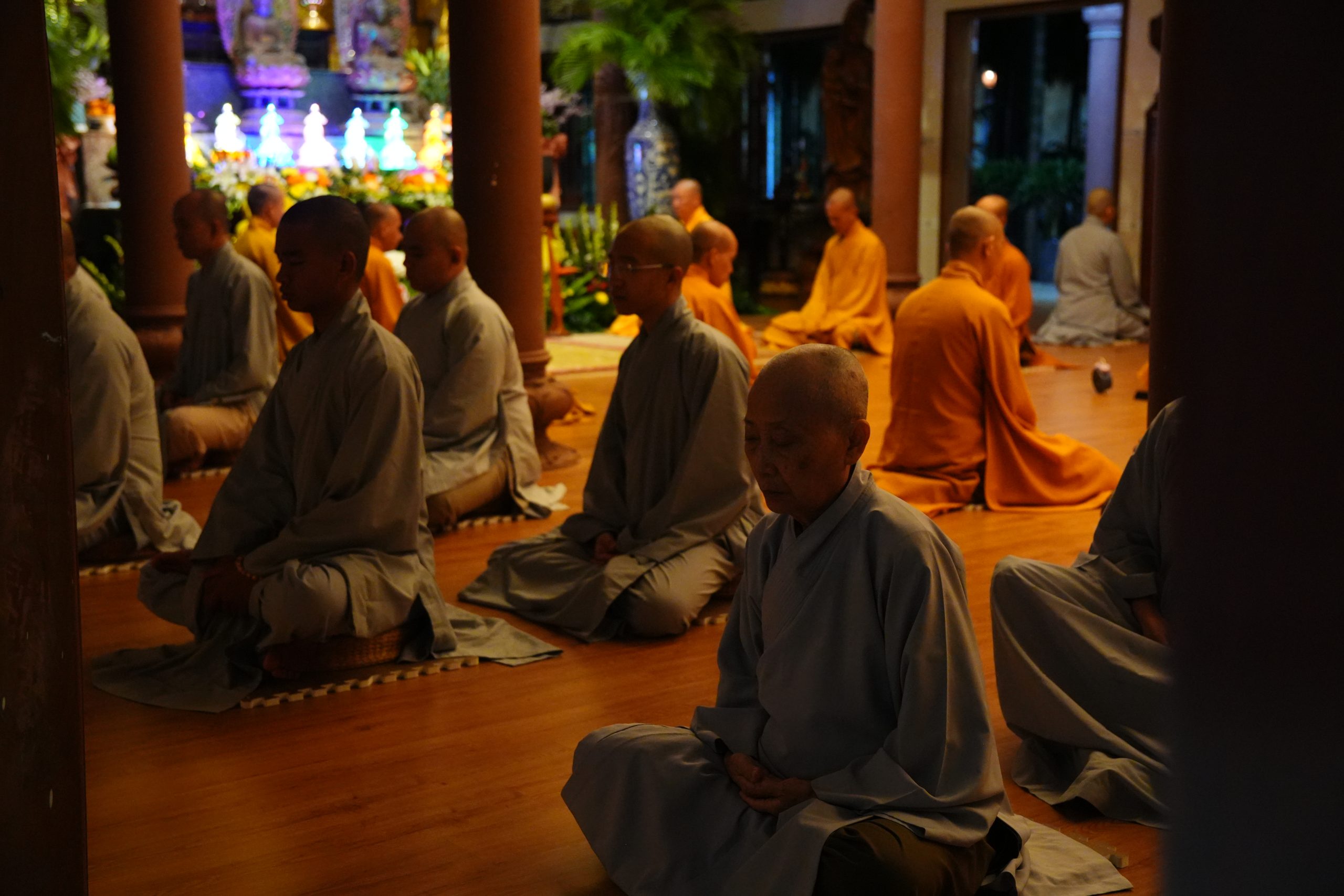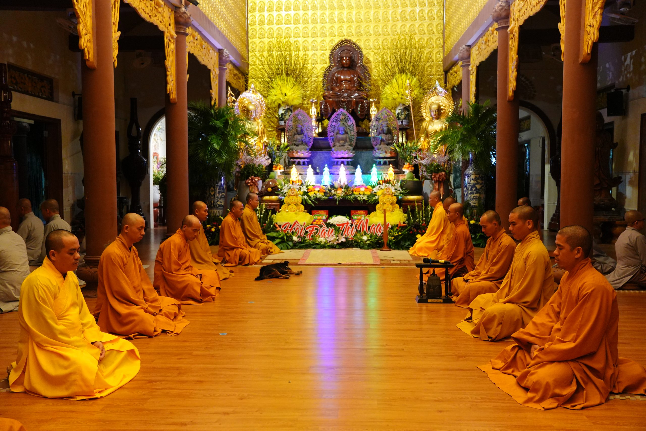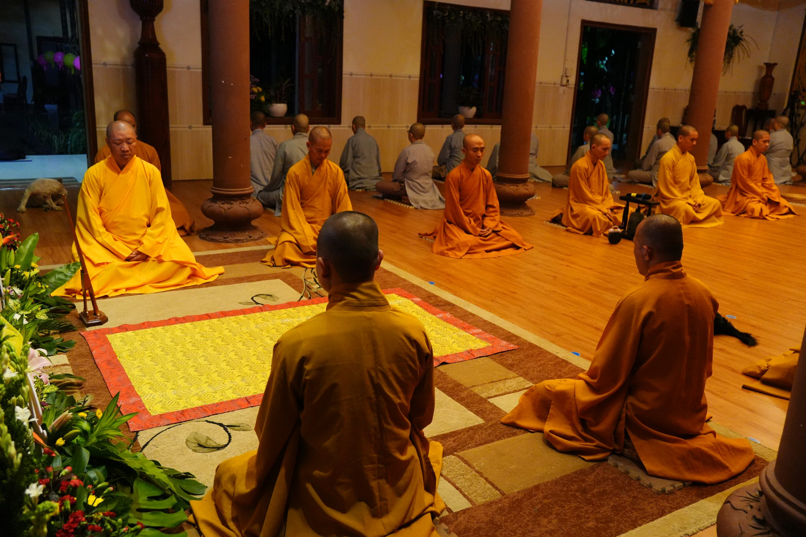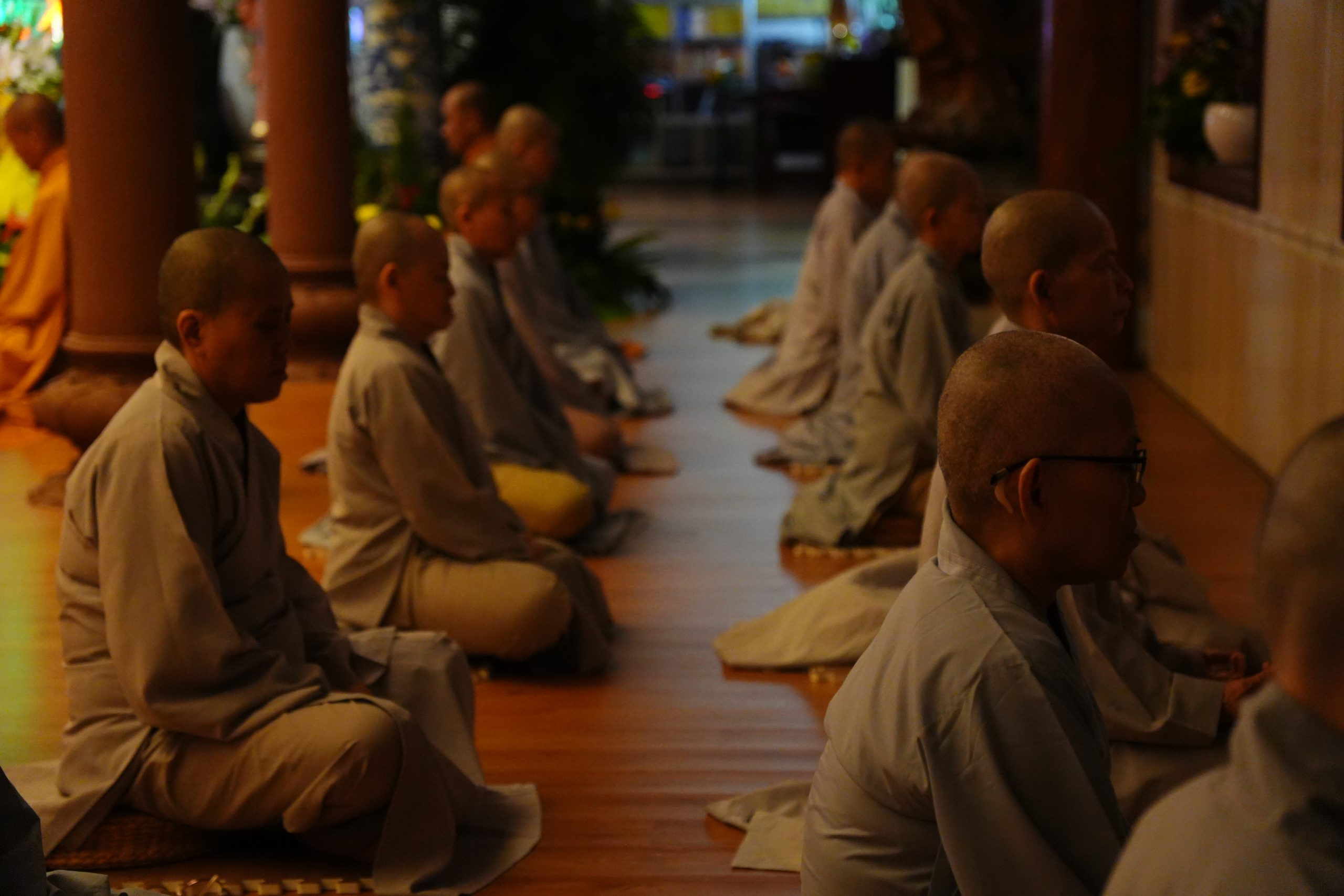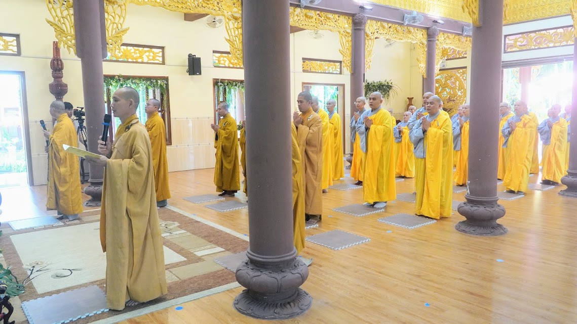 Sau ba hồi kẻng ngân vang thức chúng vào lúc 03h30 sáng, Đại chúng nhanh chóng xuống đơn, vệ sinh cá nhân, pháp phục trang nghiêm vân tập về hậu Tổ. Sau khi vân tập đầy đủ, Chư Tăng Ni và các Giới tử lễ Tổ sau đó tuần tự thứ lớp bước lên Chánh điện tụng thời Sám hối Hồng danh. Câu kinh âm vang trầm hùng khắp núi rừng Thị Vải.