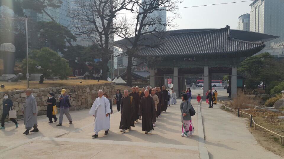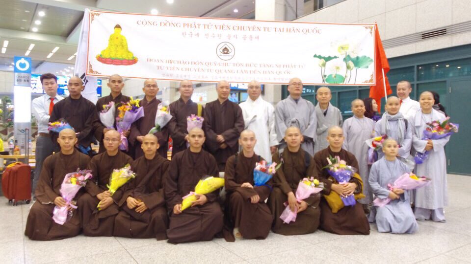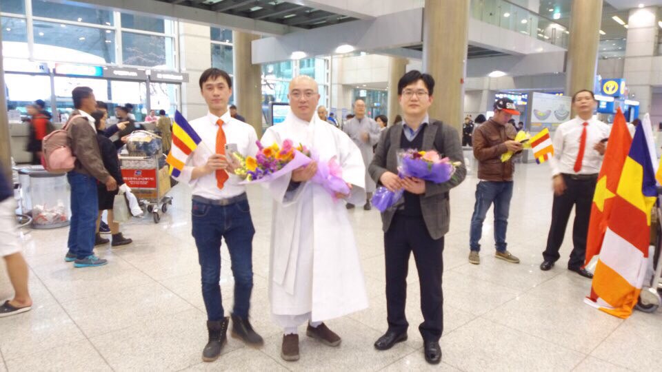 Đoàn được Hòa thượng Dea Jeong và Thượng tọa Nhựt Giám đại diện cho Tổ đình Phụng Ân (Bongeun-sa) phối hợp cùng các Phật tử Viện Chuyên Tu tại Hàn Quốc đón thật long trọng và thân tình, chỉ tiếc, Hòa thượng chứng minh Thích Minh Cảnh – Viện chủ Tu viện Huệ Quang vì trục trặc visa nên không đi cùng ngày với đoàn.