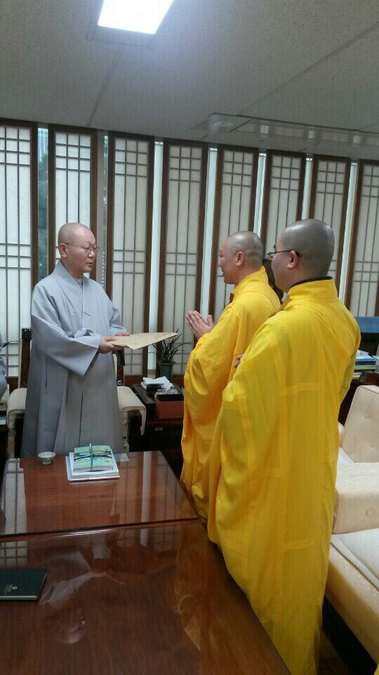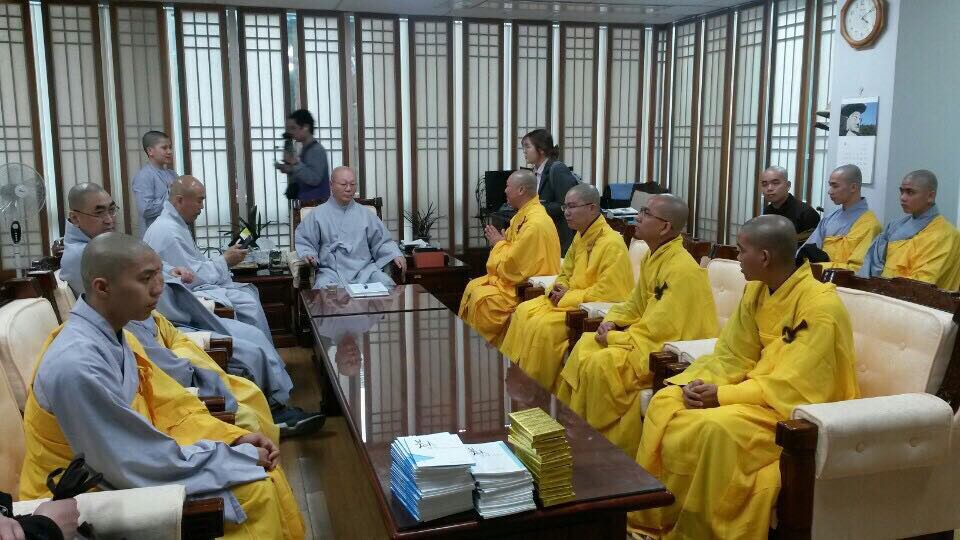 Thật hữu duyên, sau khi tham quan Trụ sở hành chánh của Tông Tào Khê thật đồ sộ và hiện đại, đoàn được hướng dẫn đến đảnh lễ Trưởng lão Hòa thượng Tuyết Tĩnh (Seol Jeong) – Tổng vụ Viện Trưởng với thời gian 15 phút. Hòa thượng thật từ bi và nhẹ nhàng tiếp đoàn với lời chào hỏi thân tình hơn 10 phút. Từ sự đồng cảm sâu sắc, Hòa thượng đã bày tỏ lòng kính ngưỡng đến Bồ-tát Thích Quảng Đức và các vị Tăng Ni, Phật tử đã tự thiêu trong phong trào đấu tranh đòi quyền bình đẳng tôn giáo, chống chính quyền Ngô Đình Diệm năm 1963, điểm son lịch sử Phật giáo thế giới.