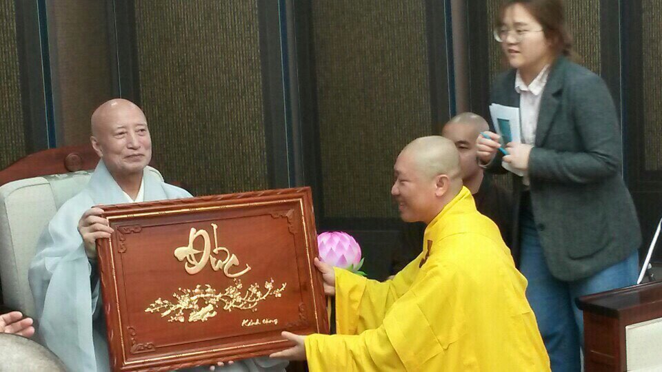 Hoà thượng Chí Hồng (Ji Hong) – Tổng Vụ trưởng Tổng Vụ Hoằng pháp tặng quà.