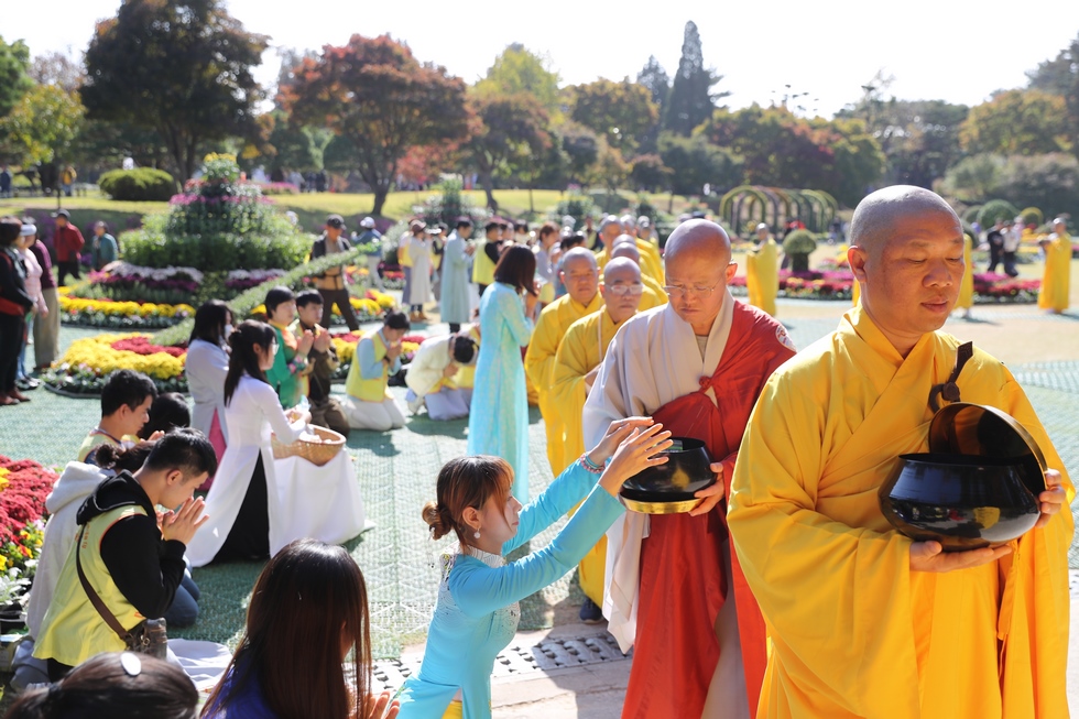 Bước chân chánh niệm tỉnh giác, nụ cười hỷ lạc của quý Tôn đức Tăng Ni ôm bình bát đi khất thực hôm nay khiến cho hàng Phật tử dâng trào niềm hạnh phúc vô biên. Trong khung cảnh trang nghiêm thanh thoát này, chúng con vơi dần đi những tâm niệm tham sân và ái dục. Các giới tử xuất gia gieo duyên có cơ hội trải nghiệm tâm hình khác tục, theo dấu chân quý Ngài cất bước tới chân trời cao rộng, thoát vòng tục lụy: