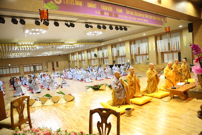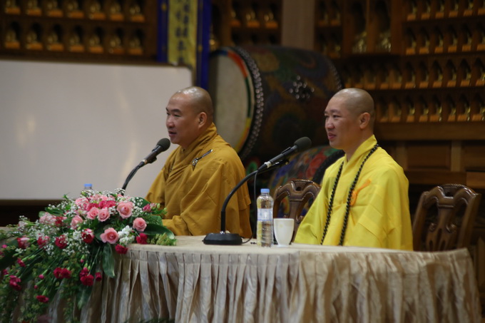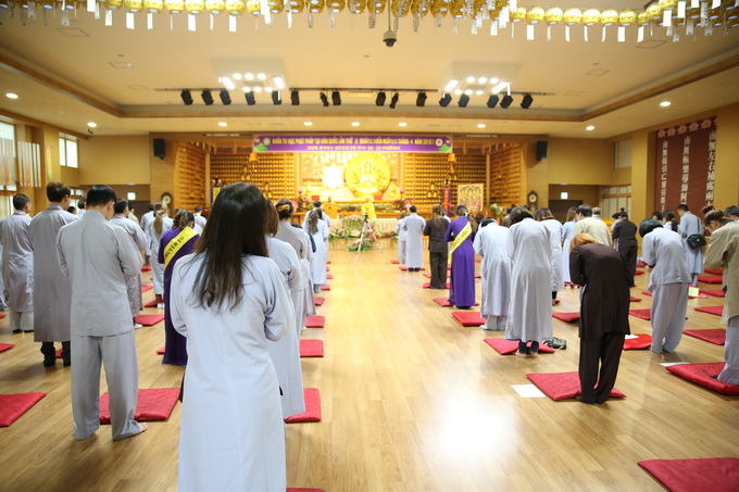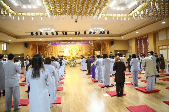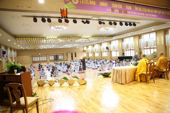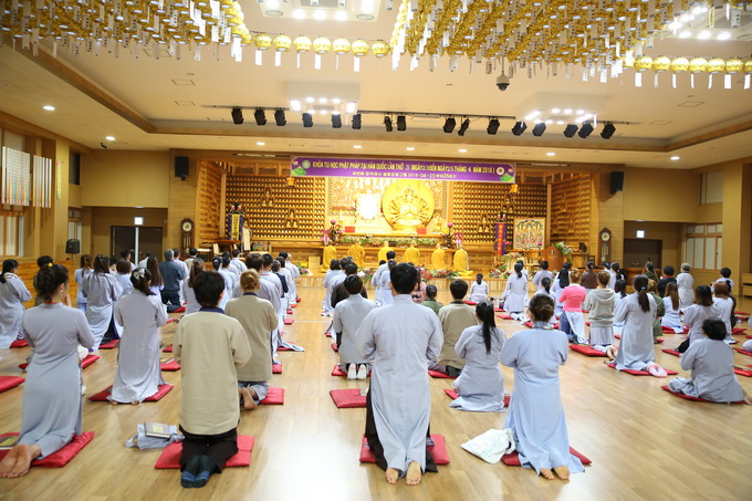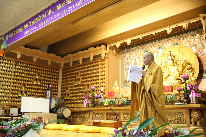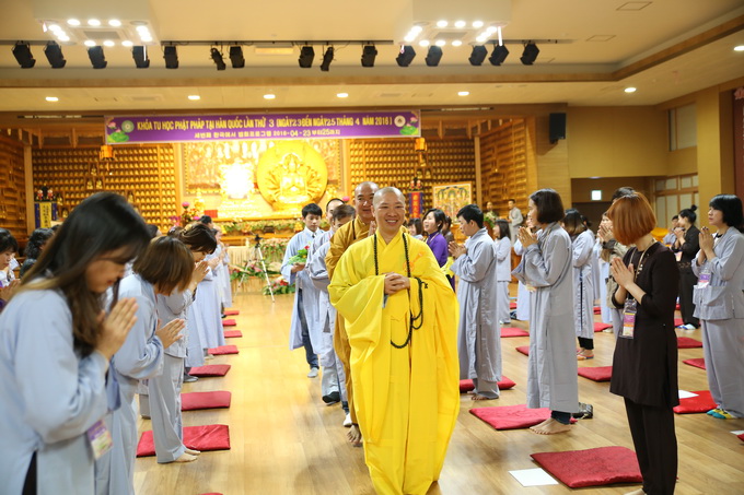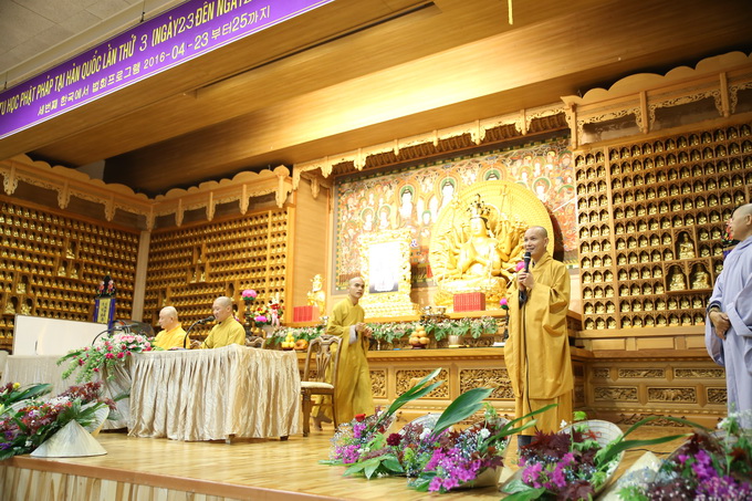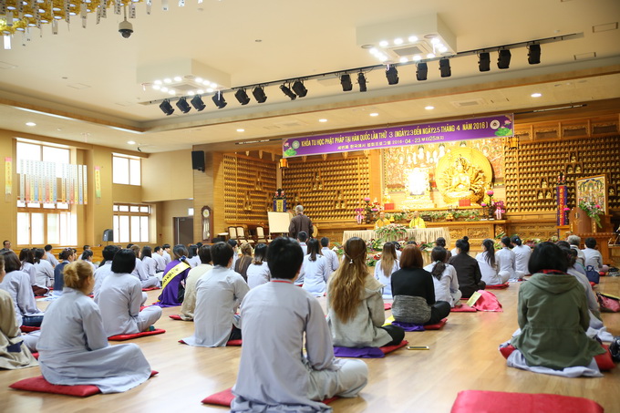 Lúc 16h00 ngày 23/04/2016 buổi Vấn đáp Phật pháp do Thượng tọa Thích Thiện Thuận – Trưởng BTC khóa tu học lần thứ 3 tại Hàn Quốc – Trụ trì Viện Chuyên Tu – BRVT Việt Nam cùng Thượng tọa Thích Phước Nguyên – UVTTHĐTS-GHPGVN- Phó BHPW, trụ trì chùa Huyền Trang TP.HCM Việt Nam đã có buổi: “Vấn đáp Phật pháp”. Nhằm giải quyết những thắc mắc của hành giả trong cuộc sống vấp phải khi ứng dụng Phật pháp vào đời. Đa phần các hành giả đều có những khó khăn trở ngại khi thực hành như: phương pháp tu học, mối ràng buộc trong tình cảm, những oan trái trong cuộc sống gia đình giữa cha me, vợ con, những giáo lý cơ bản… được nhị vị giảng sư chia sẽ tường tận tháo gỡ những gút mắc cho hành giả.