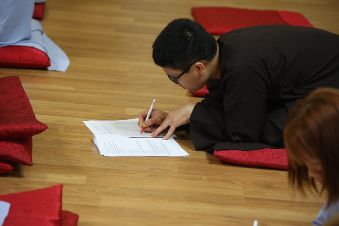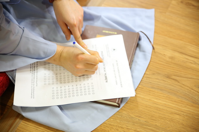 Sau phần thi giáo lý trắc nghiệm là thời thiền tọa lúc 22h00 kết thúc ngày đầu tiên tu học. Ngày thứ 2 của khóa tu học sẽ tiếp tục vào lúc 04h00 sáng ngày 24/04/2016 thân mời quý Phật tử đón theo dõi.