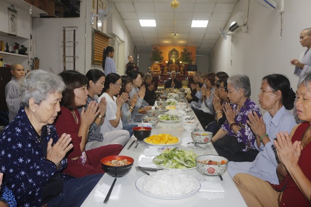 Sau khi lễ thọ trì bát quan trai giới hoàn mãn, toàn thể chư Tăng và Phật tử đồng vân tập về trai đường để cử hành nghi thức cúng quá đường, thọ trai và đi kinh hành niệm Phật. Mọi nghi thức gần như là đều mới lạ đối với quý Phật tử, tuy nhiên tất cả đều răm rắp nghe theo sự hướng dẫn của chư Tôn đức trong ban tổ chức, do đó mà mọi người đều được tu tập trong tĩnh lặng và chánh niệm.