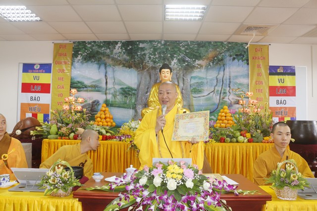 Buổi pháp thoại vừa xong, Đại đức Thích Nguyên Minh – Phó Ban tổ chức dâng lời cảm tạ lên Thượng tọa giảng sư. Nhân đây, Thượng tọa cũng động viên, sách tấn quý Thầy cô du học sinh trong Ban tổ chức hãy làm việc với tâm cống hiến và phụng sự, đừng vì danh vì lợi. Nếu làm với tâm danh lợi thì chắc chắn sẽ không thể thành tựu đạo nghiệp và cũng không thể làm được lợi ích cho tha nhân, bởi tinh thần tu tập trong đạo Phật luôn đi trên con đường vô ngã và vị tha. Chỉ có tinh thần vô ngã và vị tha mới là chất liệu làm nên sự bình an trong tâm hồn và có thể đem đến cho tha nhân những niềm hạnh phúc thực thụ, không có bóng dáng của khổ đau. Hơn thế nữa, Quý Thầy cô không chỉ đơn giản là tổ chức họp mặt kiều bào Việt Nam, mà đang làm sứ giả xây dựng đời sống đạo đức, văn hóa Phật giáo mang tính giáo dục và nhân văn cao cả cho thế hệ con em người Việt Nam tại quốc đảo Đài Loan này.