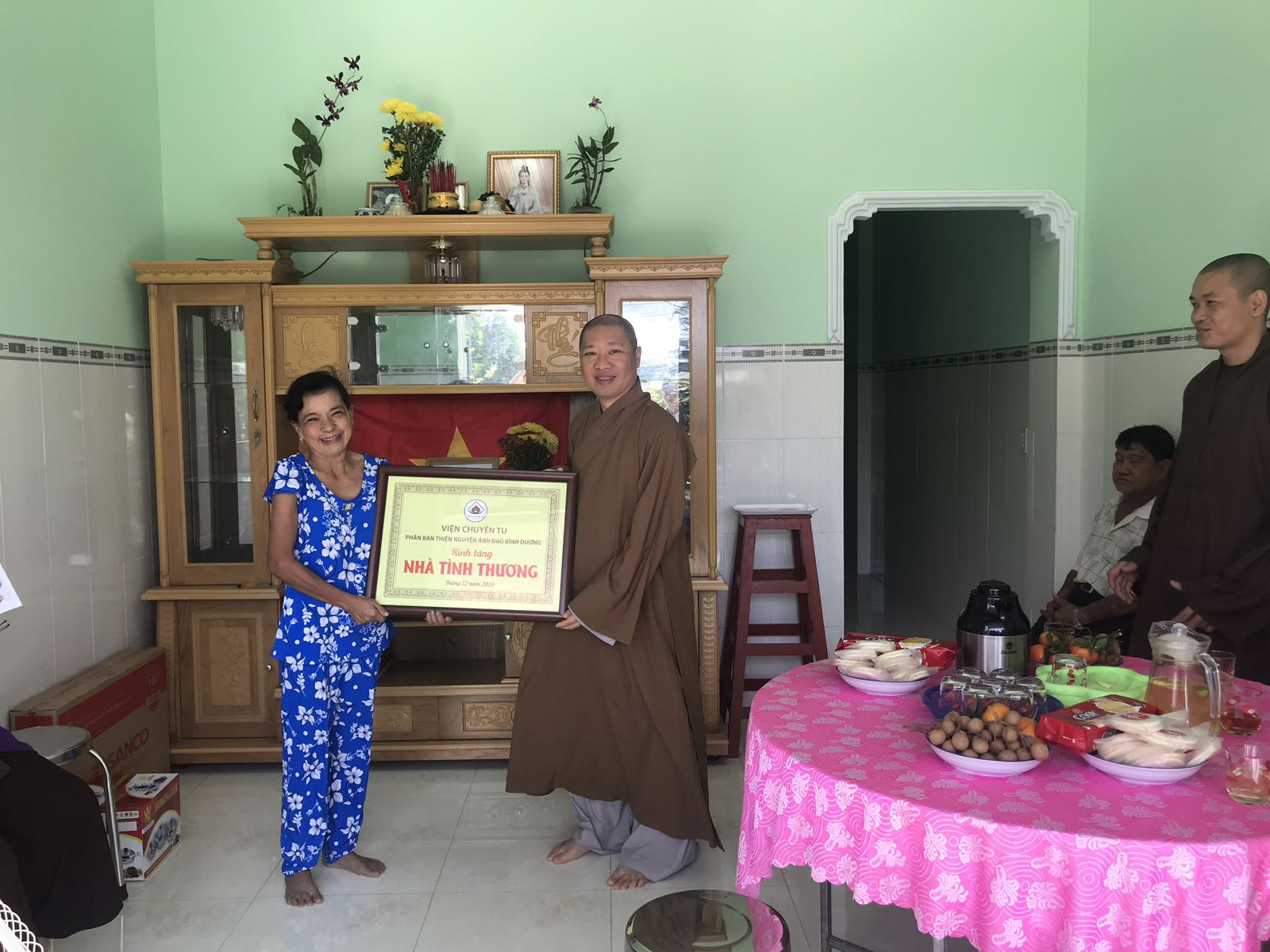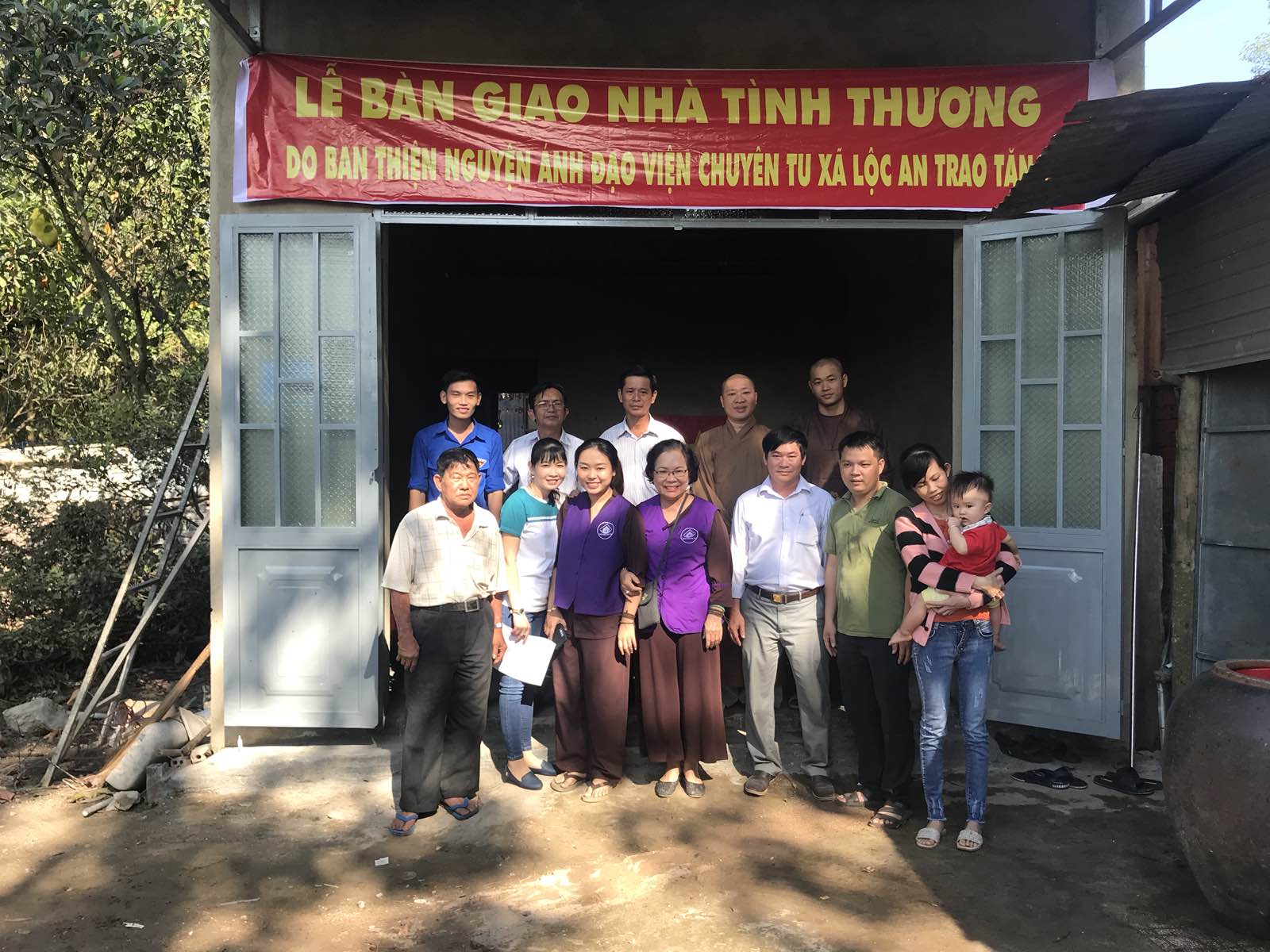 Sáng ngày 14/12/2019, TT. Thích Thiện Thuận – Trụ trì Viện Chuyên Tu cùng chư Tăng và Phật tử đại diện Ban Thiện nguyện Ánh Đạo đã trao hai căn nhà tình thương cho các hộ nghèo tại xã Lộc An, huyện Long Thành, tỉnh Đồng Nai.