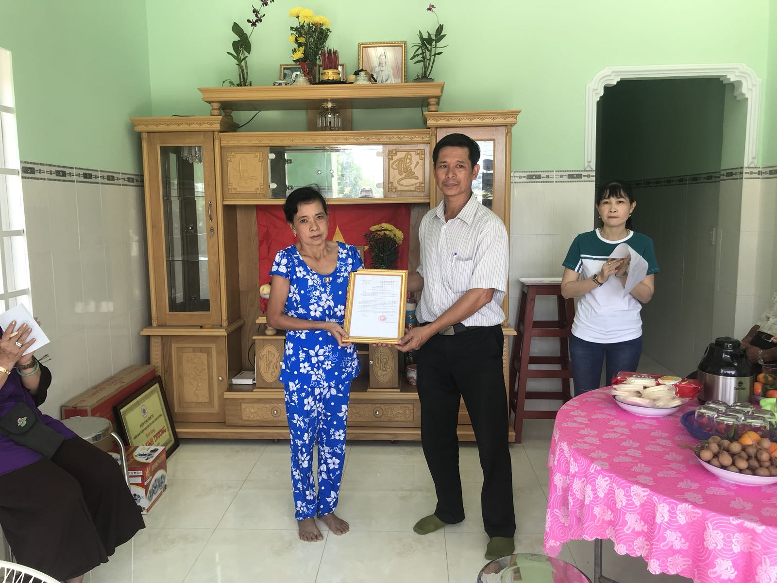 2. Căn nhà thứ hai trao tặng cho gia đình bà Nguyễn Thị Minh với số tiền 40 triệu đồng do Phân Ban Thiện nguyện Ánh Đạo Bình Dương vận động hỗ trợ; qua trao đổi được biết, gia đình bà Minh phải đem giấy chủ quyền đất cầm cố ngân hàng để vay thêm tiền đầu tư xây căn nhà khang trang.