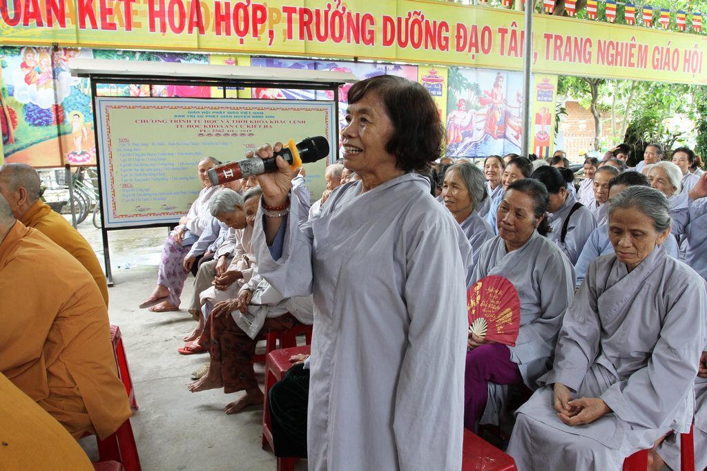 Thượng tọa chia sẻ, đức Phật chỉ bày thực trạng các thứ khổ não của cuộc đời cho mọi người để nhận ra nguyên nhân và tìm cách thoát khổ, chứ không bi quan khi đối diện với khổ đau. Người tu tại gia hay xuất gia đều chịu chung những khổ lụy của già, bệnh, chết; biến đổi khí hậu, tình người thay đổi, danh lợi buộc ràng… Thế thì, đức Phật có khổ không? Nếu tu tập mà thành Phật rồi còn khổ thì tu thành Phật để làm gì? Nhưng thực tế, đức Phật cần khổ thì cũng khổ vì Ngài biết cách khổ và hiểu thấu nguyên do của khổ. Mang thân tứ đại thì chí ít đức Phật cũng bị ảnh hưởng bởi bệnh lý của thân như đau bụng, nhức đầu, nhức mỏi tay chân, nhưng đức Phật có trí tuệ và từ bi lớn nên Ngài biết cách khổ và hóa giải khổ.